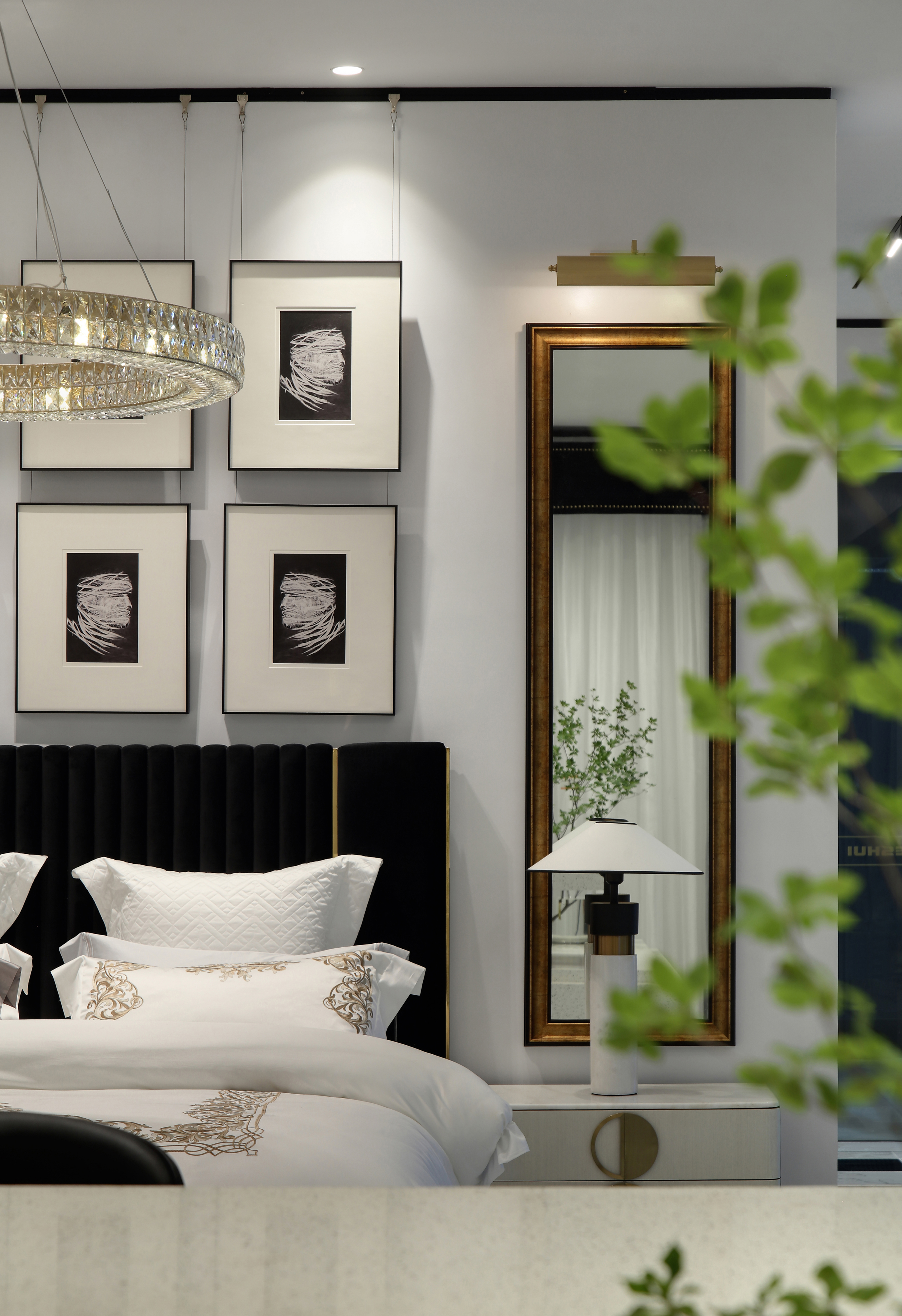 空间意境:在色彩选择上,我们使用了黑色和白色来做空间的基调。与其他软装馆五颜六色的展示不太相同。其实我们不难在一个空间中找到一张黑色的椅子或白色的书架,但你会发现他们被用的小心翼翼。其实黑和白是最经典的色彩搭配,就好比钢琴上的黑白琴键,相互衬托着弹出了灵动的变奏曲。而且黑白是永恒的。它永远不会过时,就像香奈儿一样。