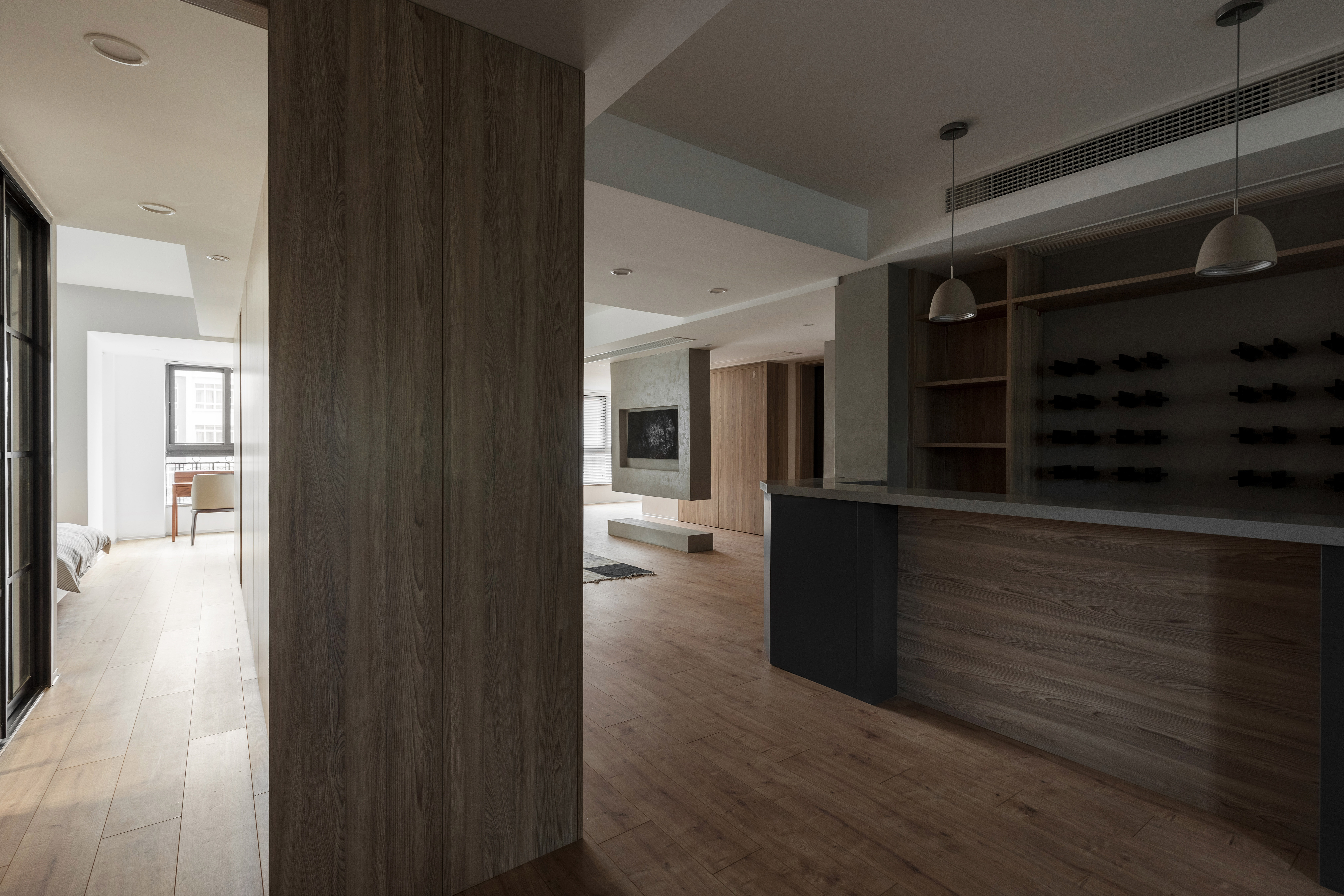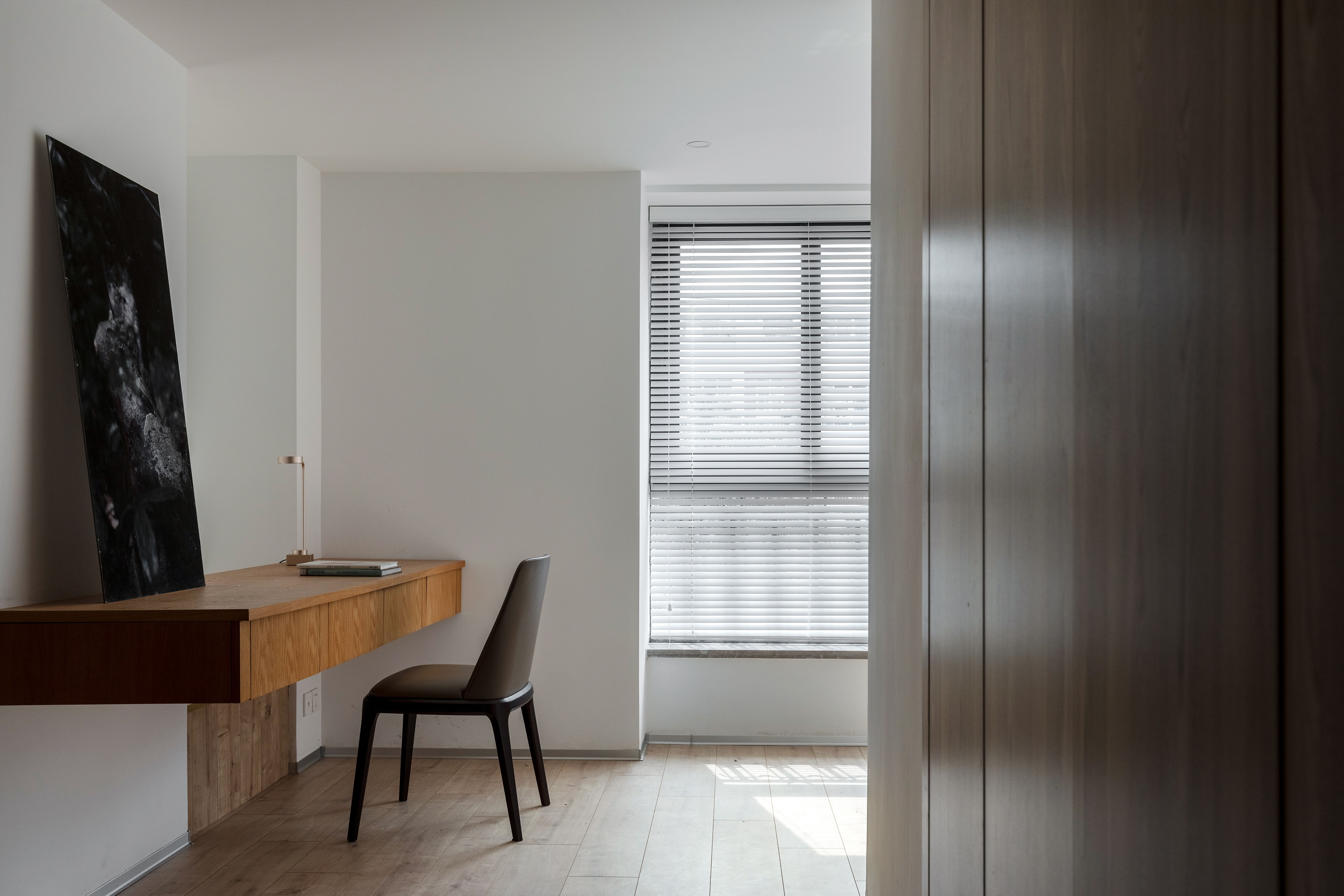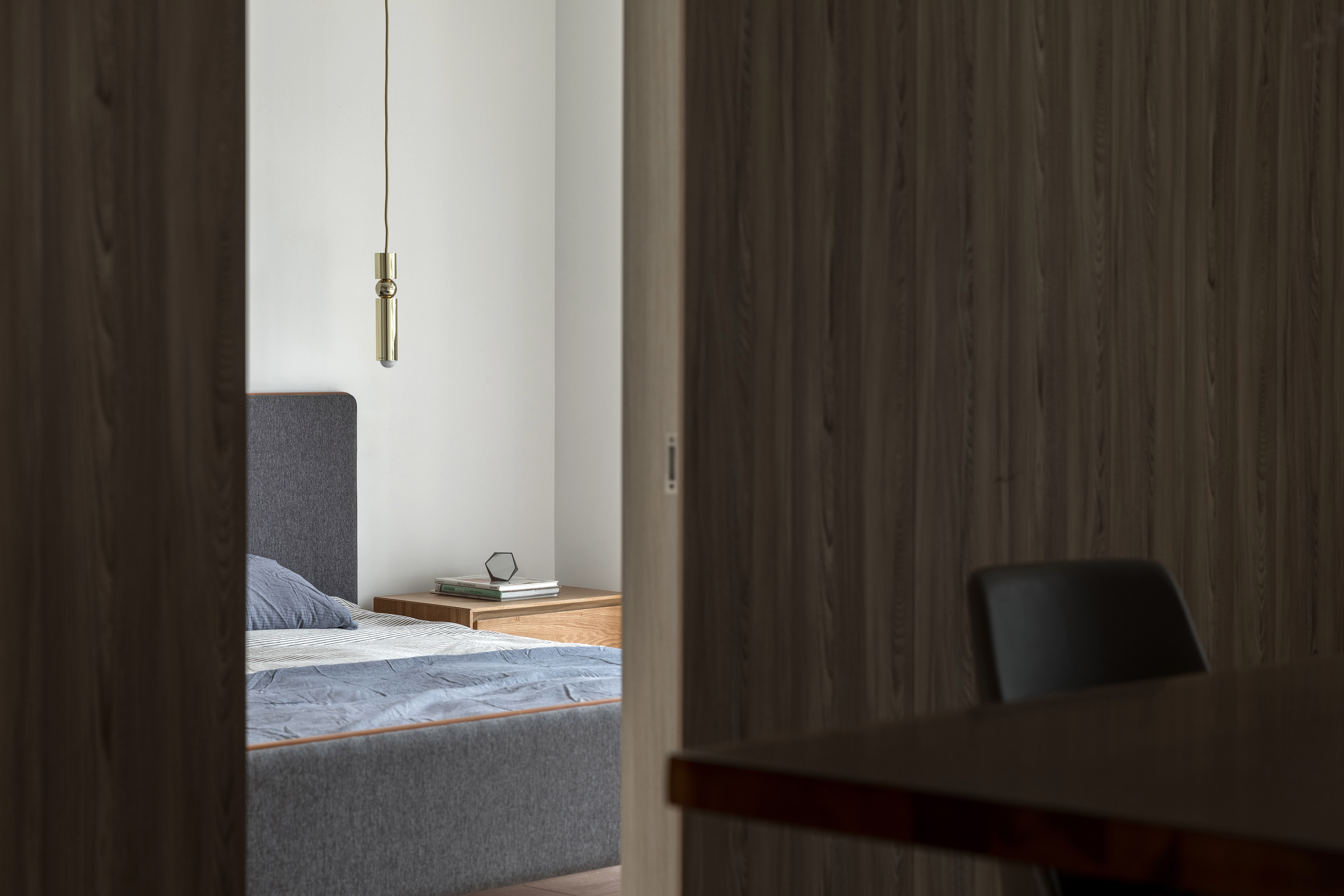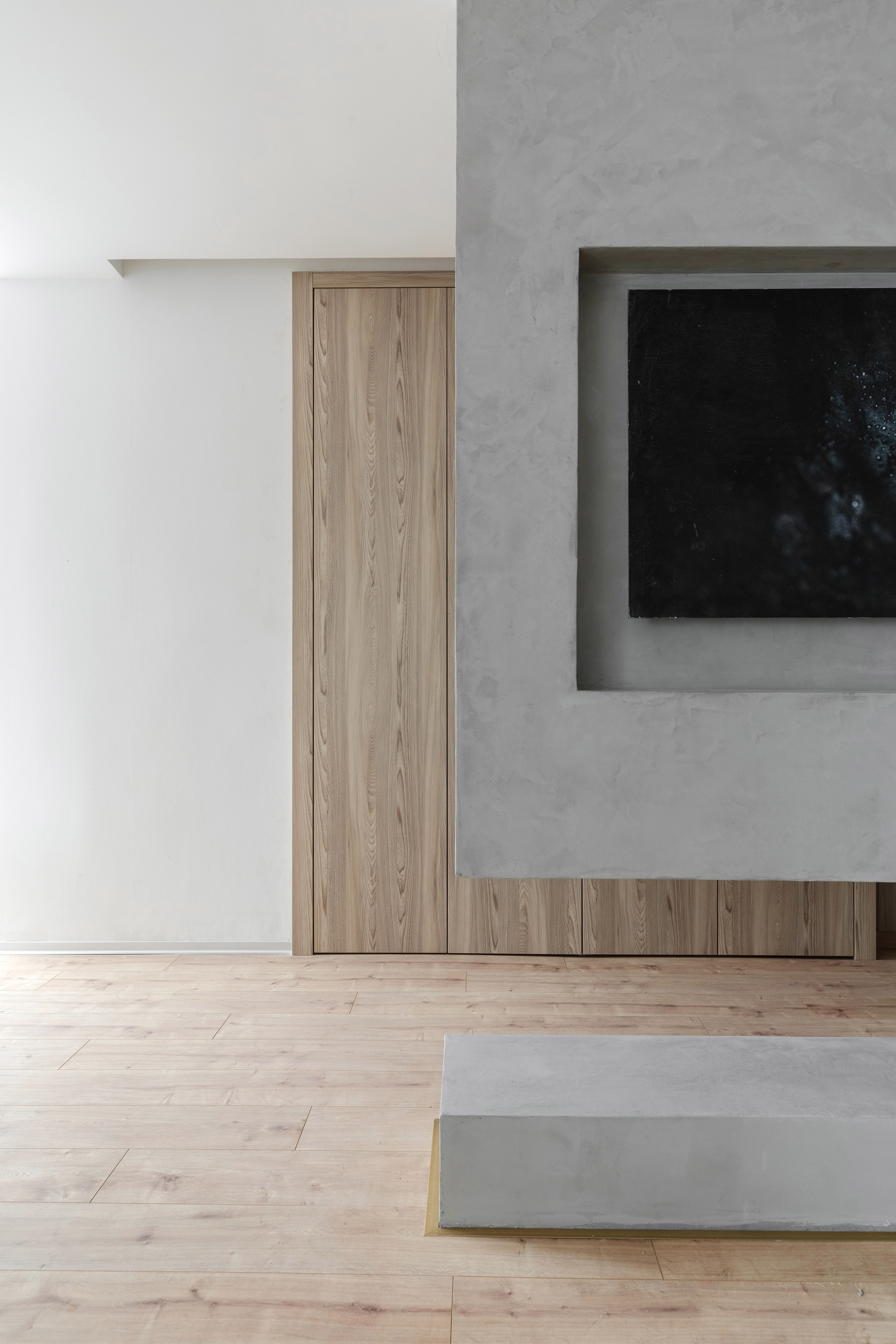 墙板、柜板、与门板选用了博洛尼同一型号板材,统一、克制、内敛