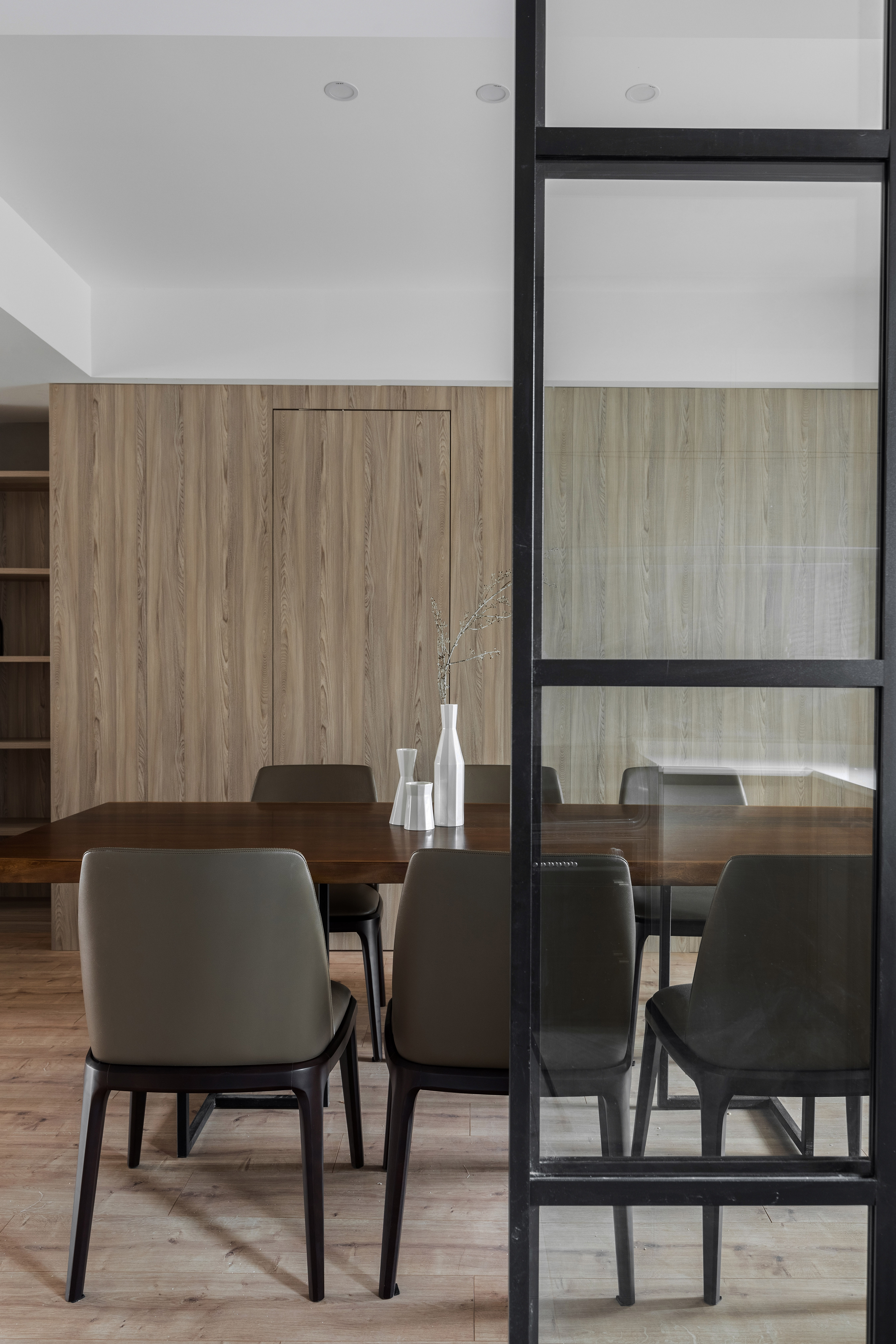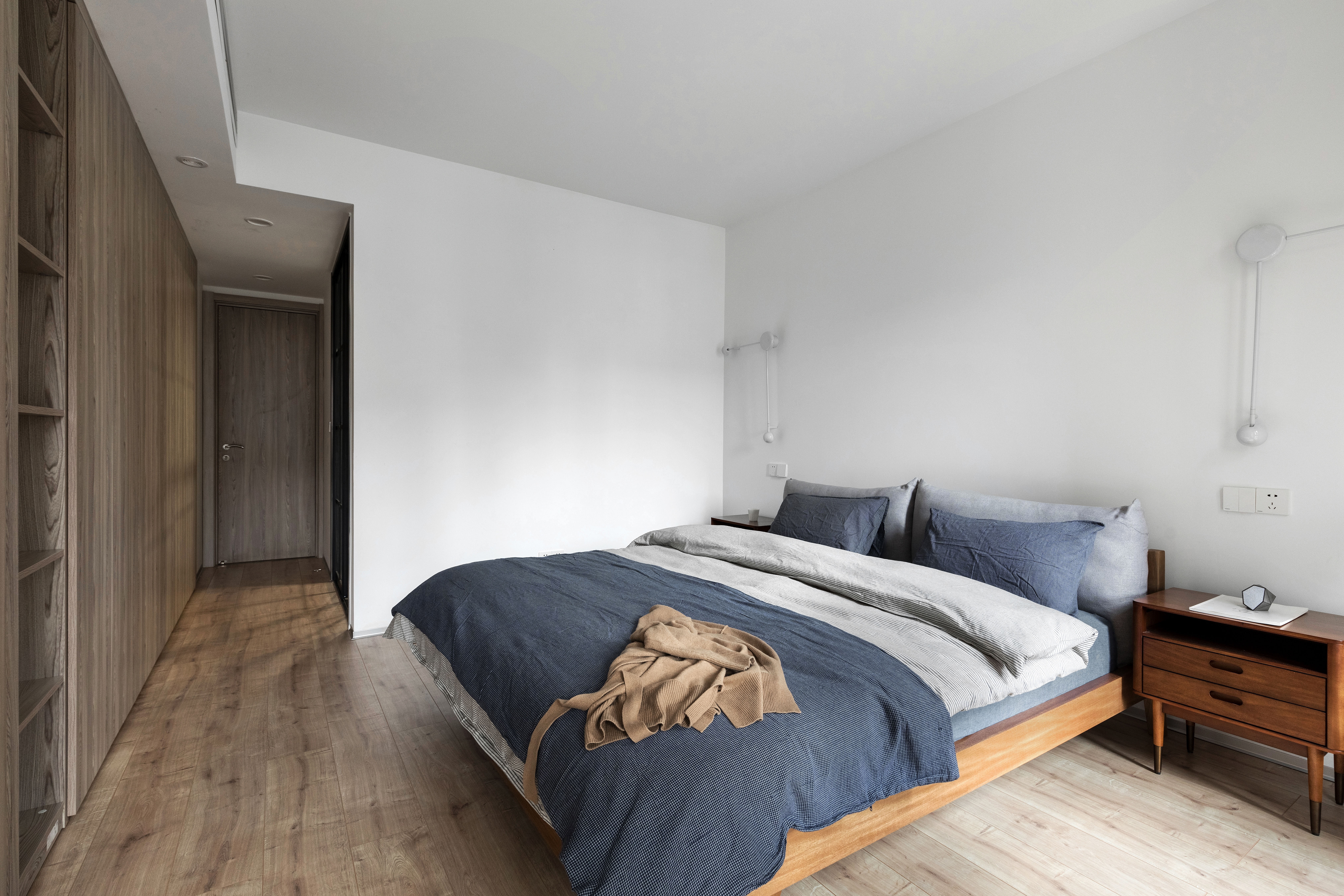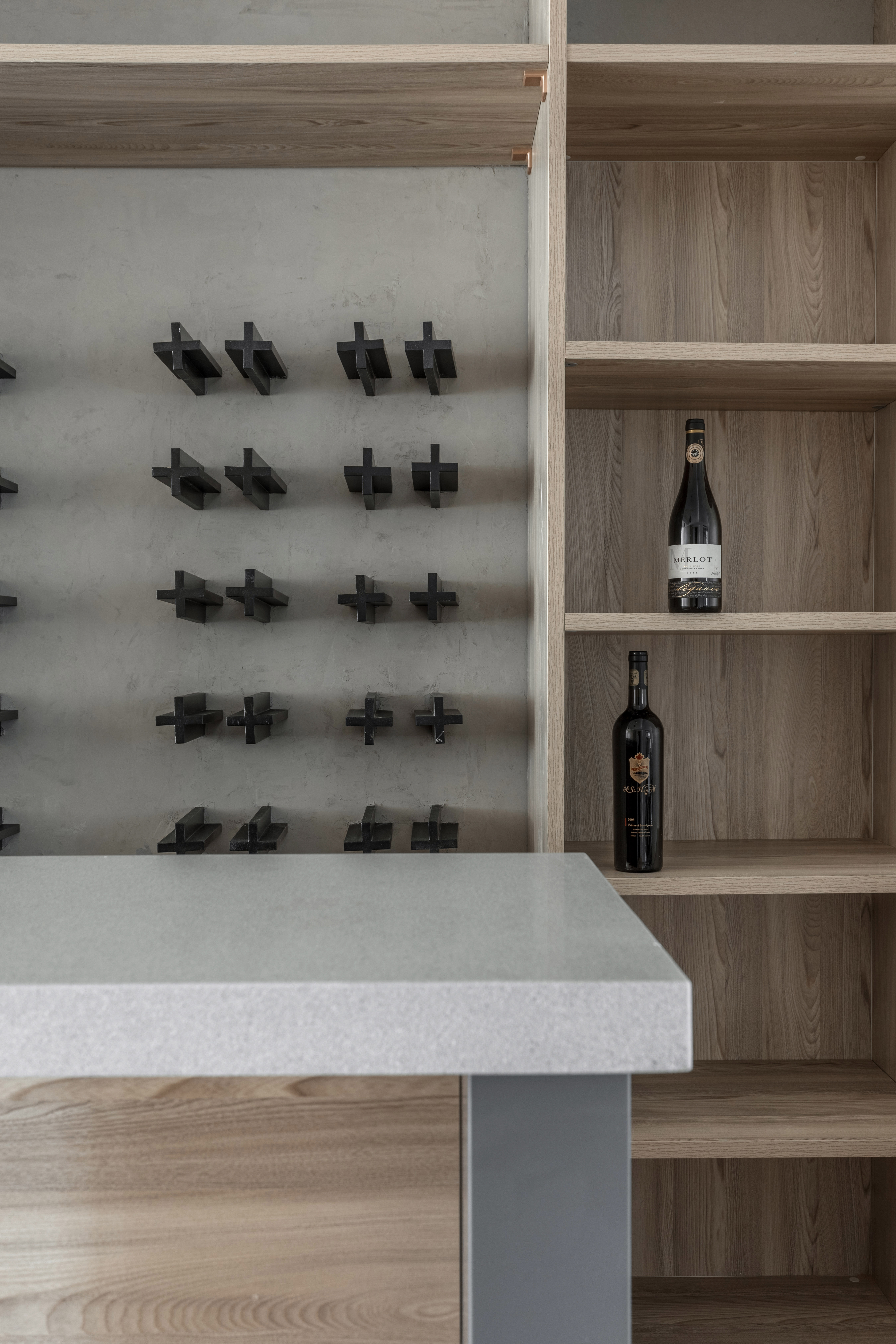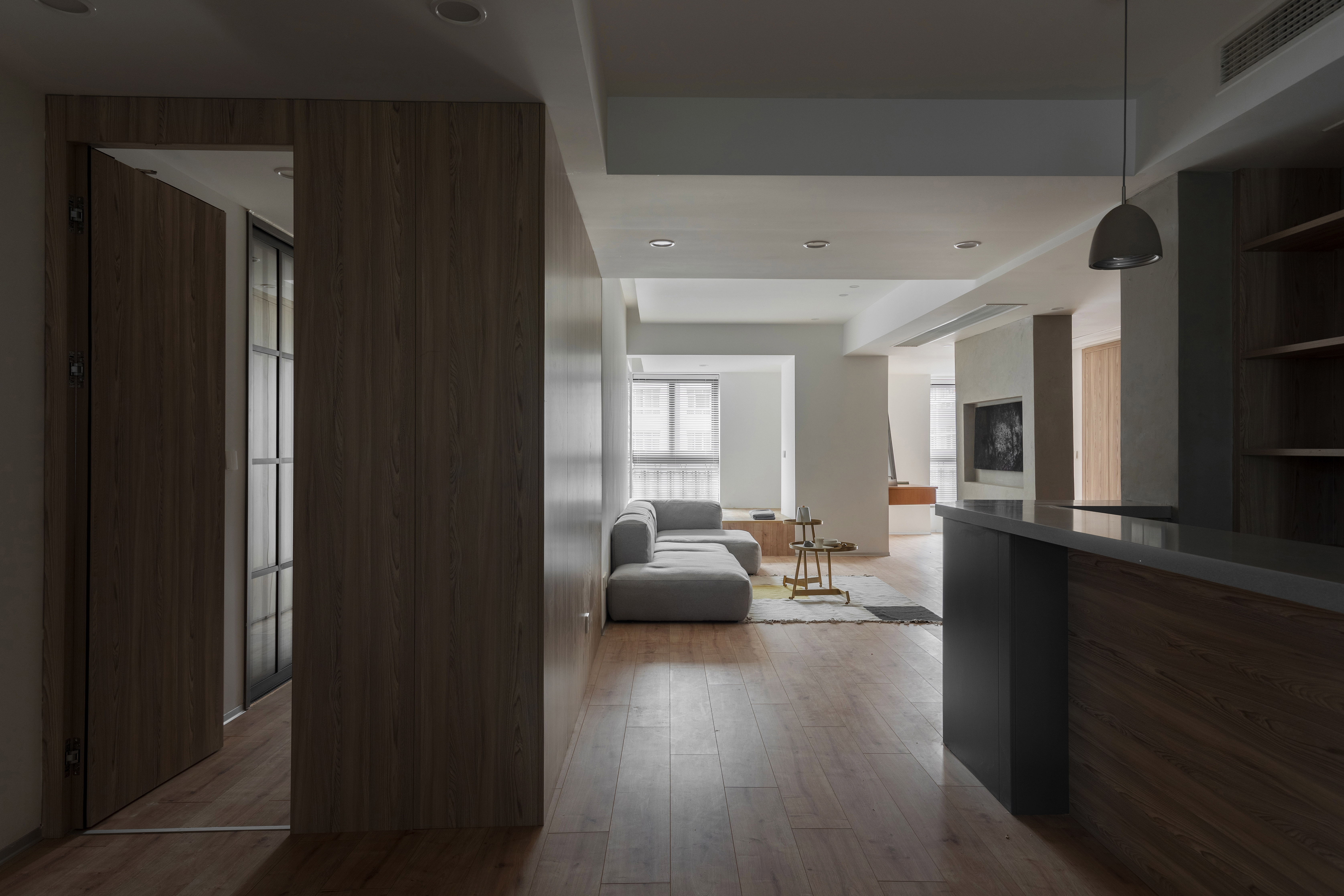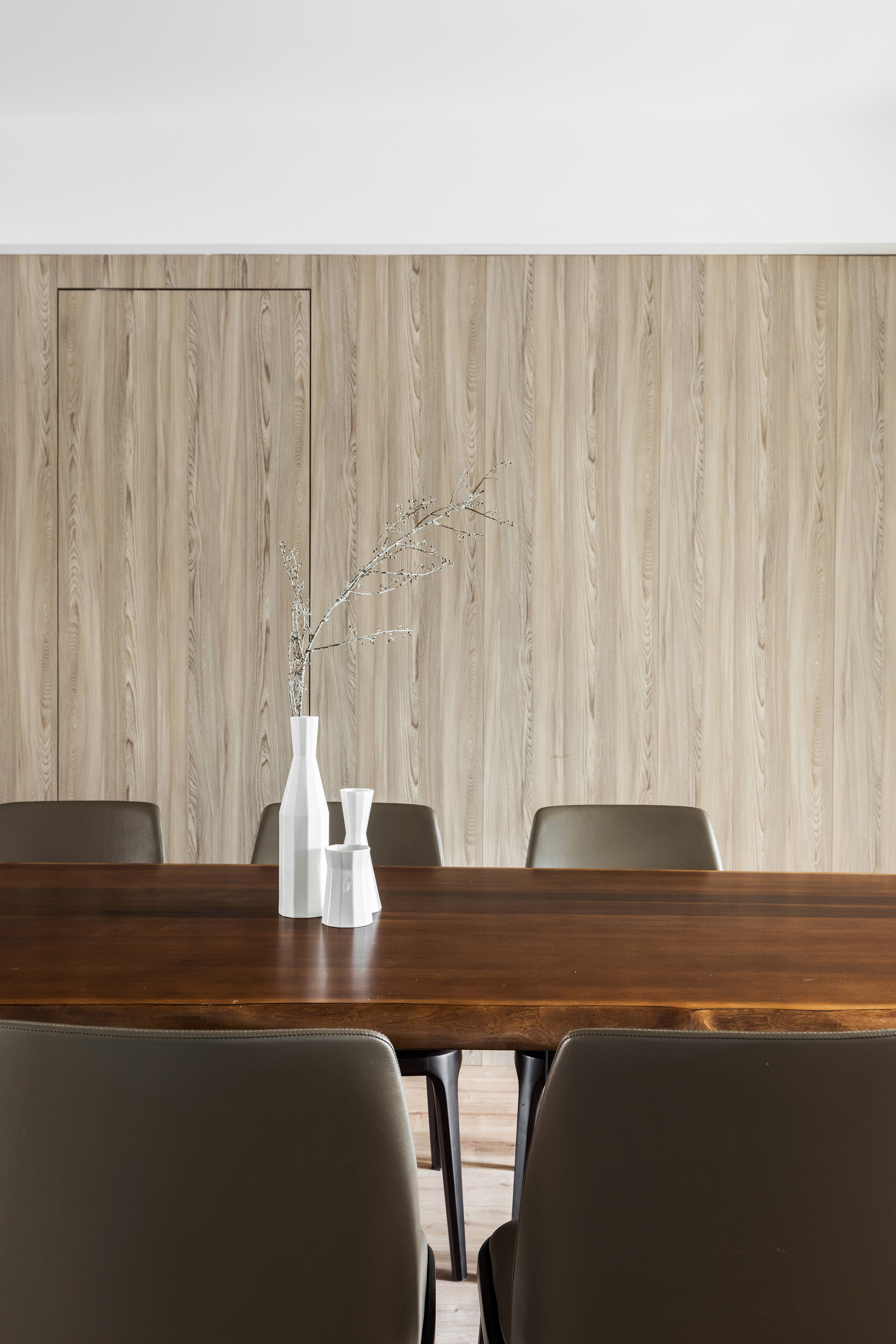 墙板、柜板、与门板选用了博洛尼同一型号板材,统一、克制、内敛