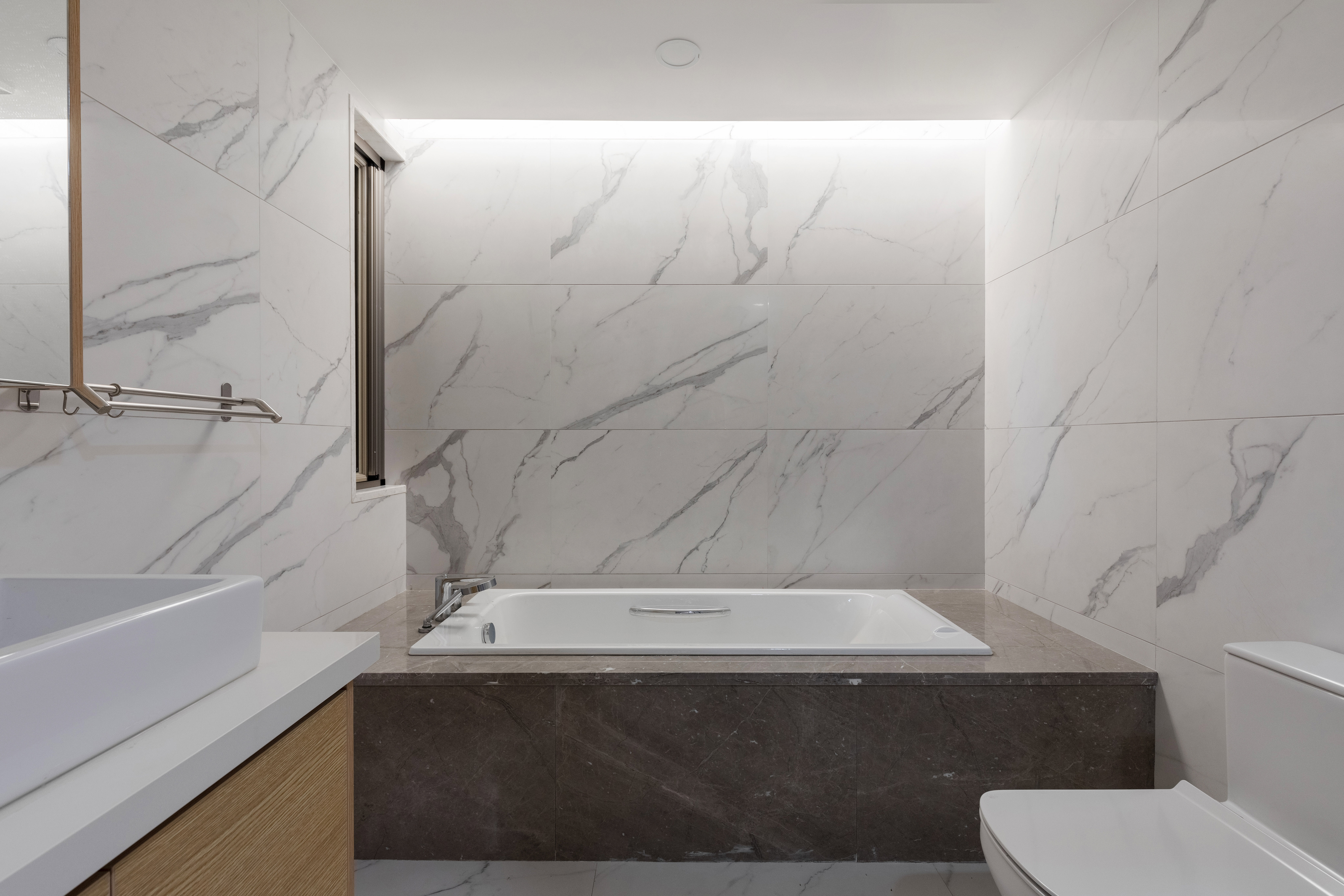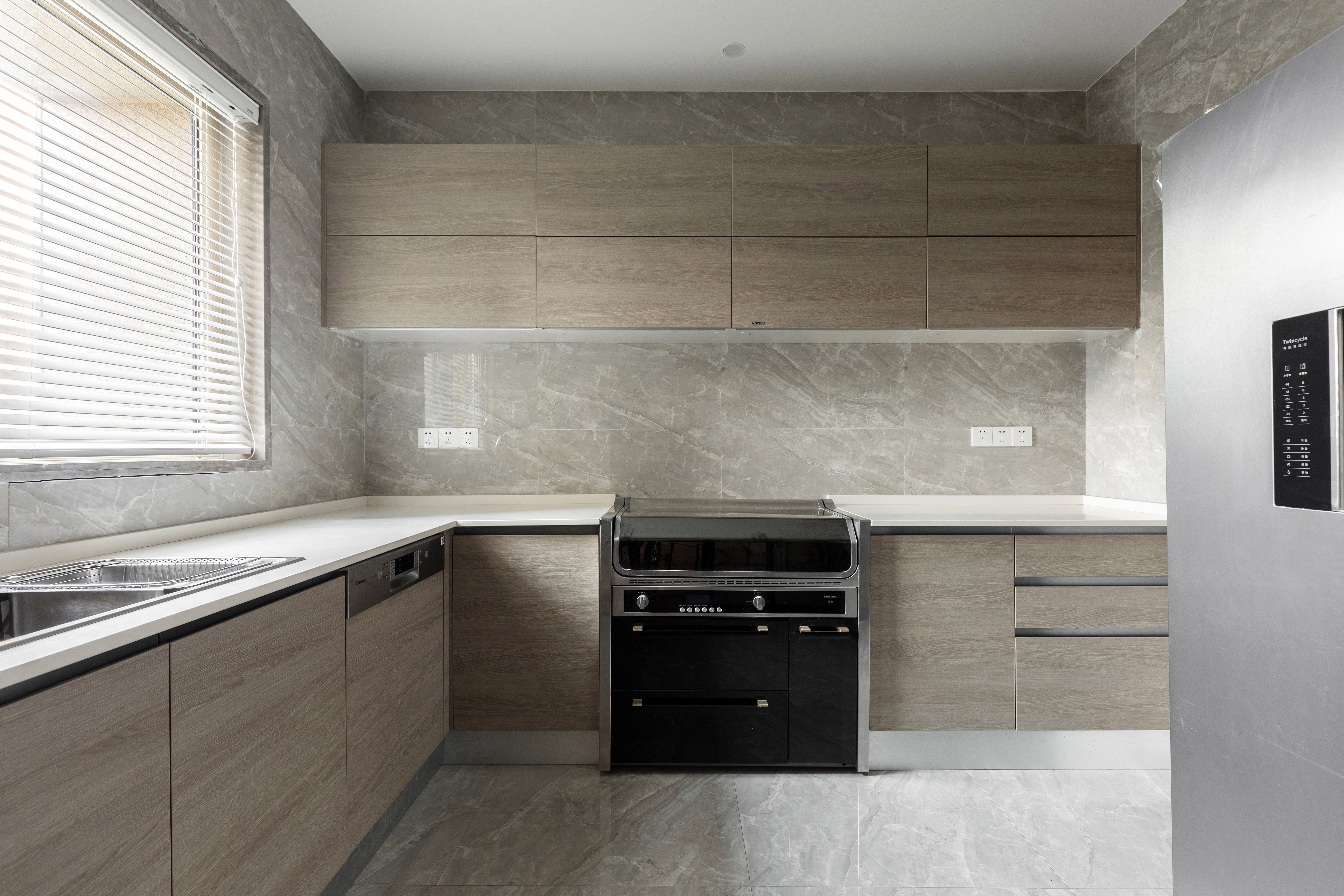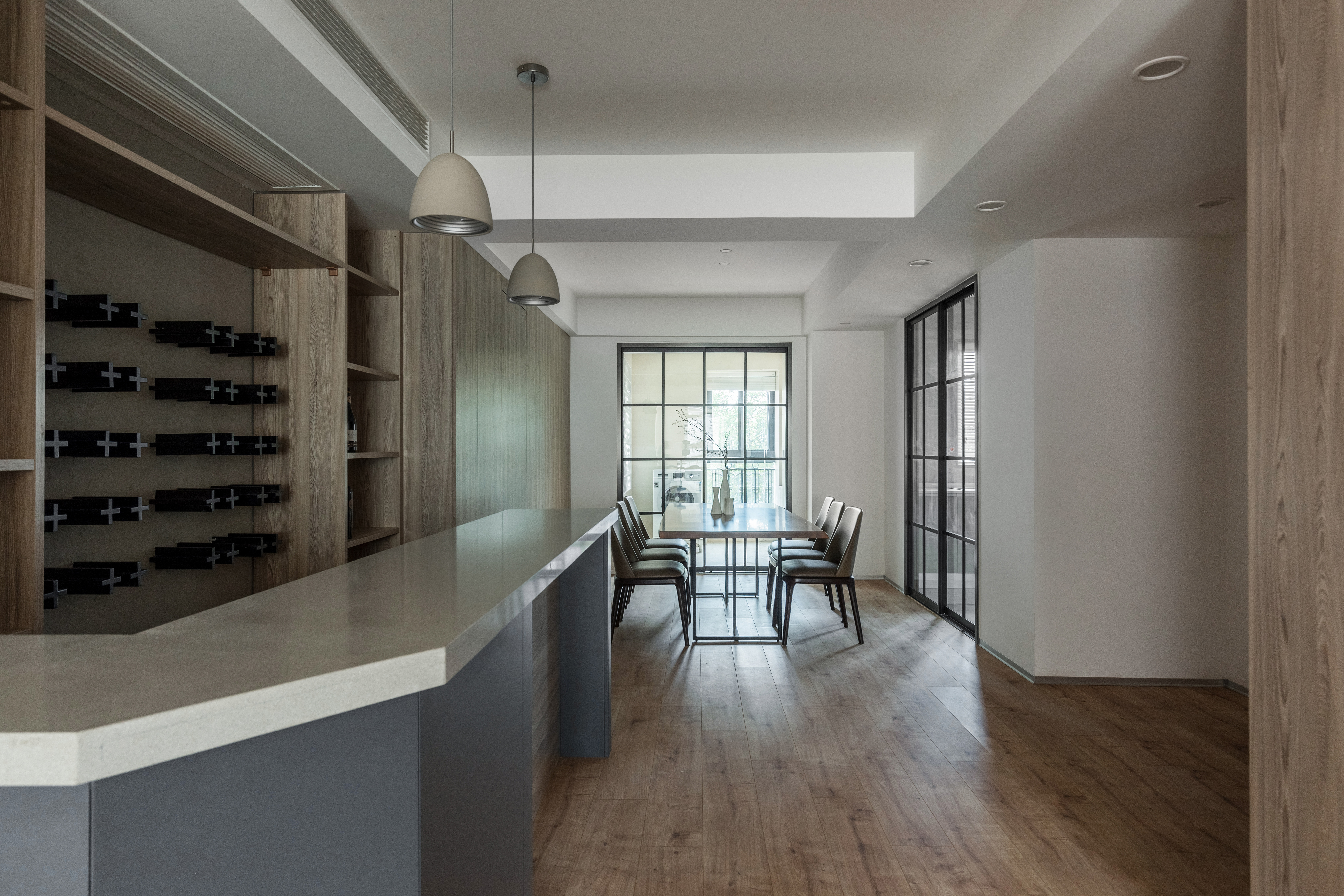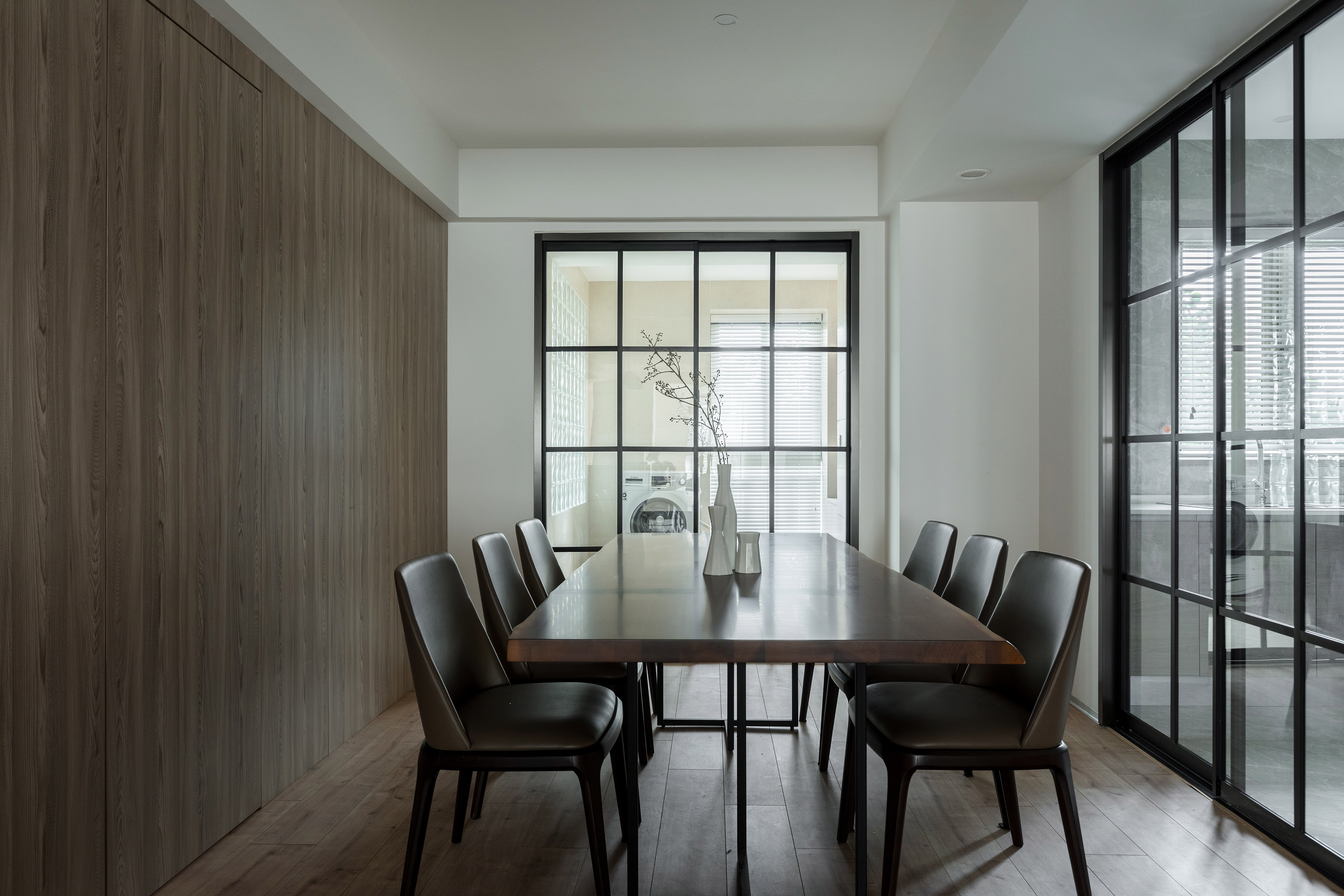 墙板、柜板、与门板选用了博洛尼同一型号板材,统一、克制、内敛