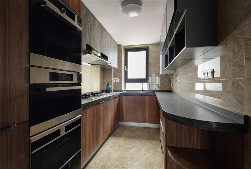 空间布局:我们打开客厅和书房之间的墙,去掉了进门挡在餐厅和客厅之间的隔断,阳光就更好的从南穿北;厨房L型设计成U型,增加储物空间的同时改变门的方向,打开厨房和餐厅之间,用高柜的形式将冰箱布置在厨房移门外,巧妙的窄变移门可分可合的藏在冰箱高柜后面,厨房时而敞开时而闭合;北边的光线也引入到餐厅;