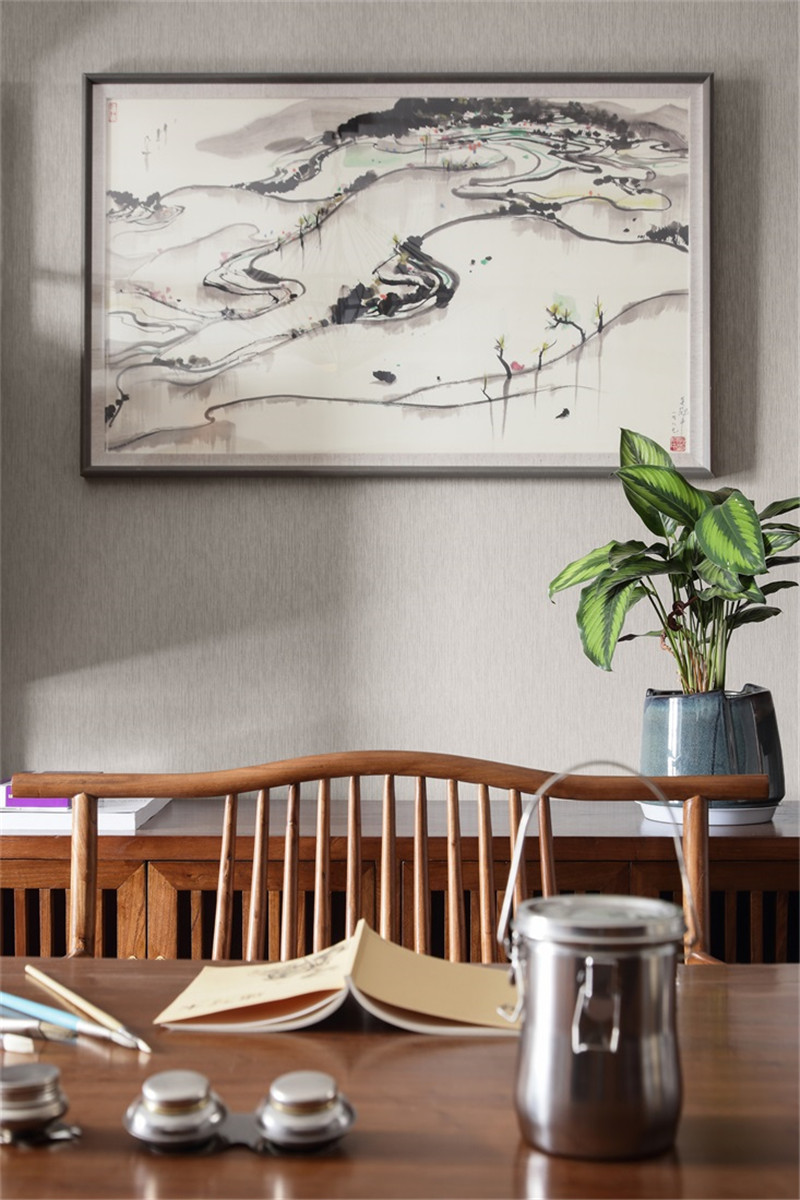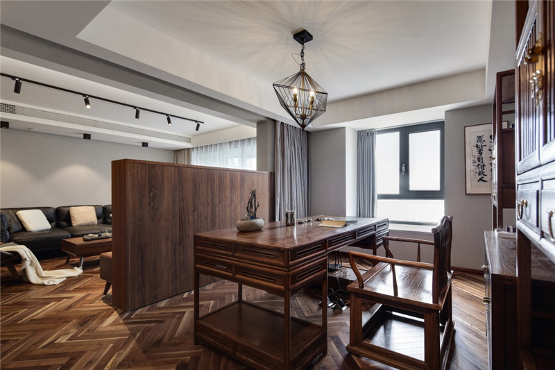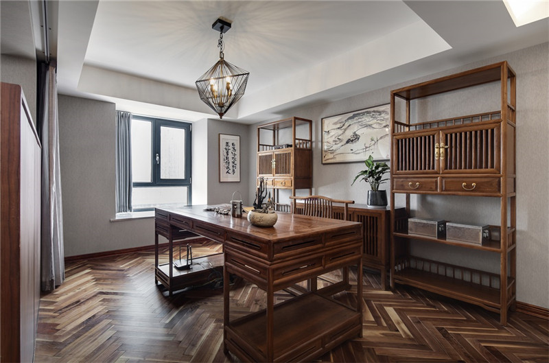 空间意境:男女主人都是特殊学校老师,喜欢中式传统文化,偶尔去买些古玩,一些字画,此案以古典韵味创造一个儒雅的空间氛围,从而达到客户心中理想家的模样,同时也体现了设计师的细化带来的精作。