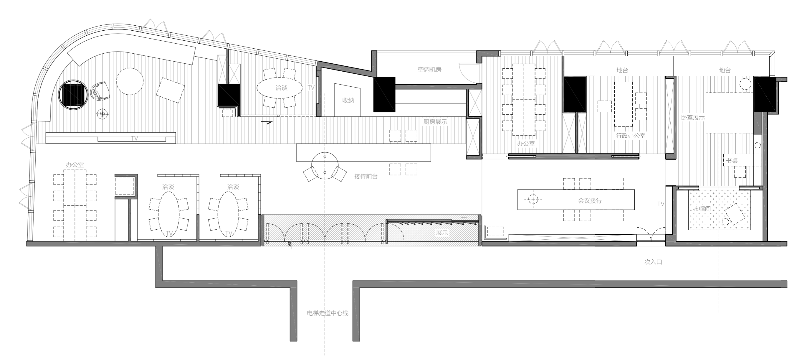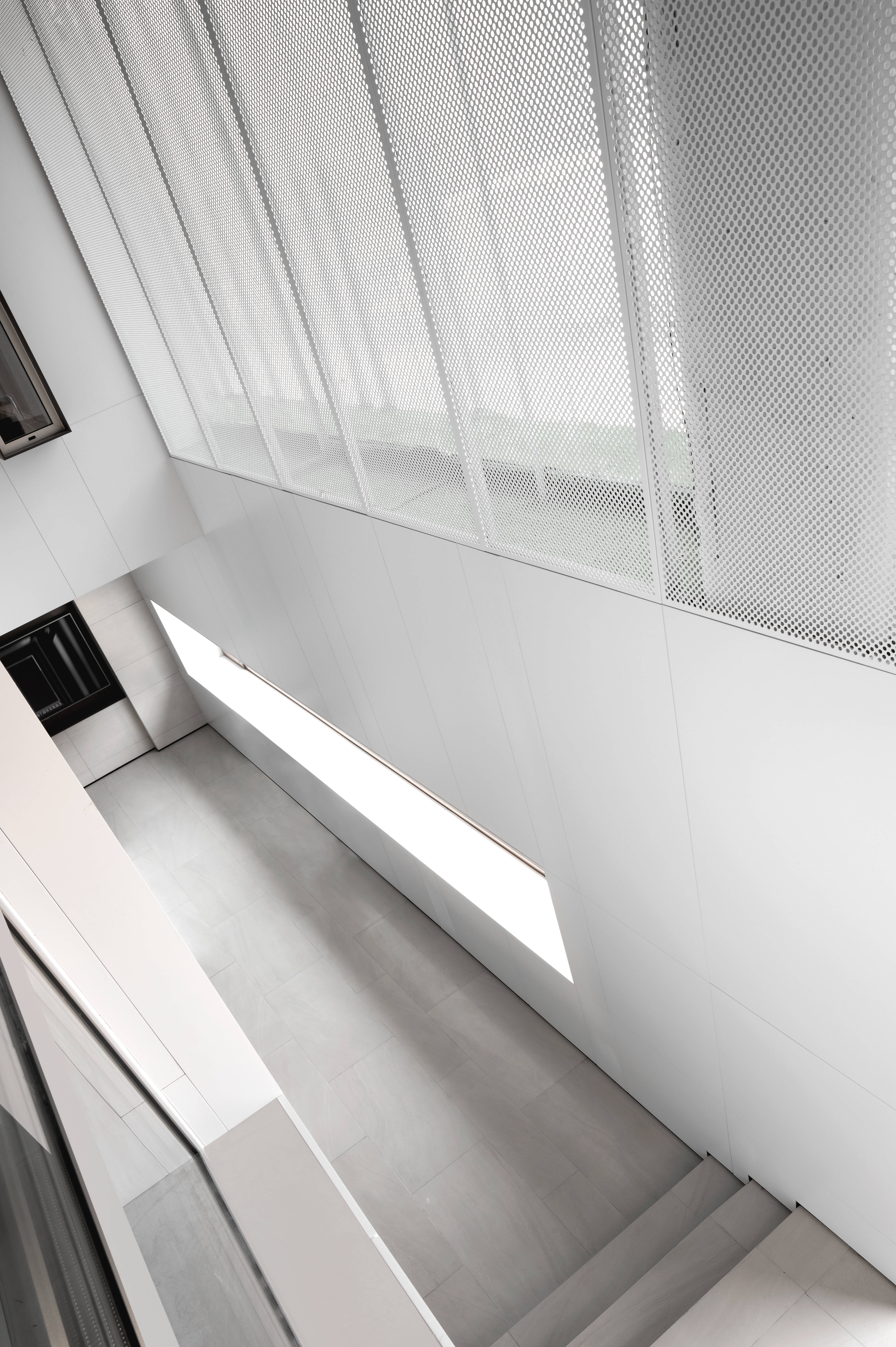 2.南通有相当密度的博物馆,是一个充满文化底蕴的城市,而且东西文化很早便在这里交融。所以我们希望借助梅亚奇的材质元素,让空间展现出轻盈的东方之韵。设计师结合自然、极简主义设计以及东方传统文化的特点,采用无比凝练的当代设计语言,组织出这样一个东西方设计结合的展示空间,谨慎、克制,简 -