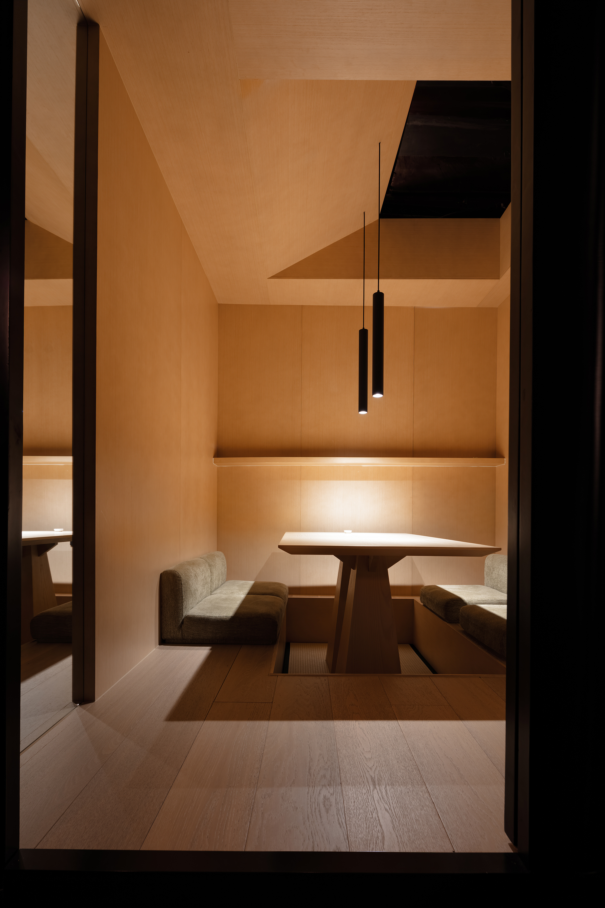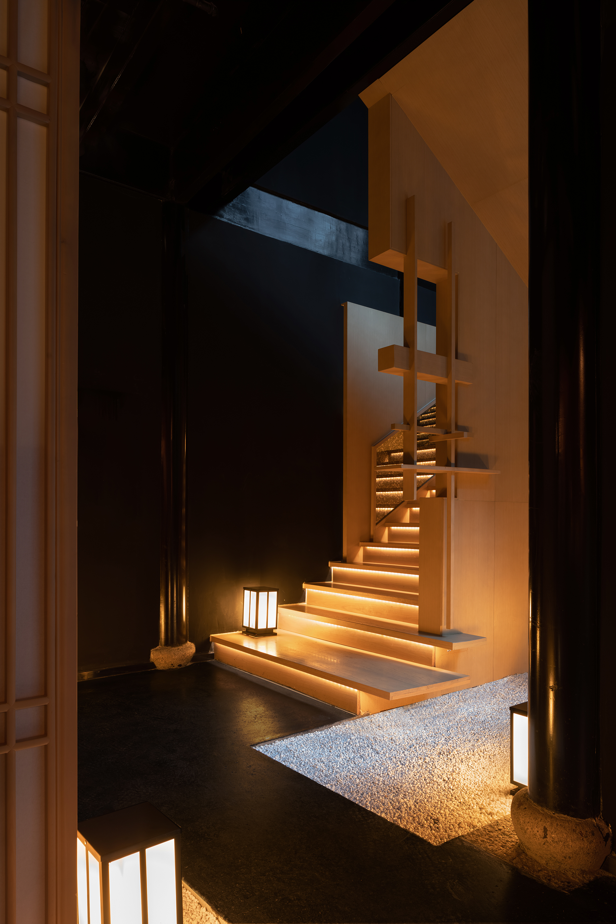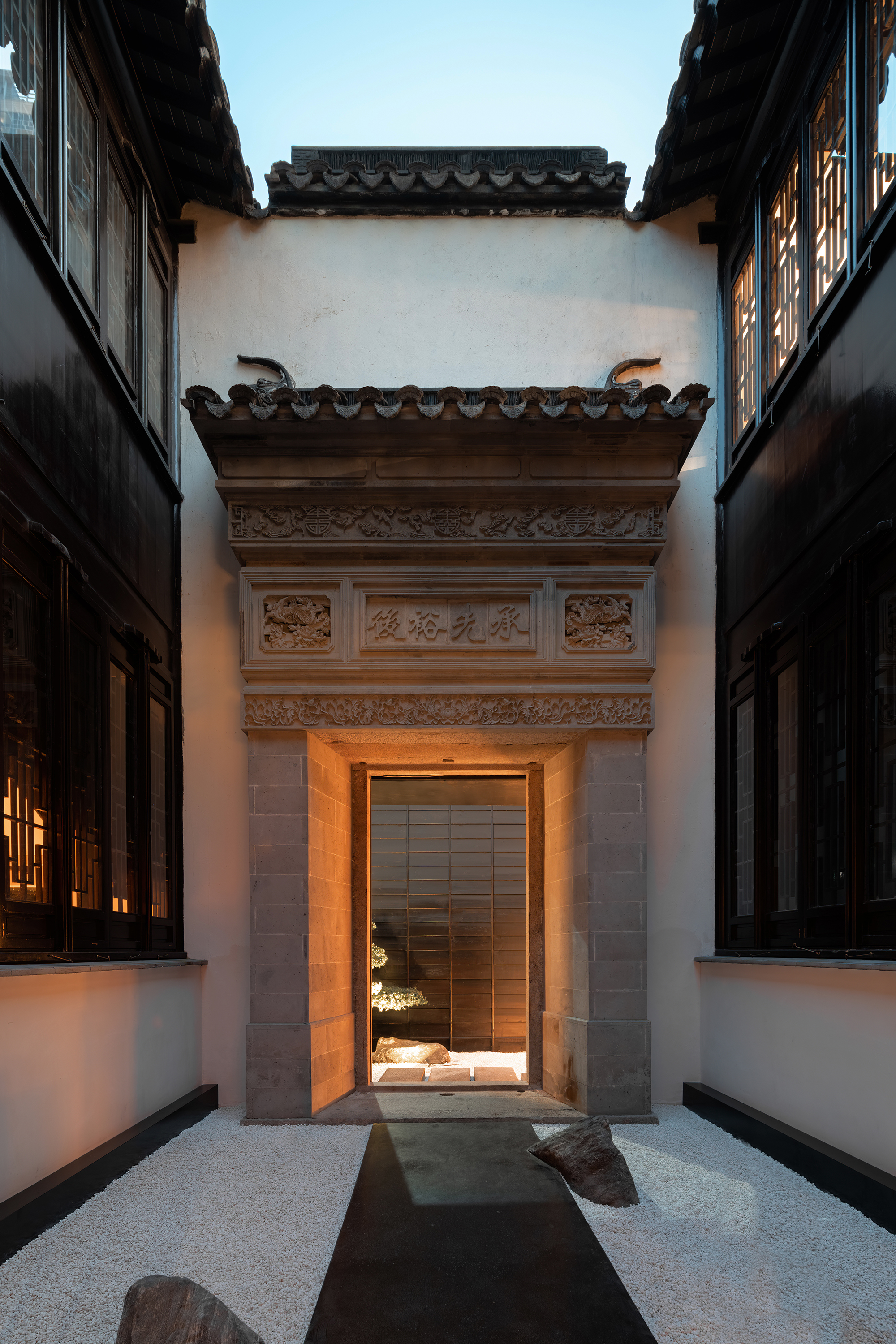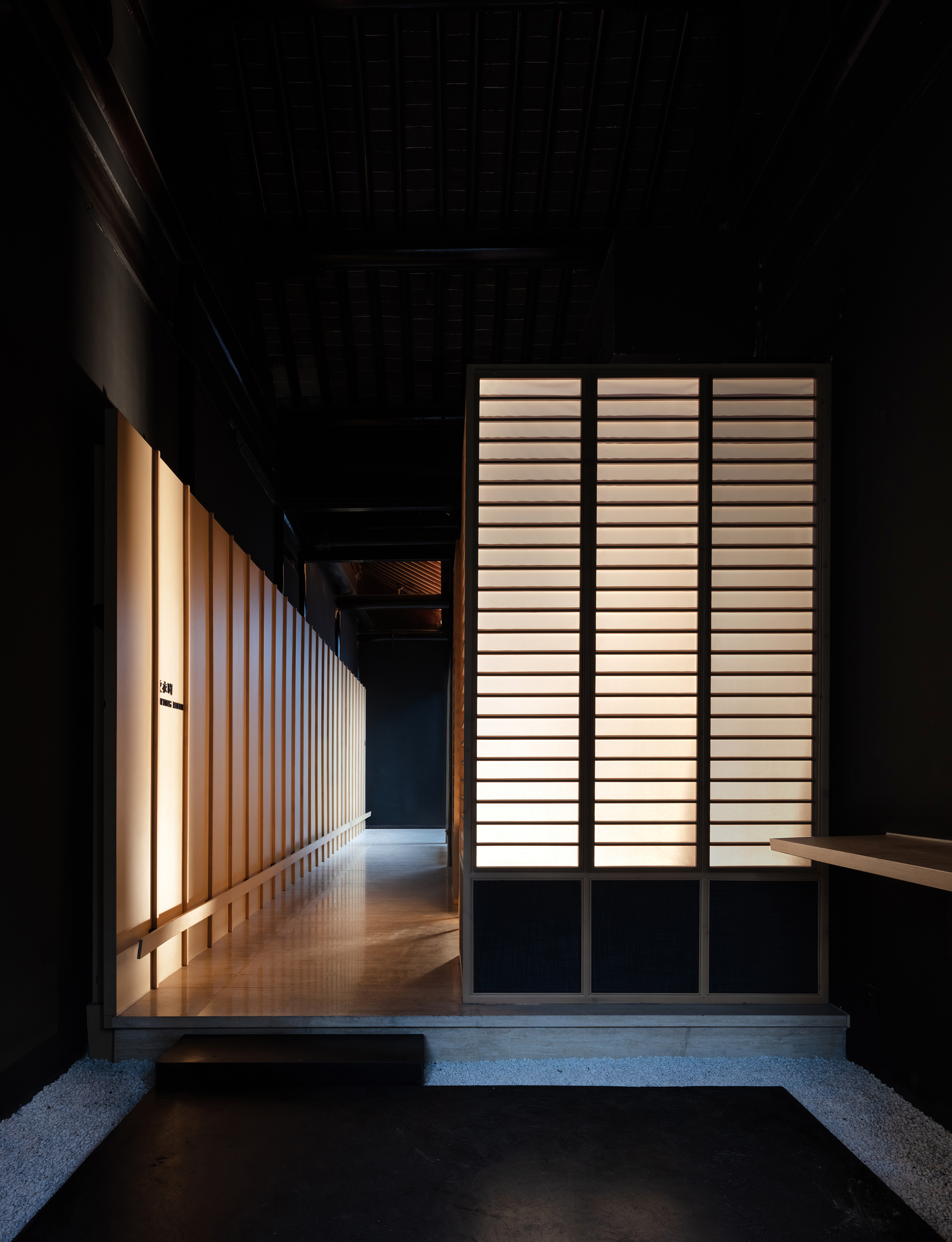 寄席位于无锡市中心的小娄巷历史风貌区,是一家高级日料店,业主希望寄席是一个空间氛围与气质俱佳的一个场所,项目场地的空间形态丰富,廊-院-庭-楼形态交织,因此设计把空间的秩序放到首位,以空间剧情的方式引人入胜,通过空间的转乘来让顾客体验到层层开合,渐入佳境。