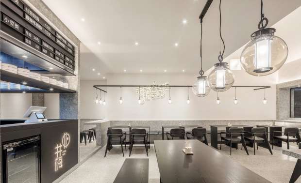 入口以低调的尺度开篇,转入第一重场景是一个走廊,设置场地高差让顾客有一个停留的动作,天花与墙面做保留了原结构而地面与墙裙构成新的比例,内庭与外院分别赋予了“静”与“动”的主题,餐厅一层作为开放式的空间让顾客有多重的视角看到食物制作的过程,二层以“漂浮的灯笼”作为概念 将每个包间独立开来,光影重重构成生动画面
