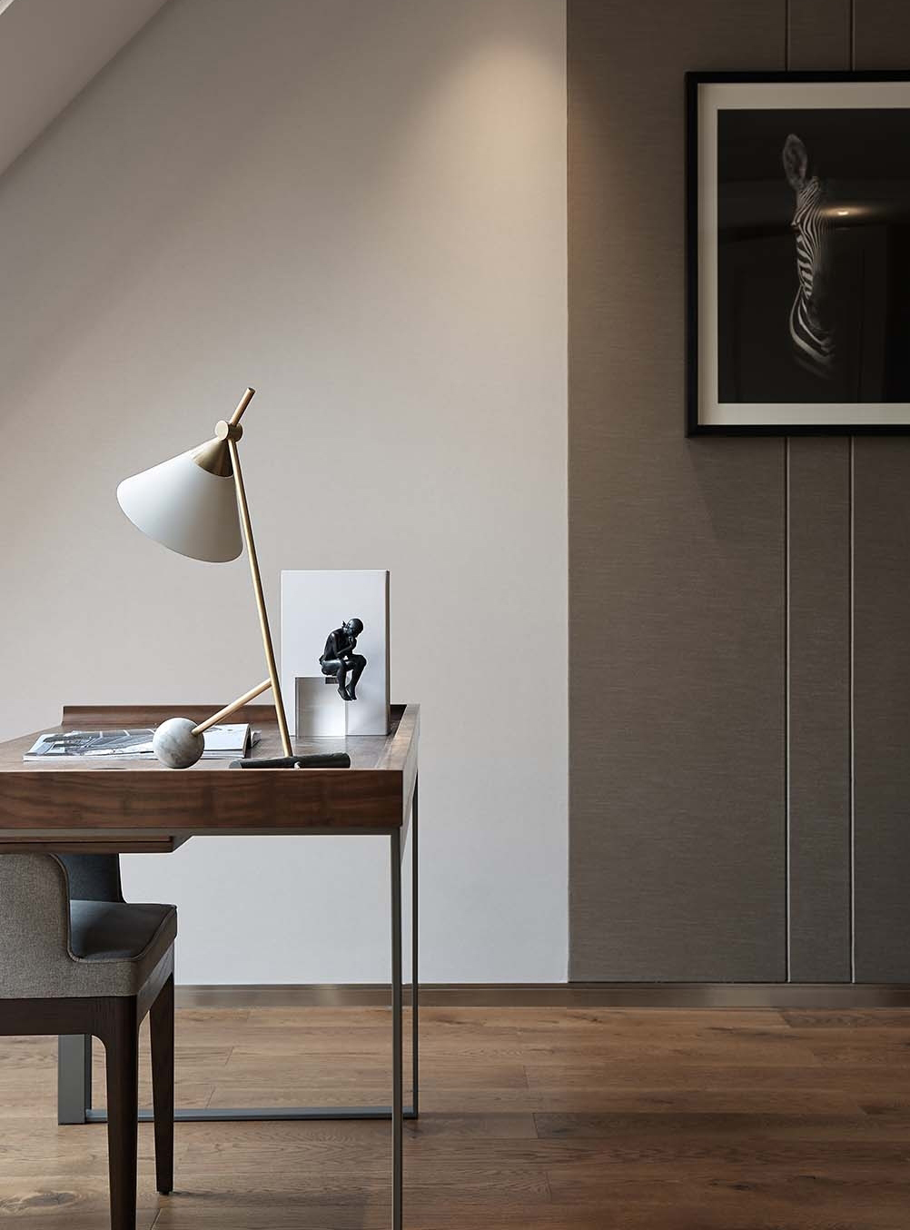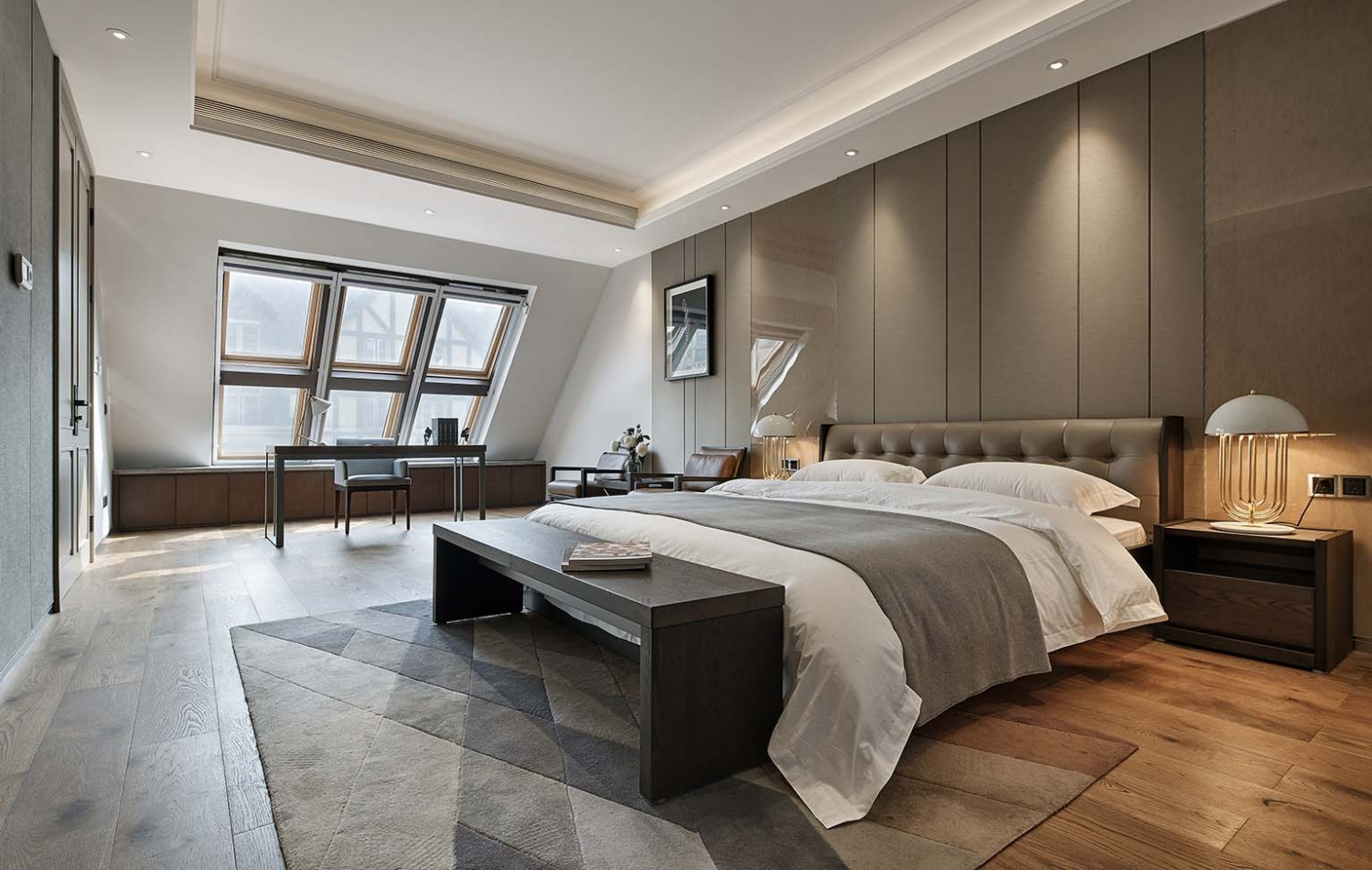 卧室 Master Room 主卧室空间内家具和饰品的色调高度统一,采用温馨的原木色和麻布的混搭,自然温馨,不失品质感。