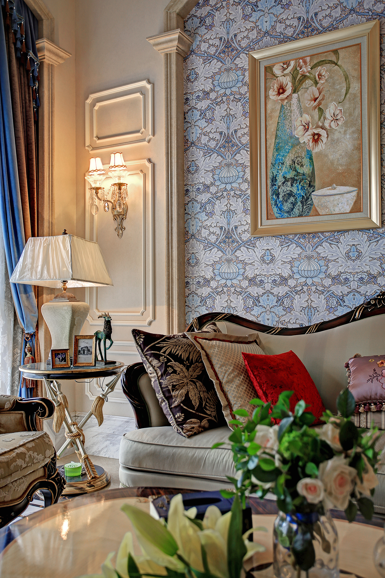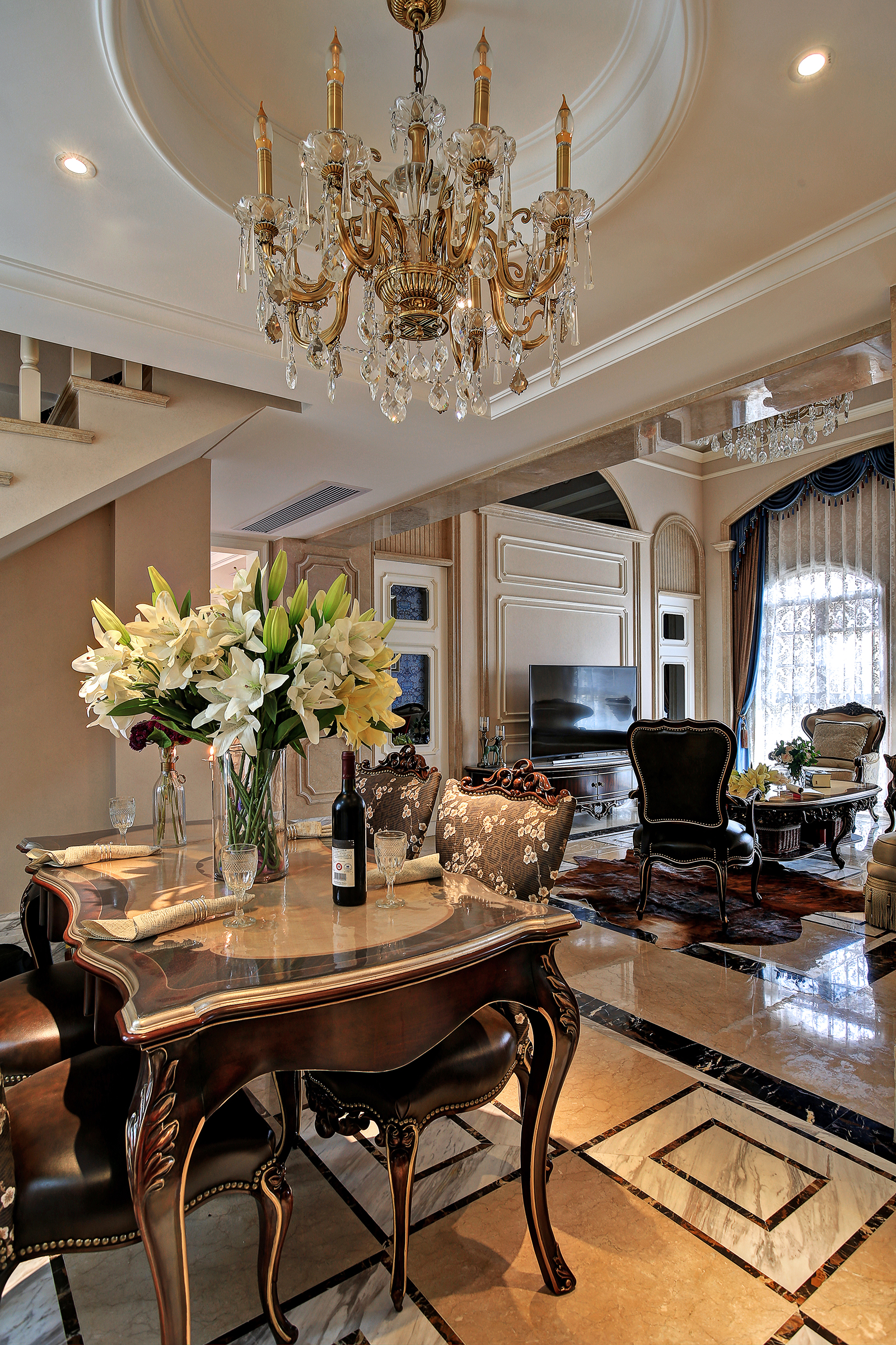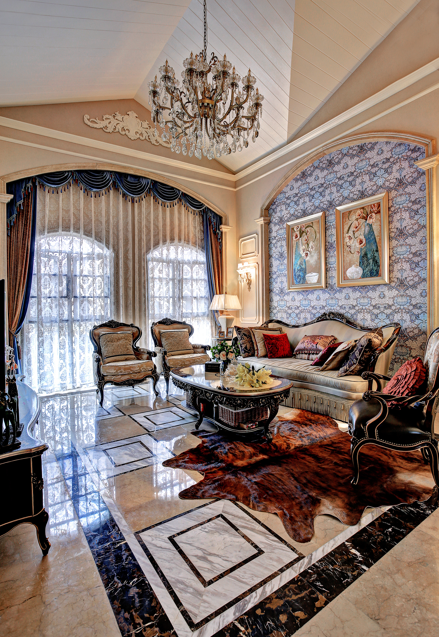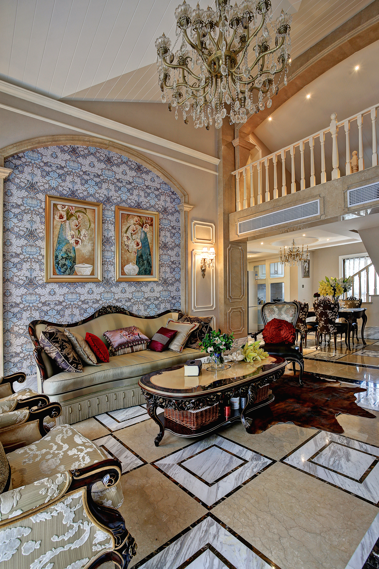 天然石材经拼花搭配,赋予地面层次感。