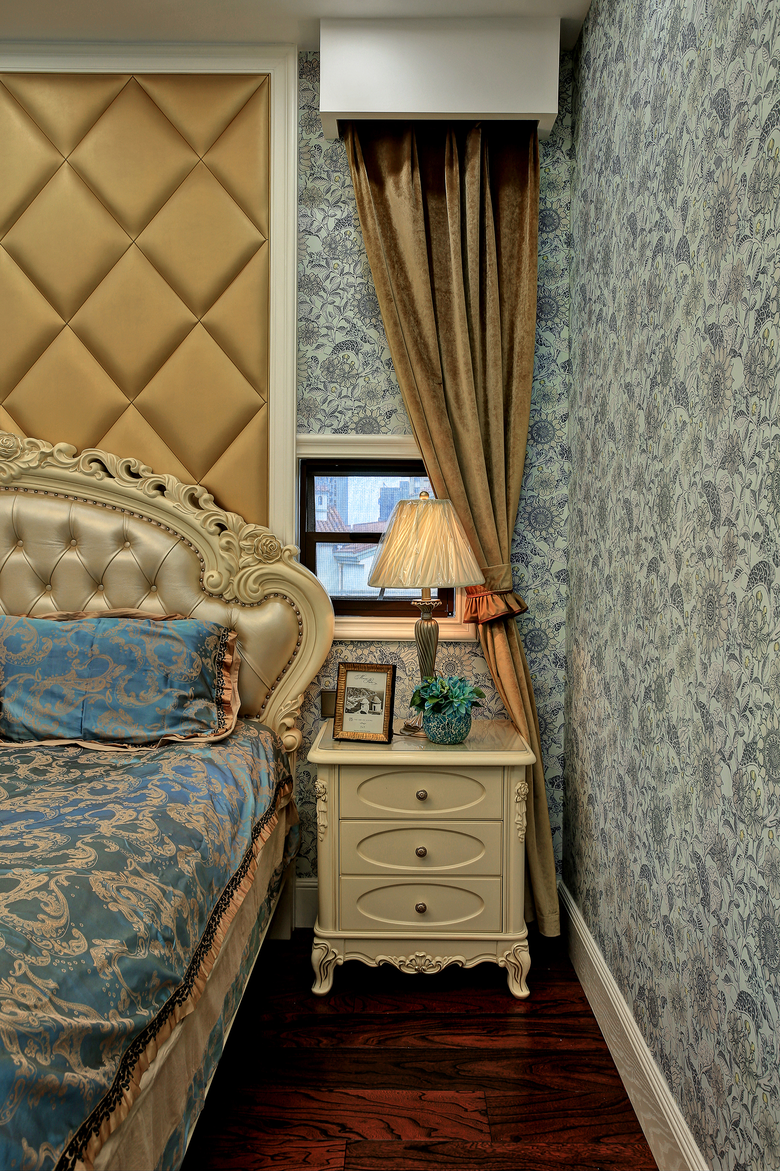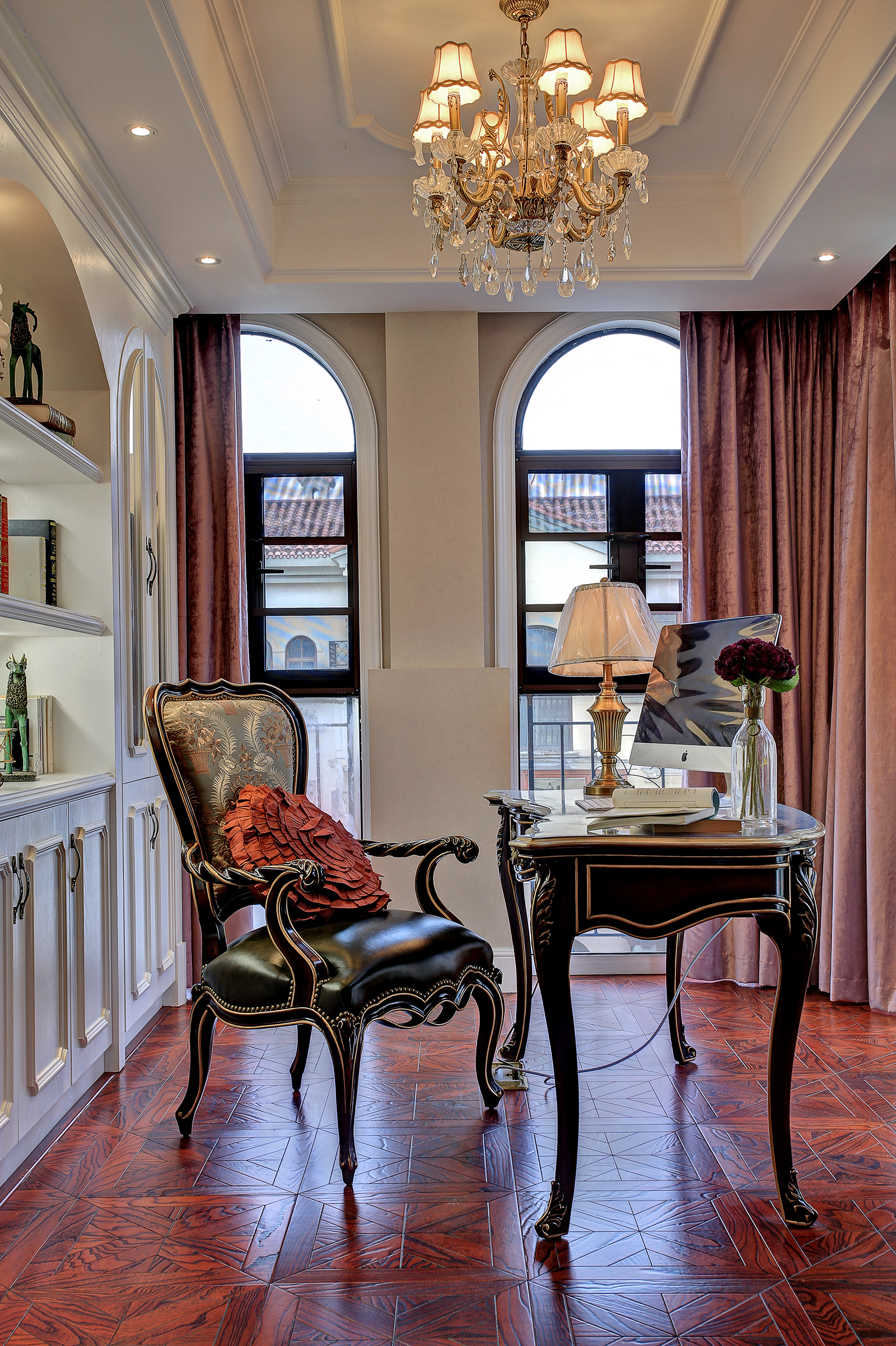客厅顶保持了原有建筑的结构形体,运用了木饰面做软化处理,使之成为点睛之笔。