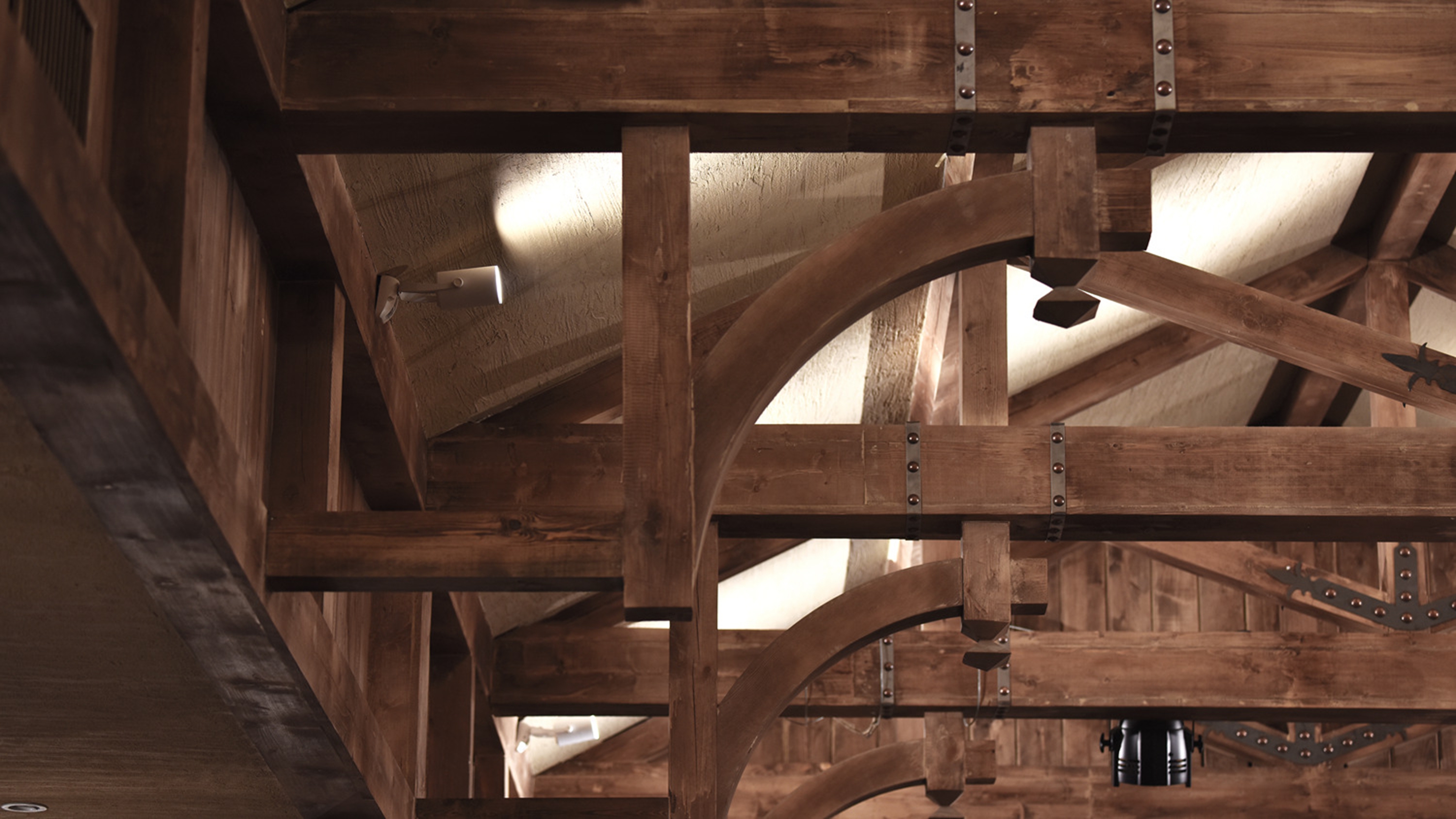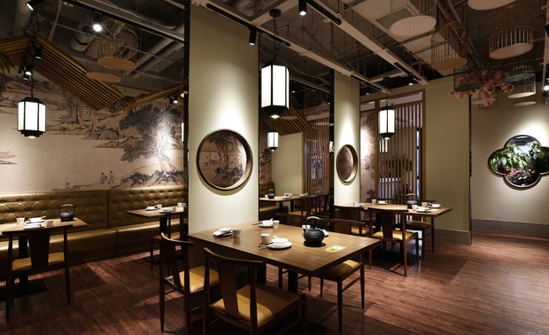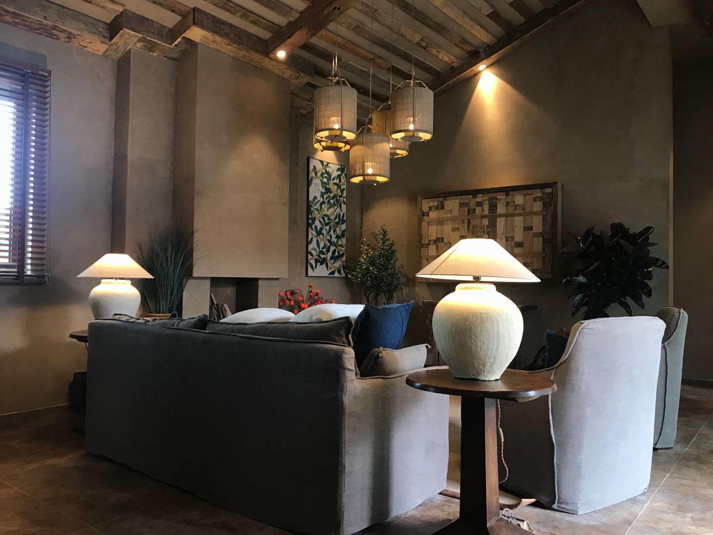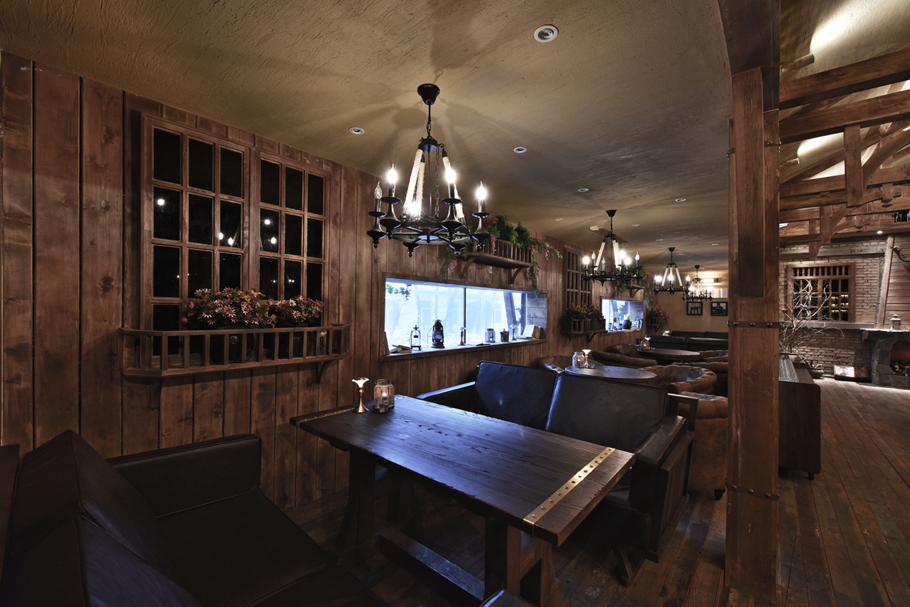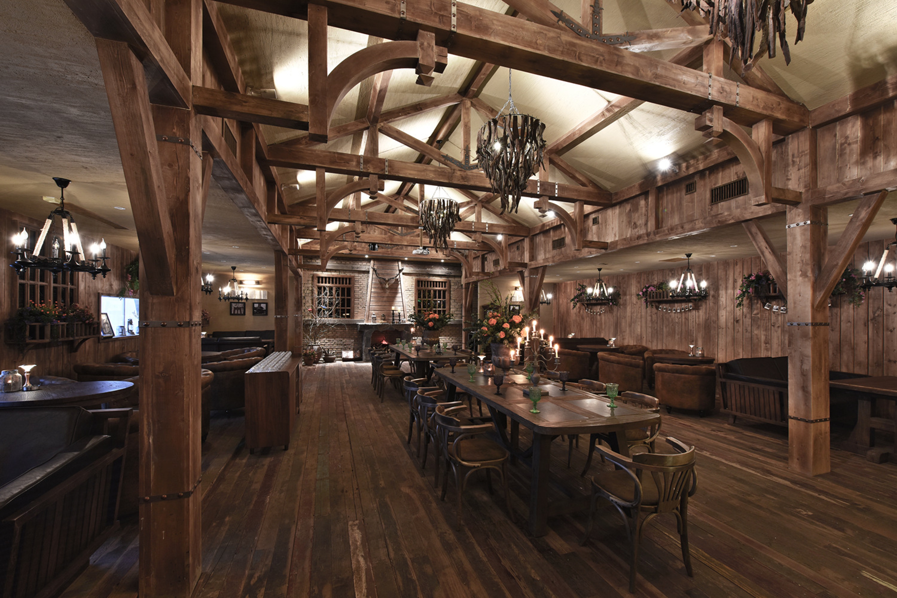 墙面采用老木板与红砖相结合,大厅顶部采用木结构,整个空间的氛围更加温馨、舒适。大厅定制主灯,让整个空间更加有年代感。