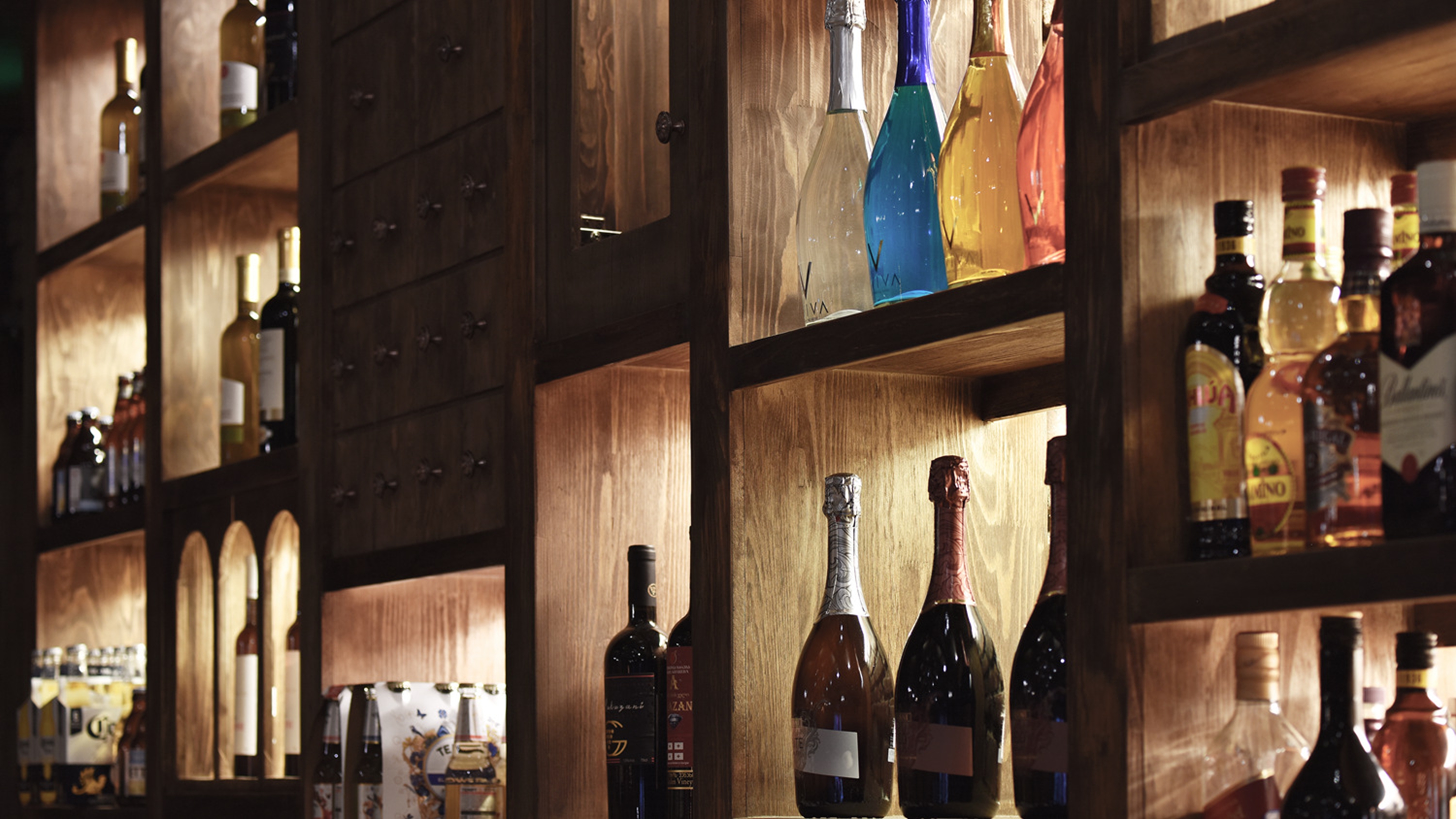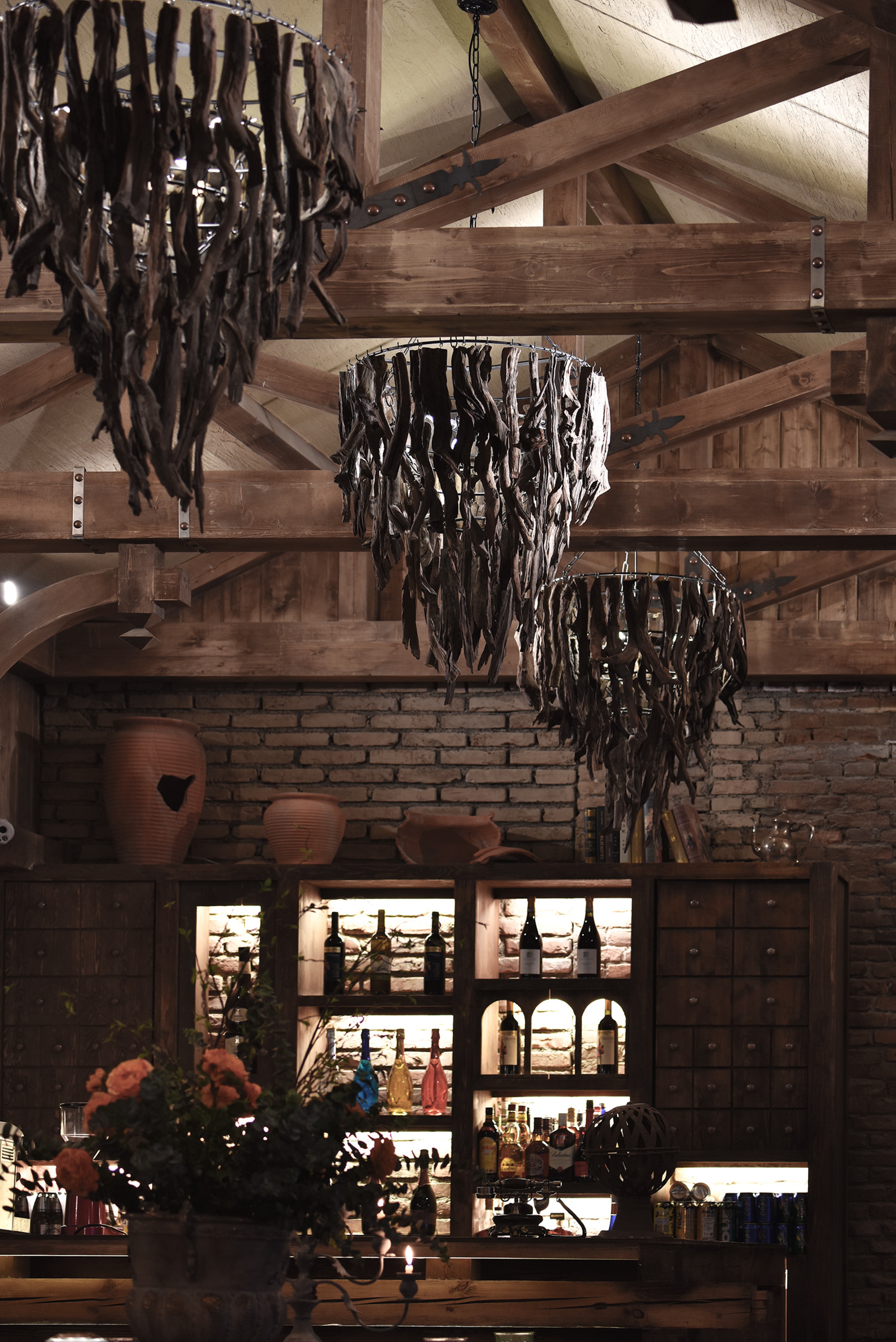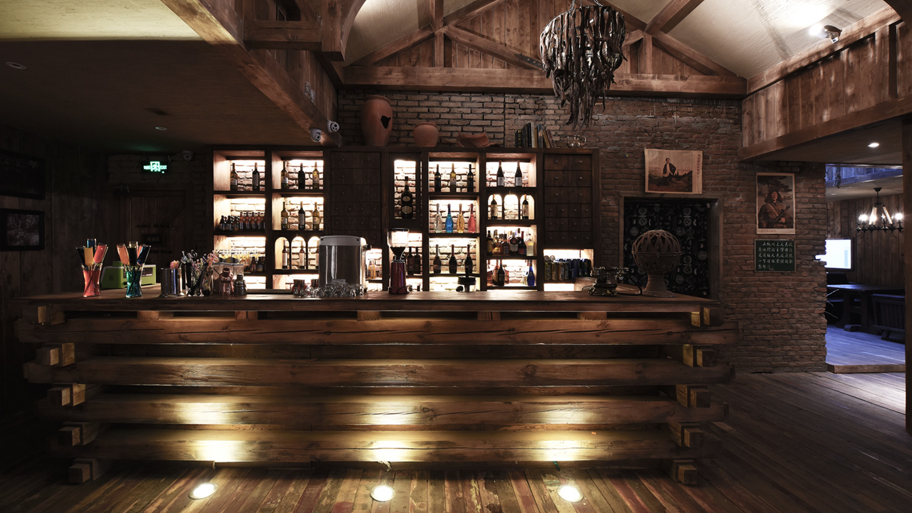 吧台运用造型结构丰富的实木方穿插拼接成我们的吧台,背景酒柜整体将原始的气息带入整个空间中,质朴的呈现在眼前,非一般的空间带来非一般的感受。