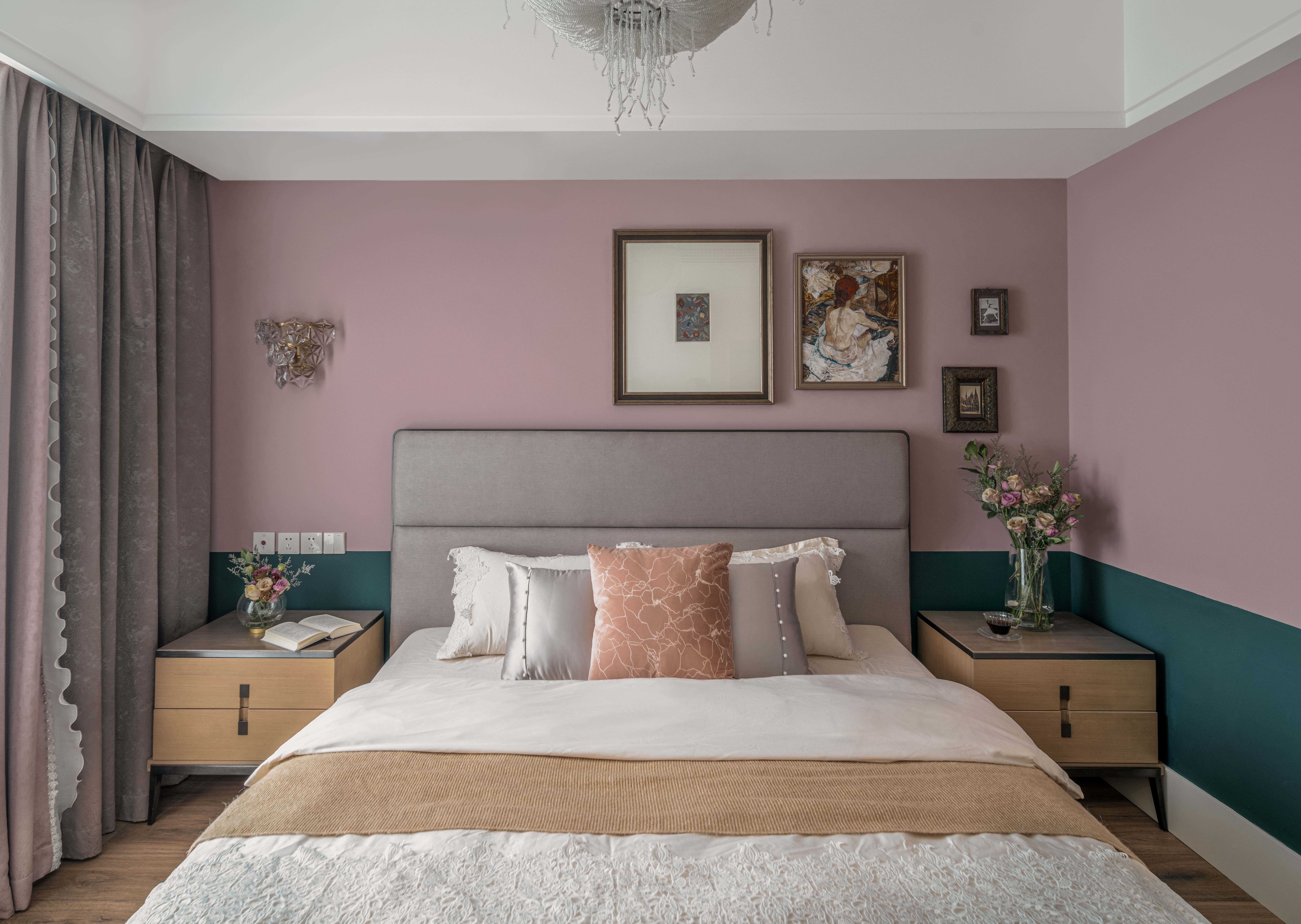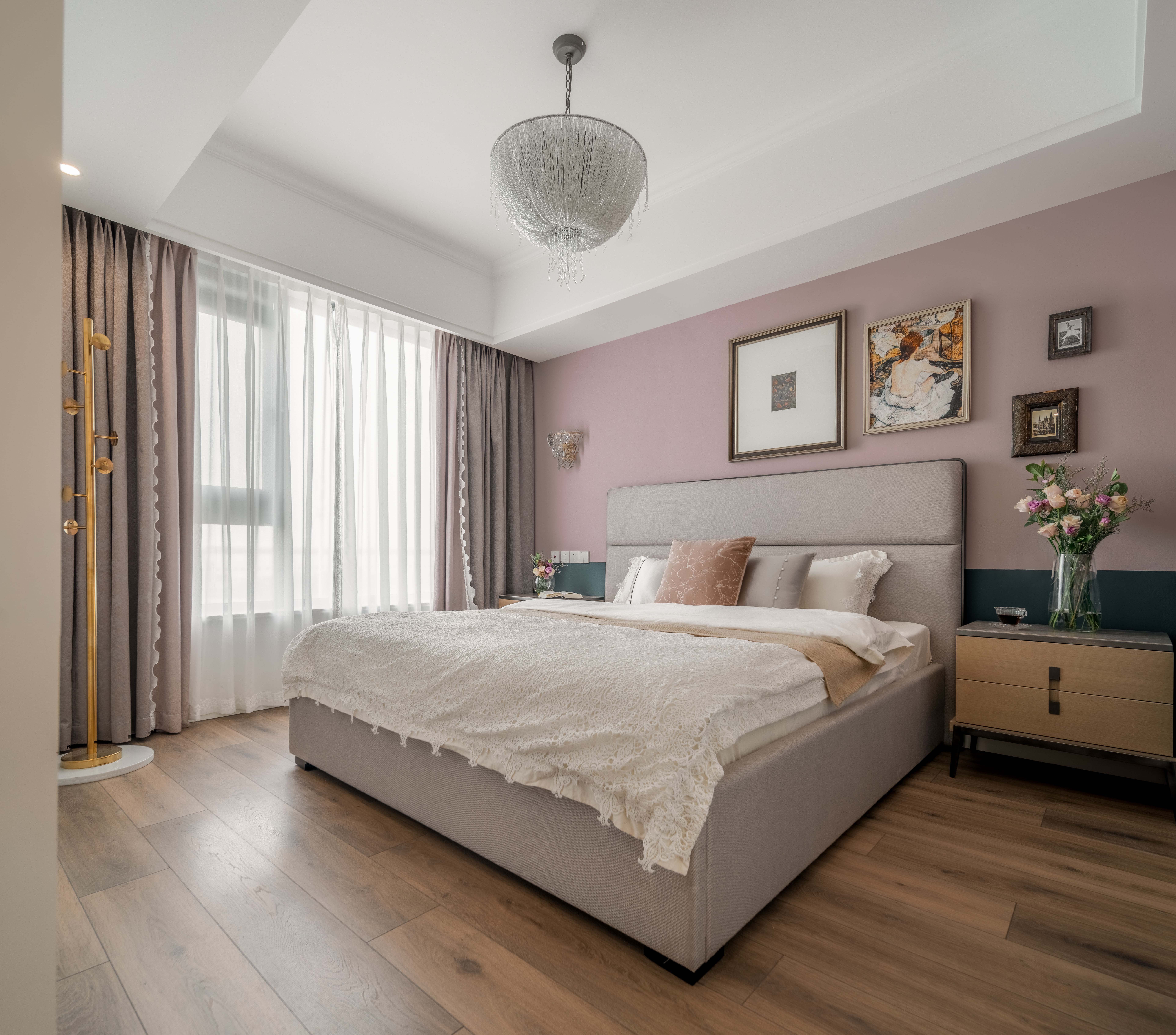 在本案中,混搭美式大气随意、北欧人性化、法式精致典雅,甜美优雅粉墙面、配饰业主个性饰品挂画,弥散着玫瑰清茶,简单的基本所需,造出独属于她的时间与生活。
