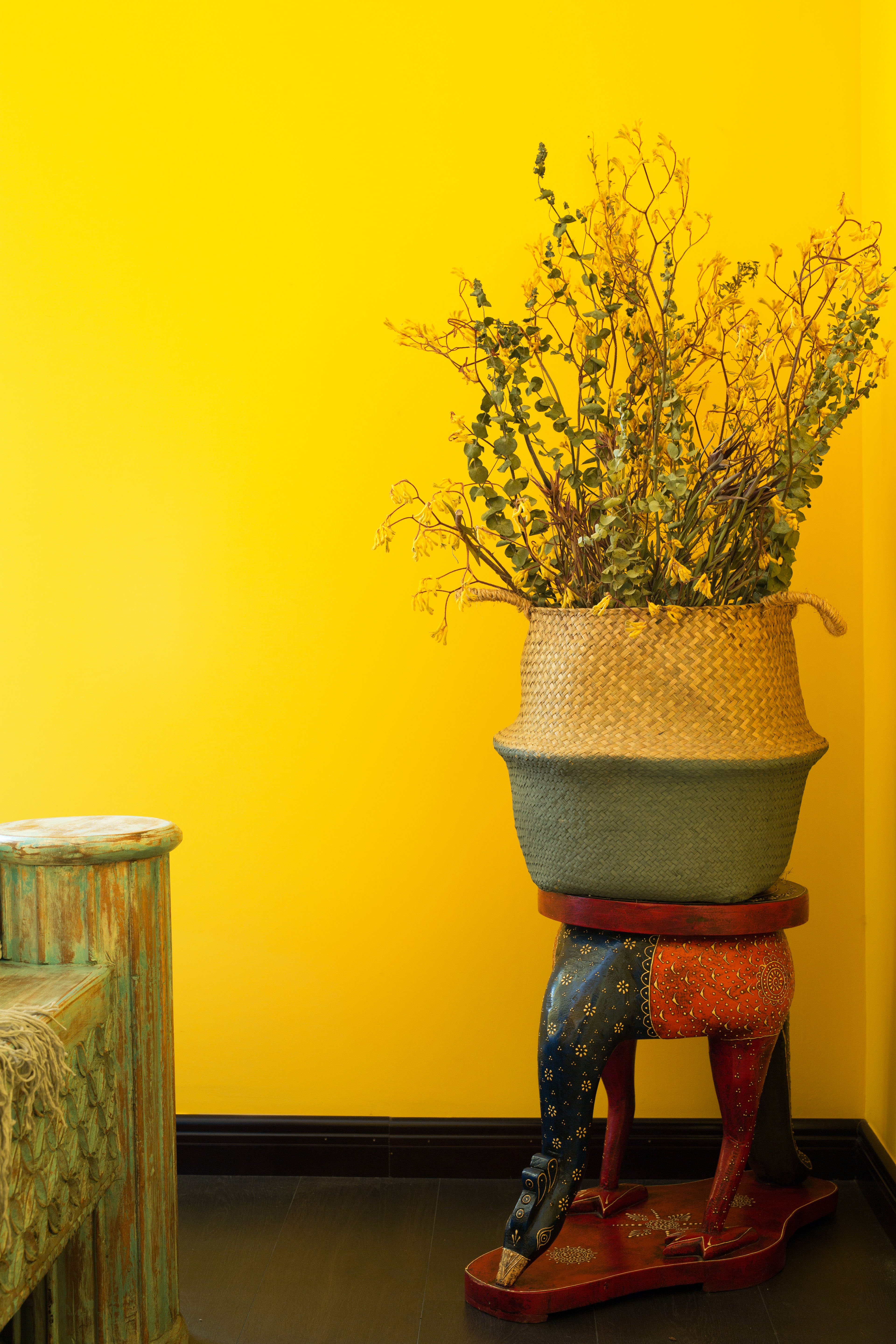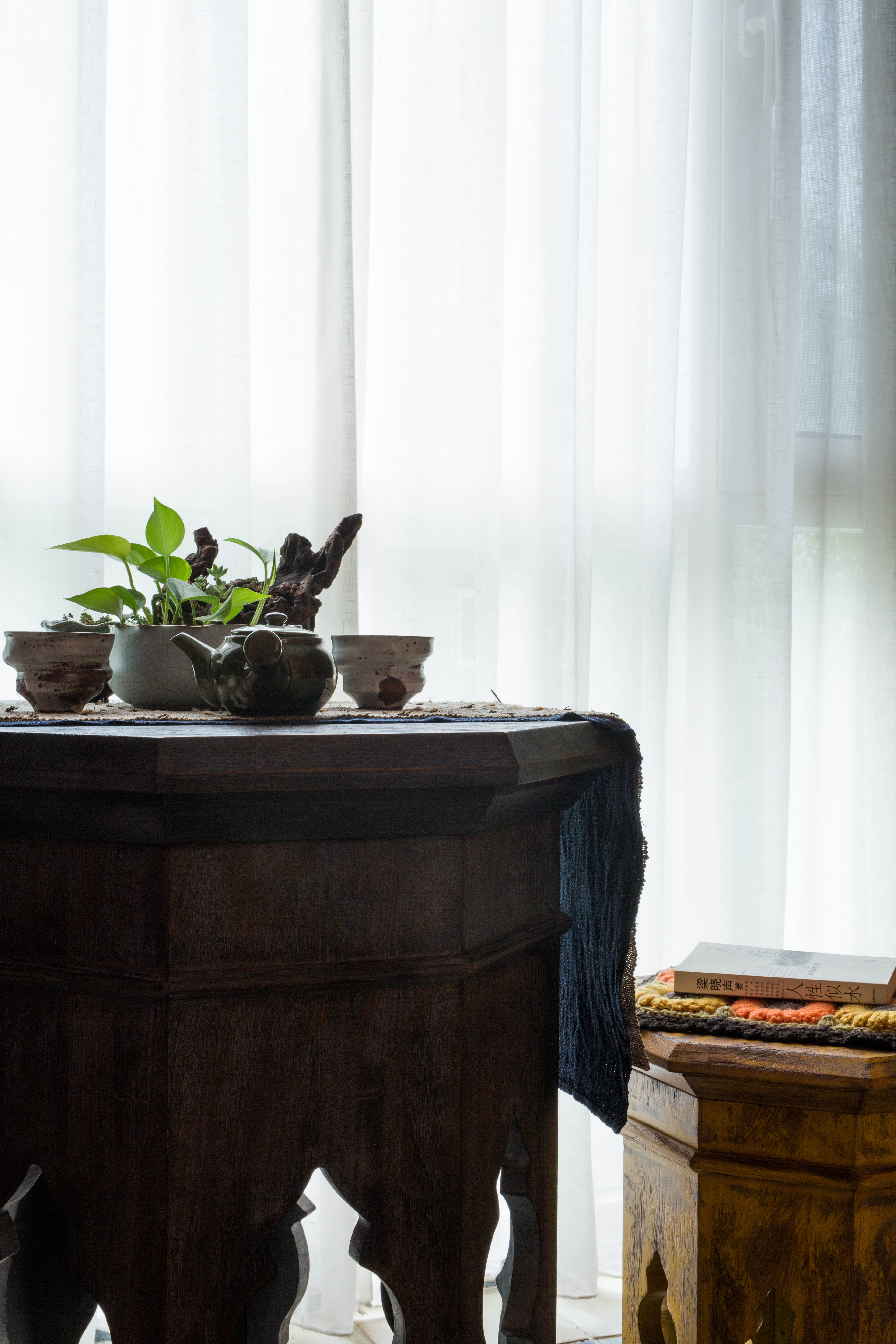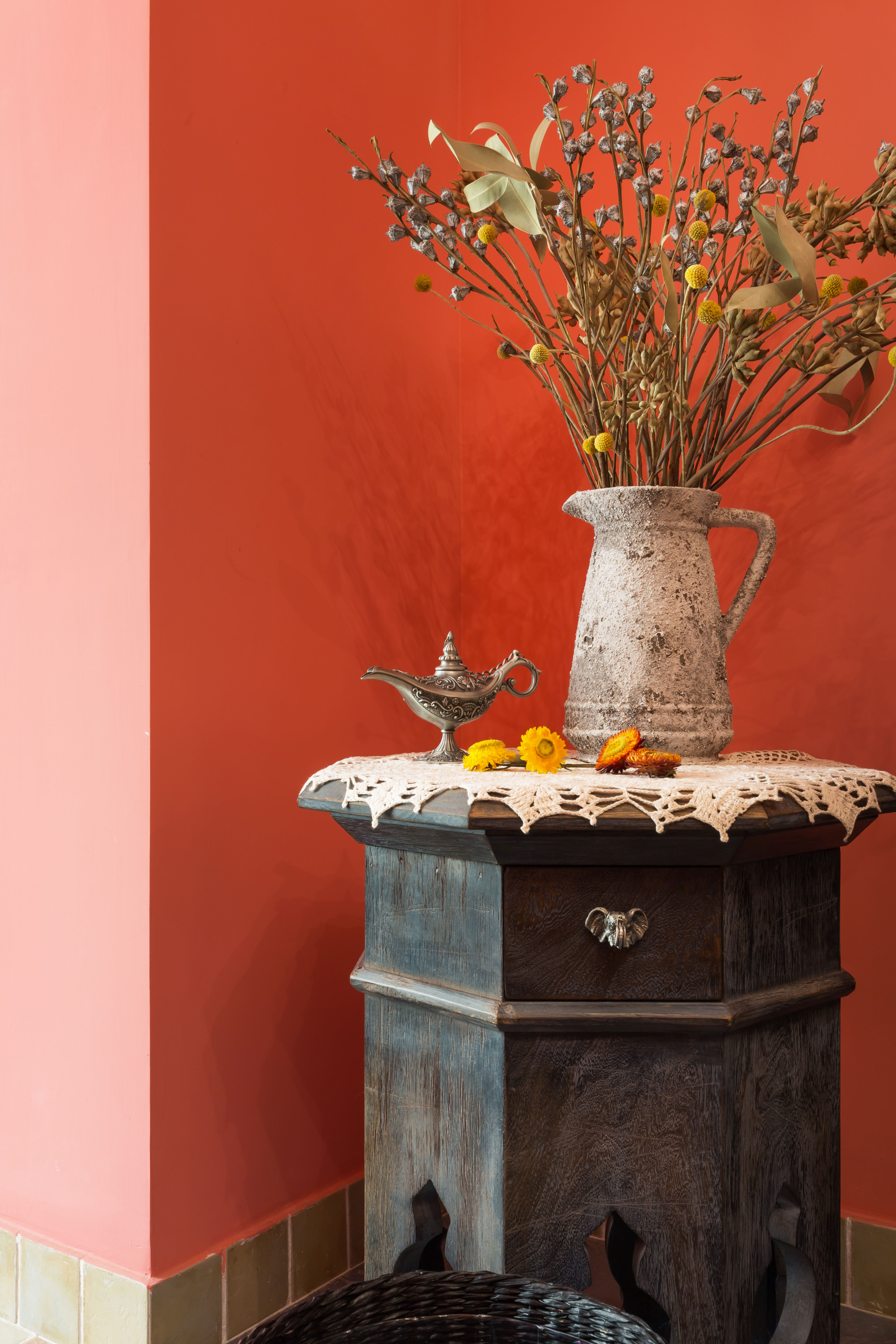 本案为配合家具的古朴感,特意在花艺的搭配上选择干花为主,更有助于衬托空间的复古气息