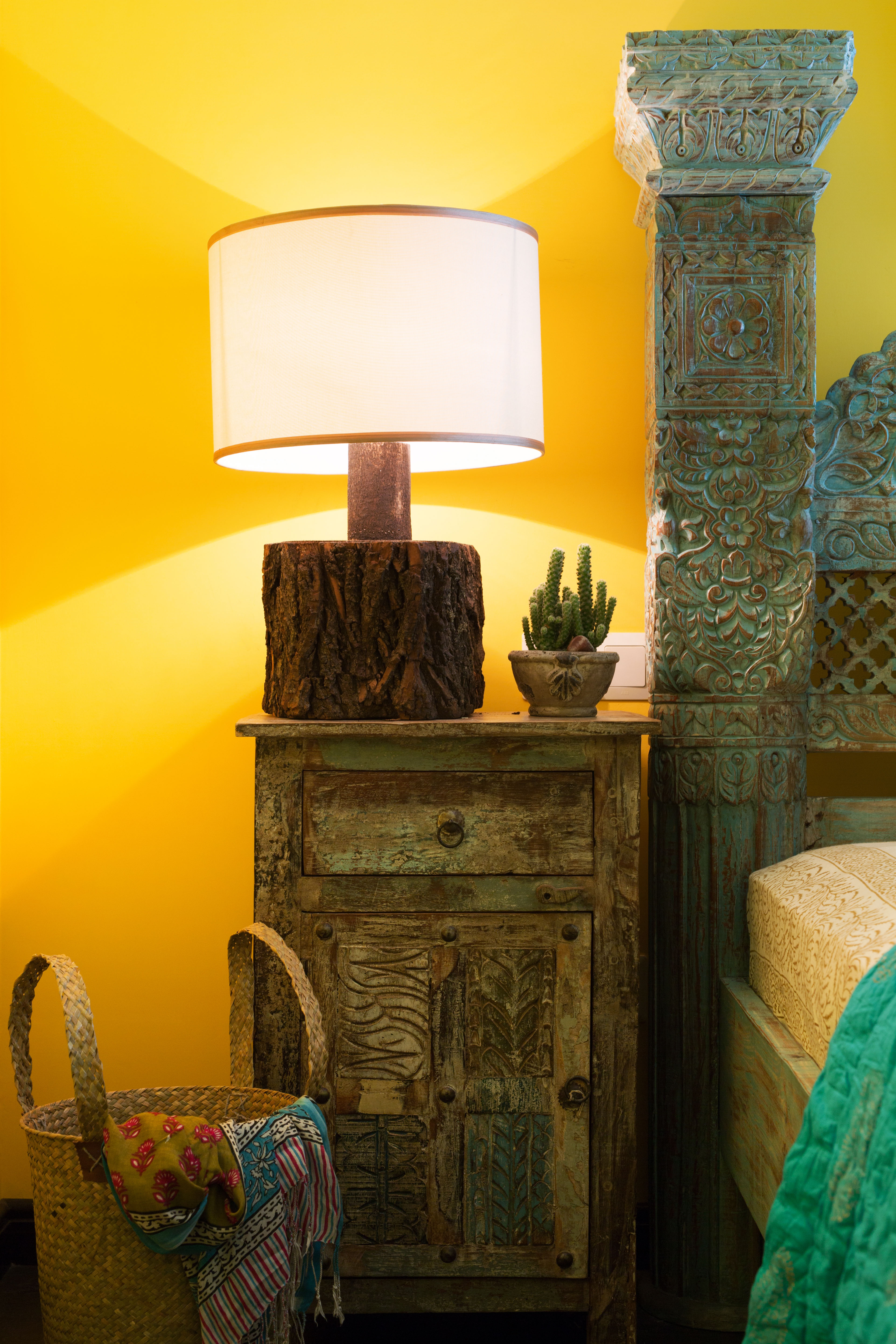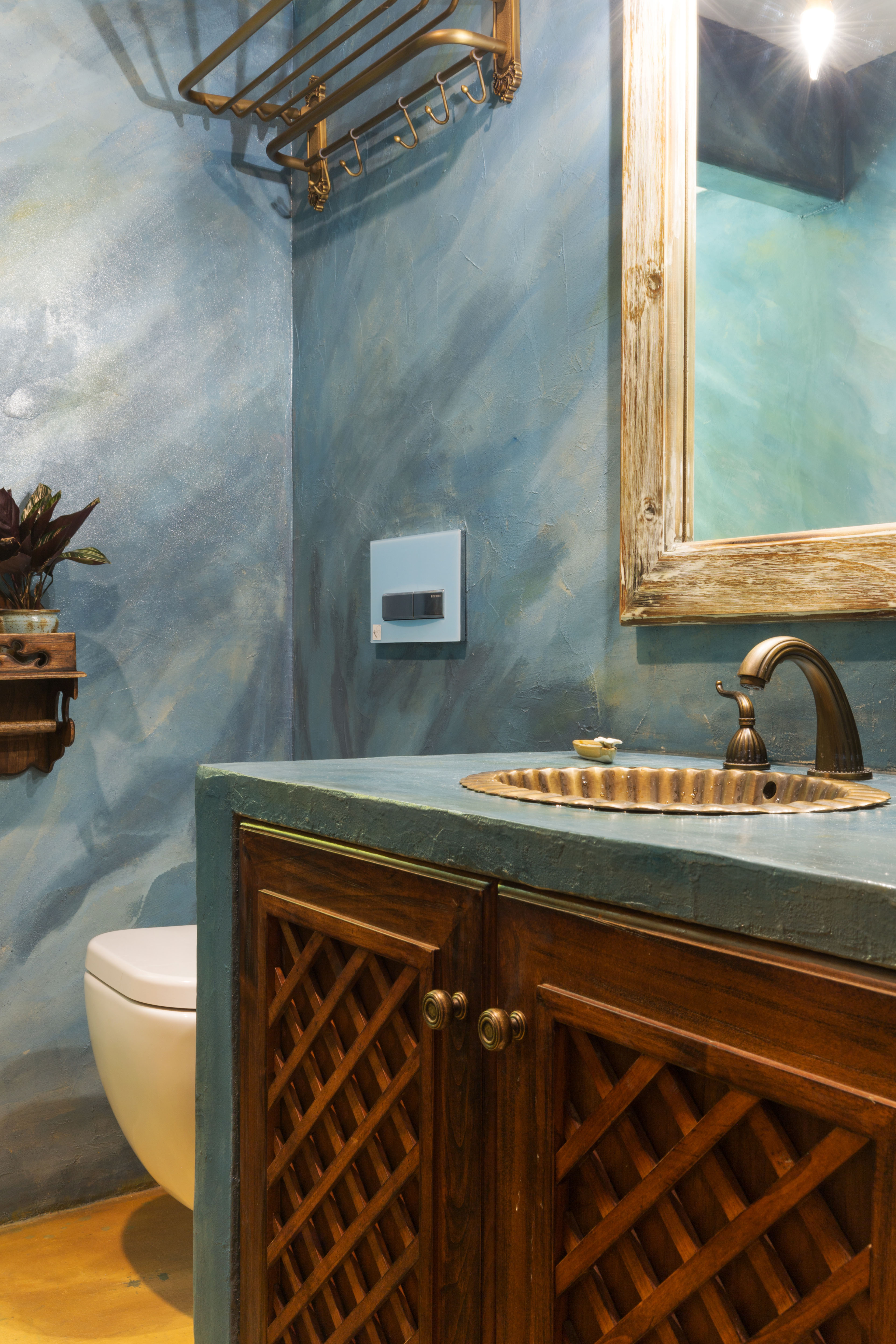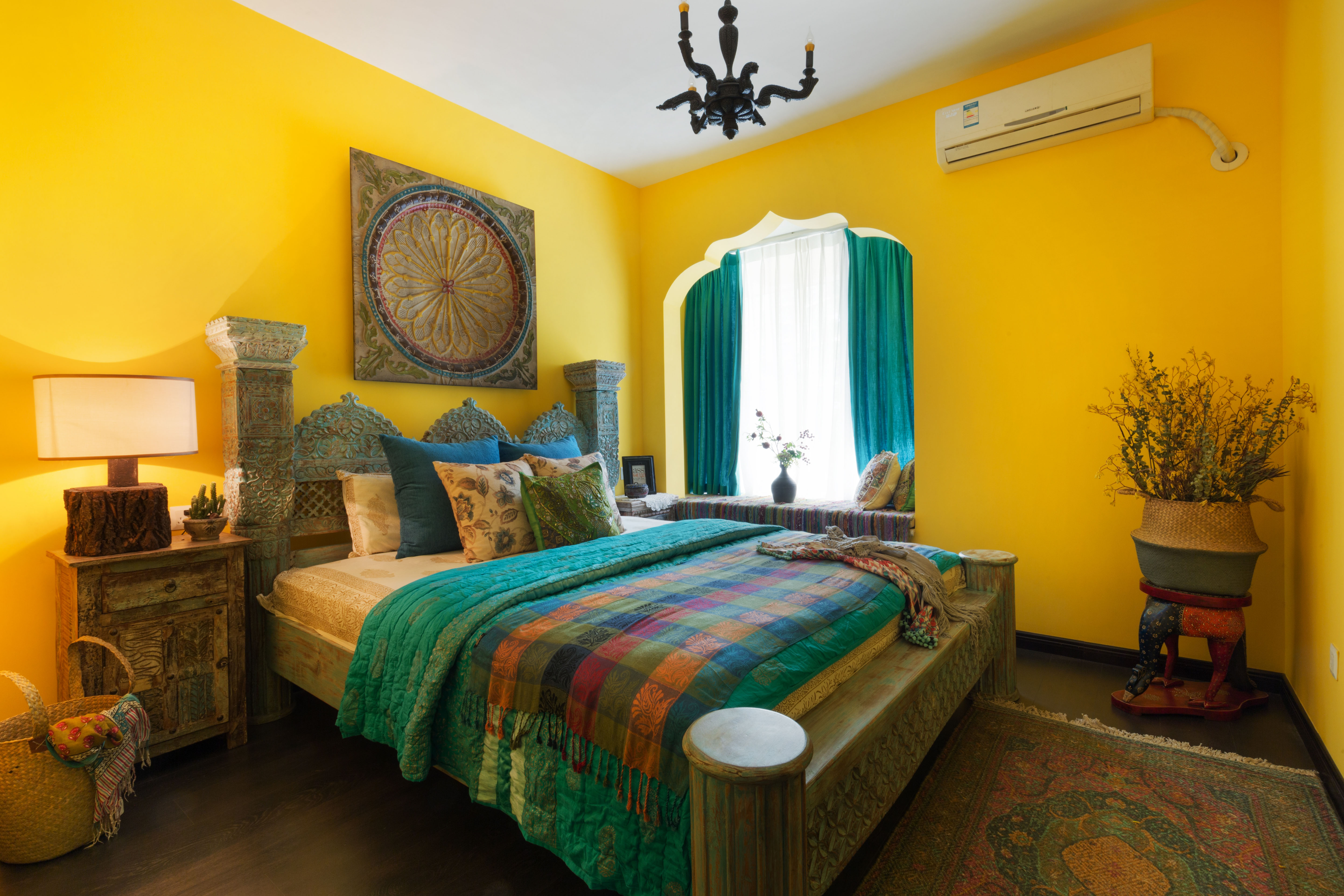 家具的选择上,多采用深褐色的做旧木纹,打造了摩洛哥的经典复古氛围,古朴又真挚。摆件精心挑选了独具异域风格的装饰,配上墙面的暖色,仿佛让人置身于卡萨布兰卡温暖宜人的午后