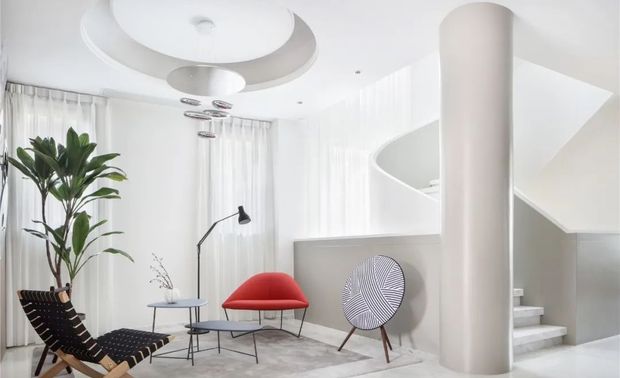 黑白搭配流畅曲线楼梯及半圆挑台向Karl Lagerfeld致敬