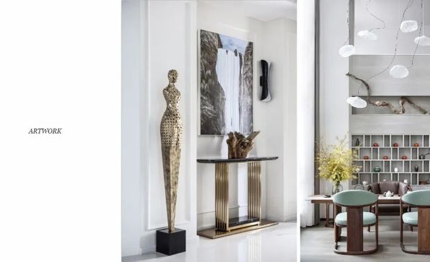 艺术是服务于生活的,而非高高在上的,我们在项目中为客户选择陈设艺术品,会考虑到所选陈设与业主个性气质、生活习惯的契合度。安放位置更会细致考量,使陈设艺术品在每一个局部的视觉点,都不会影响到业主的生活。