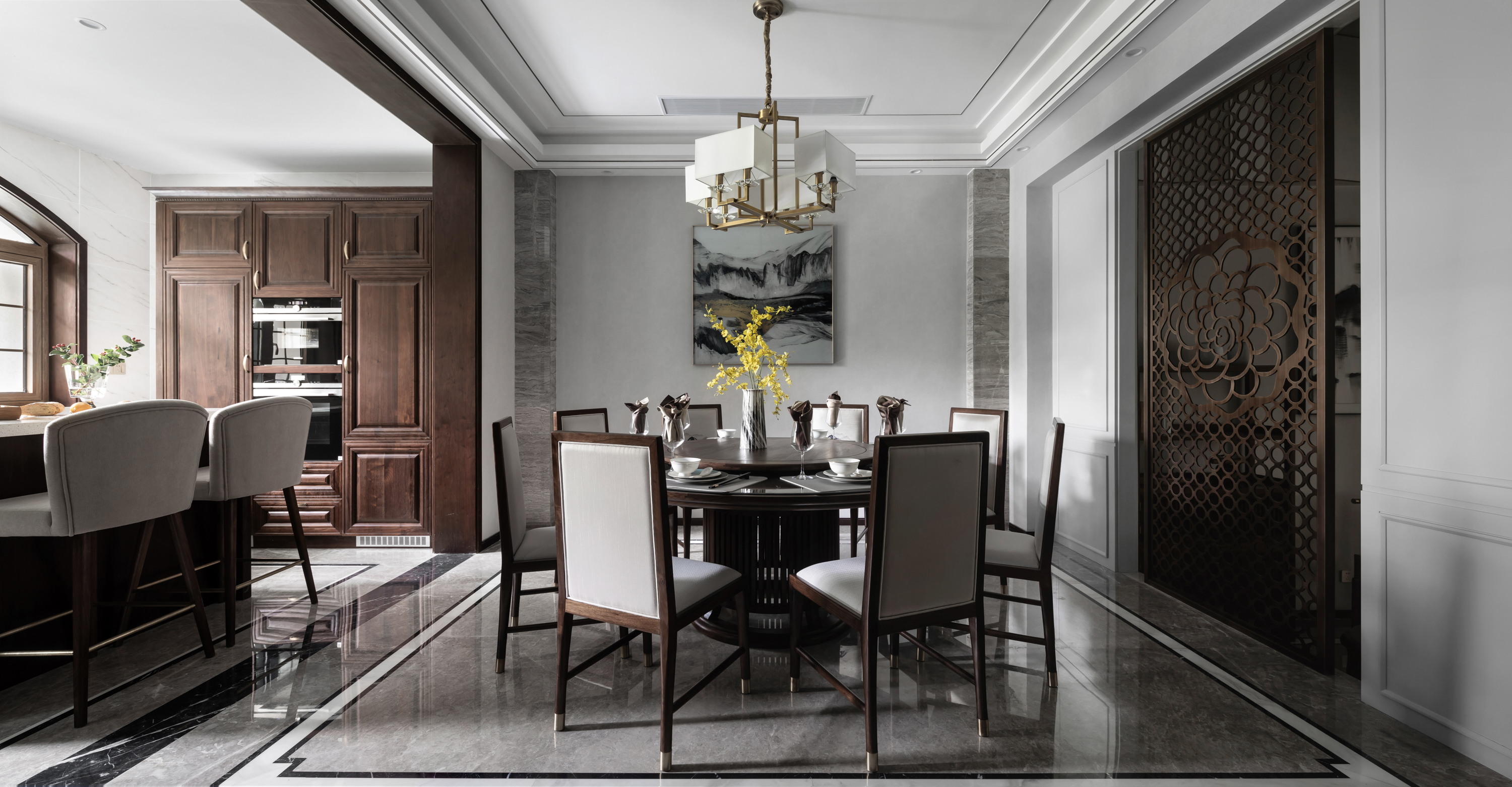 空间意境:将中式风格与高贵、现代、典雅相结合,演绎出新东方主义。
