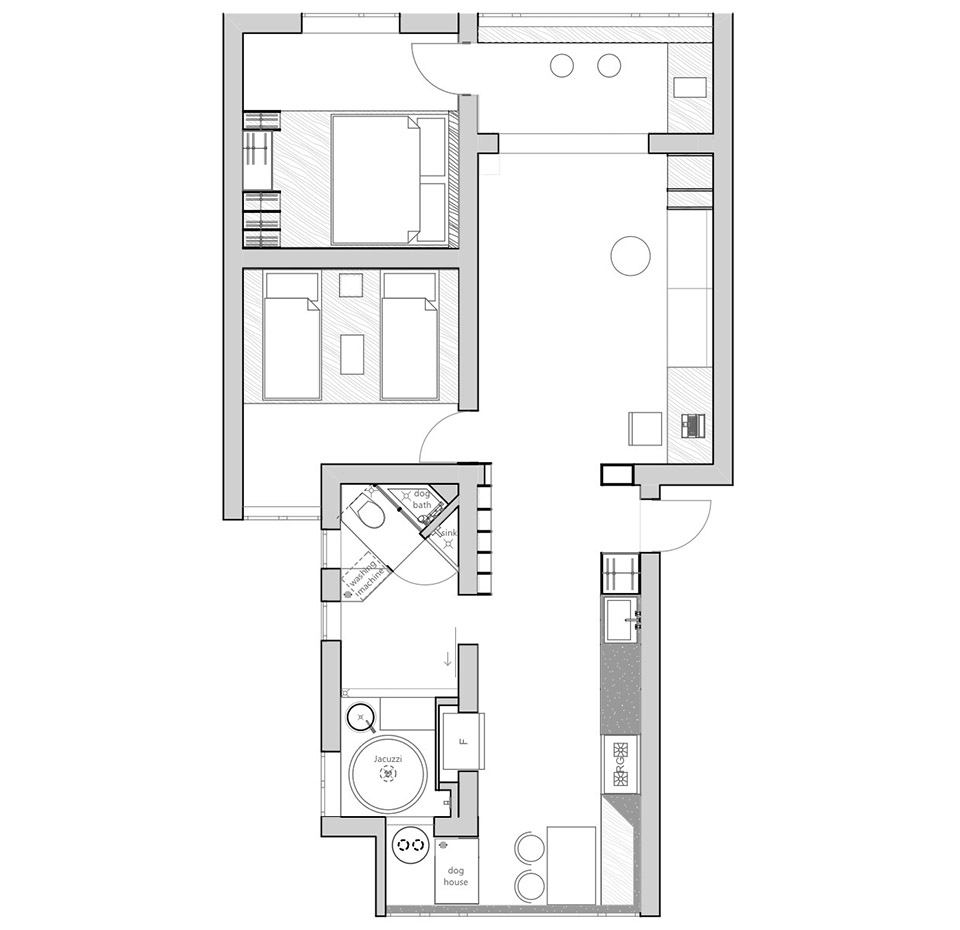 项目定位:如今,中国新建的高楼如雨后春笋般的出现,而老旧的房屋逐渐的被遗忘与淘汰,希望本案对于老公寓的改造提供一种参考,今后能有更多的设计师更好的发掘与发挥老房的改造价值。