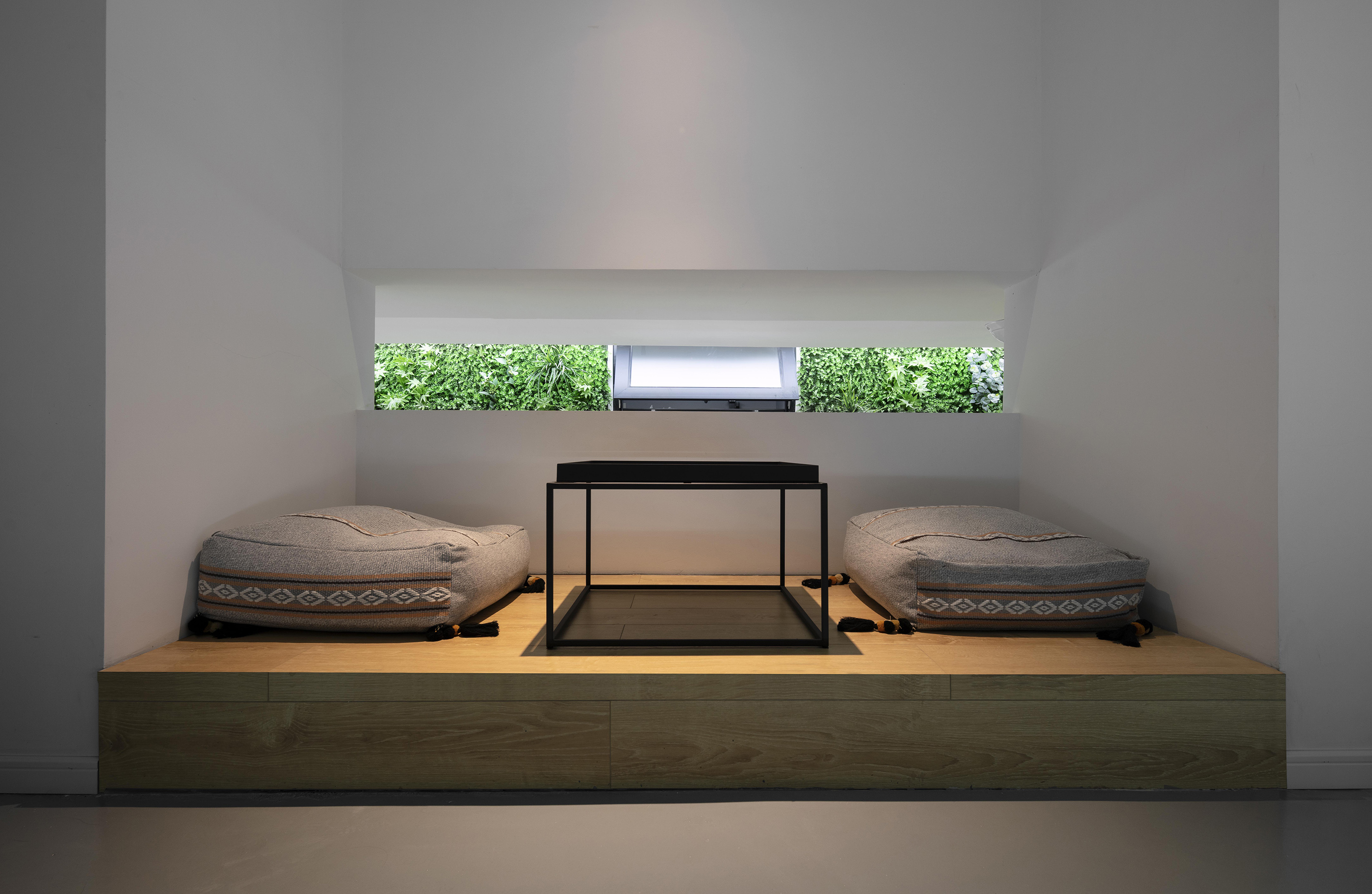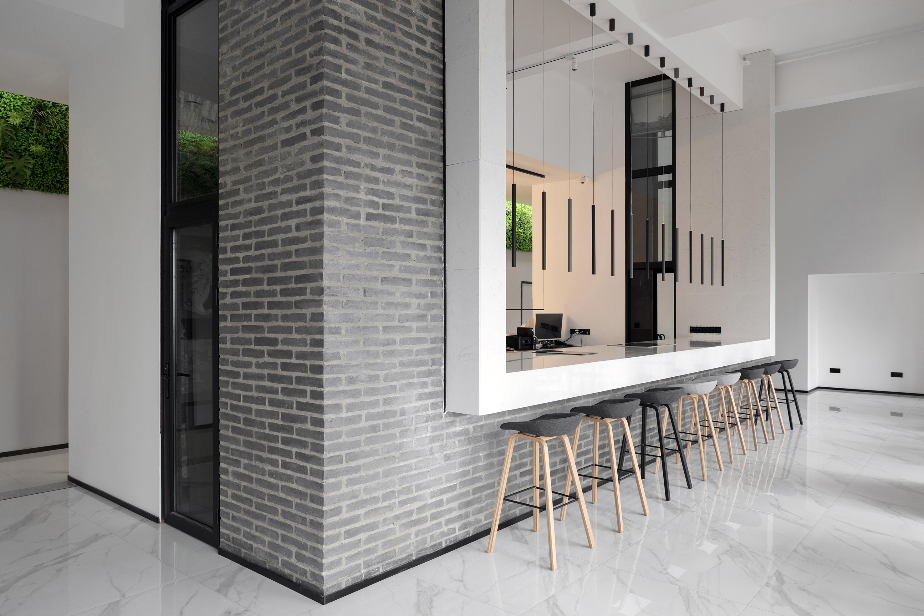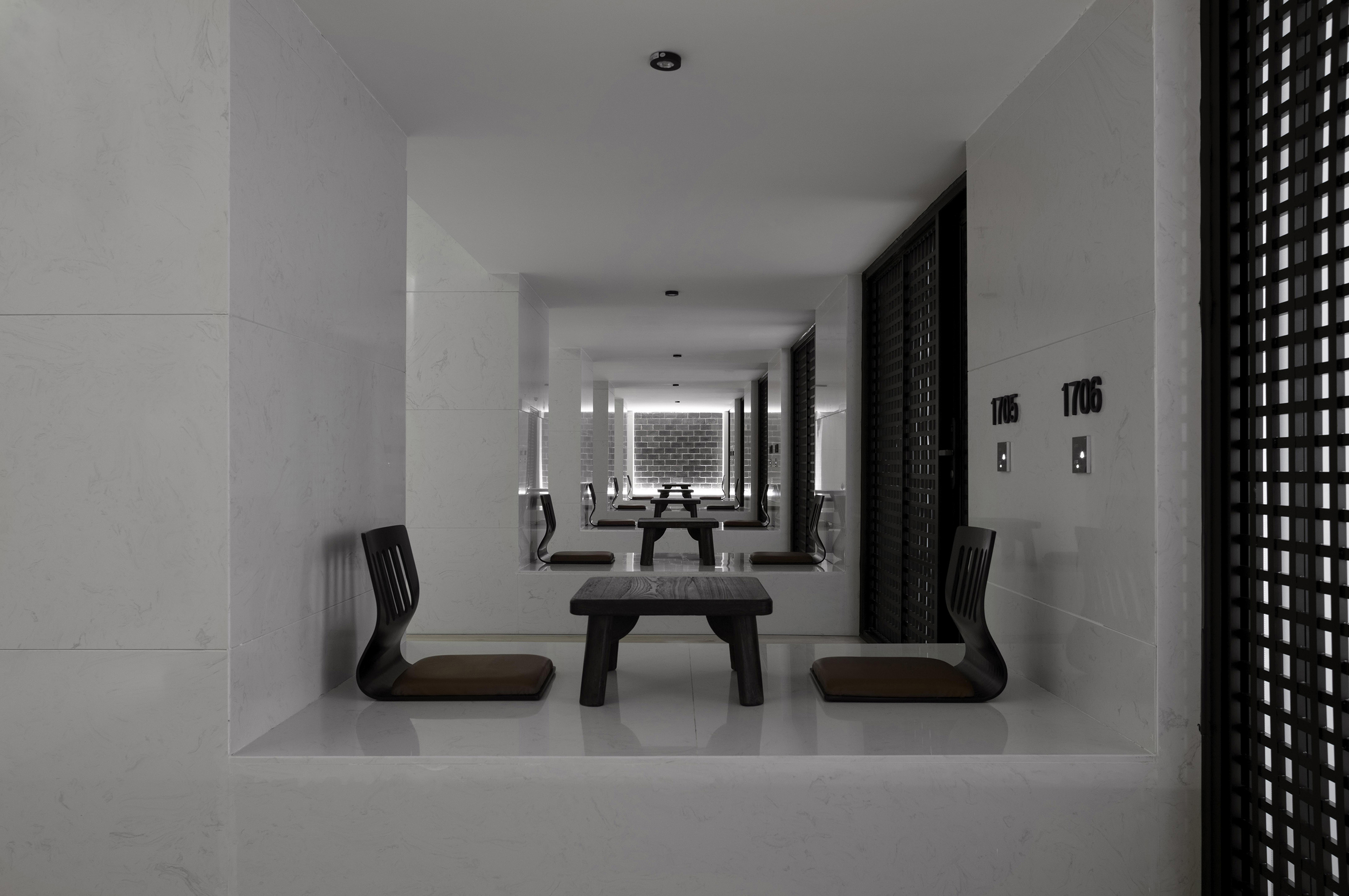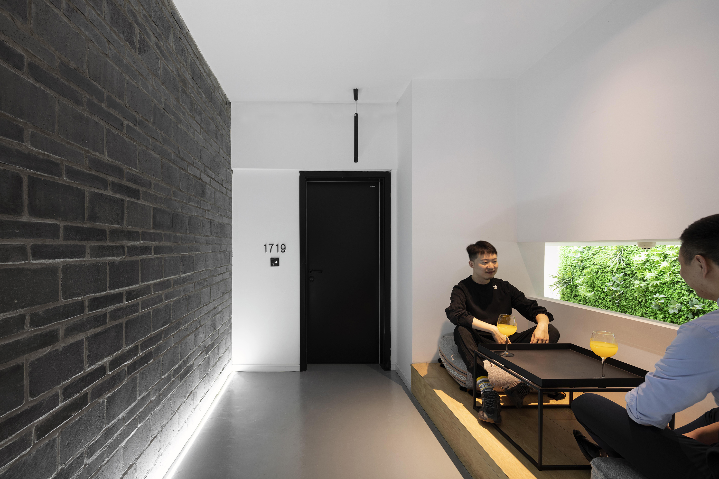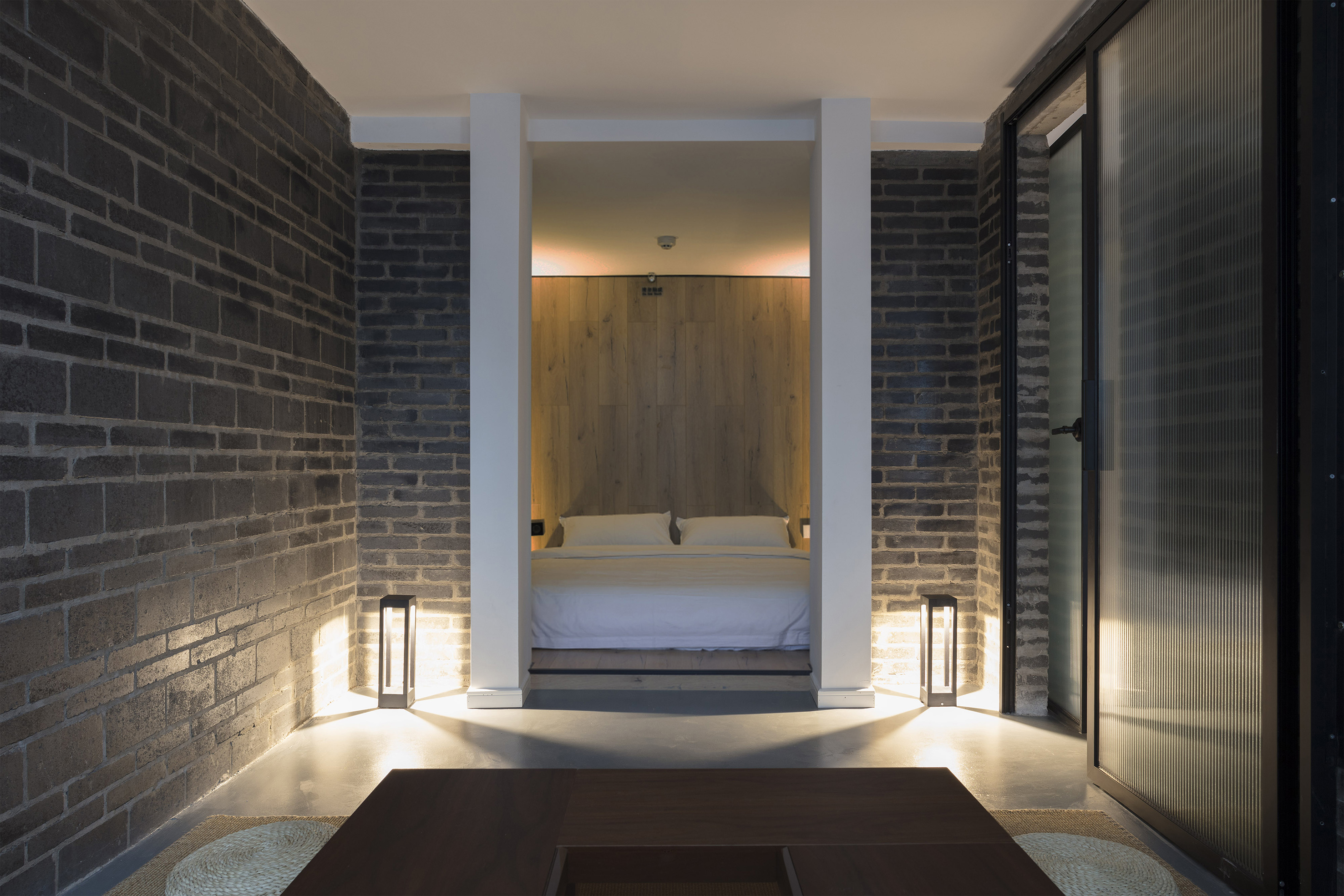 设计选材:为了体现出怀旧感,我们大胆的将青砖这种室内设计中不太常见的材质直接裸露在空间里,虽然是老旧的材料,但正因为没有过多的修饰,经过特意的布局,让它在酒店中显得并不突兀,反而以刚好的方式为空间增加层次。