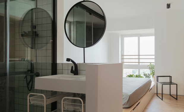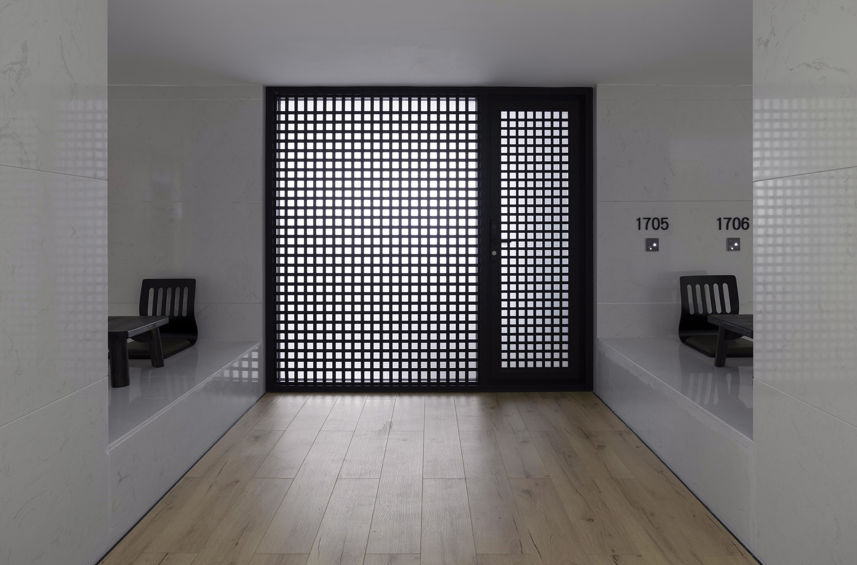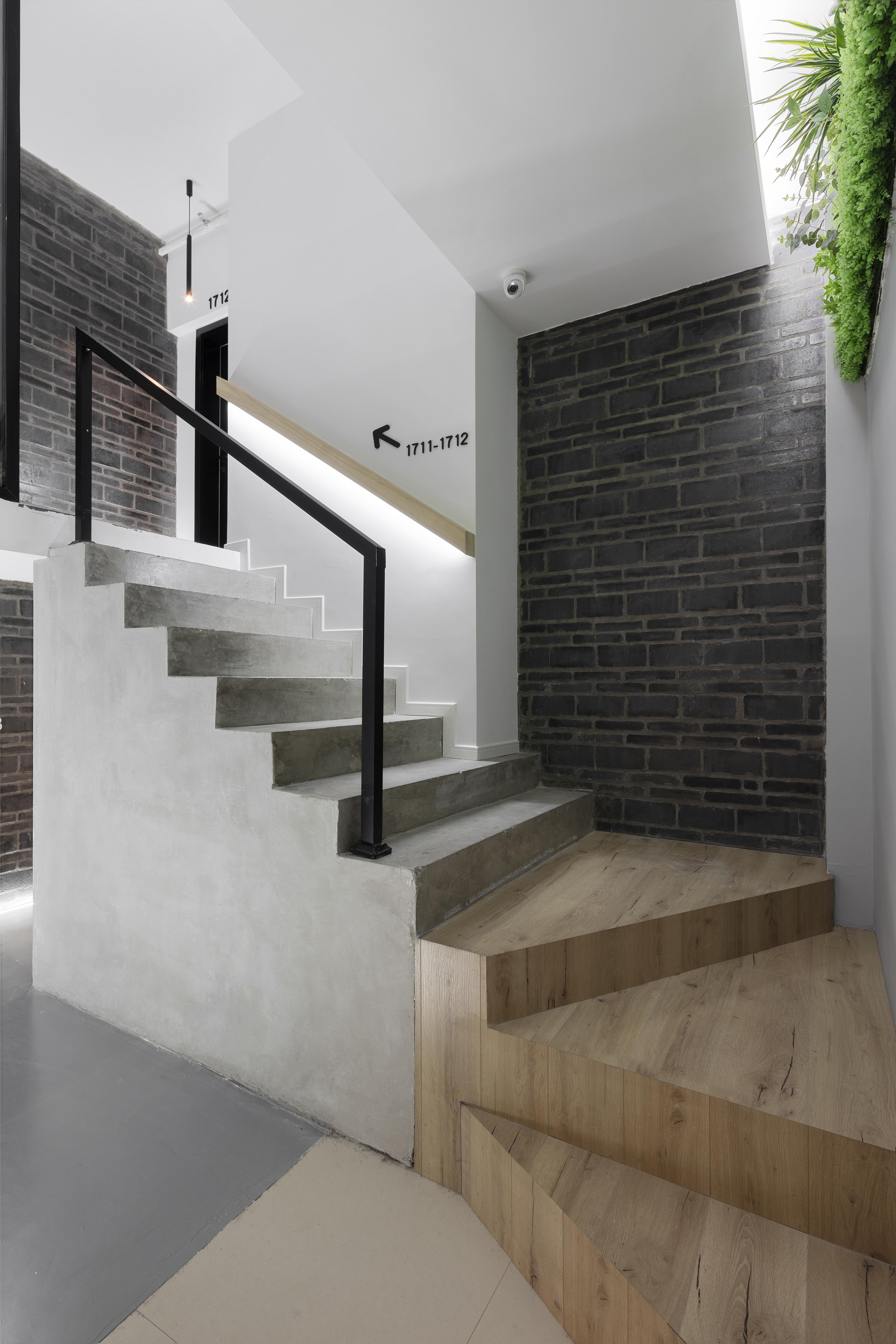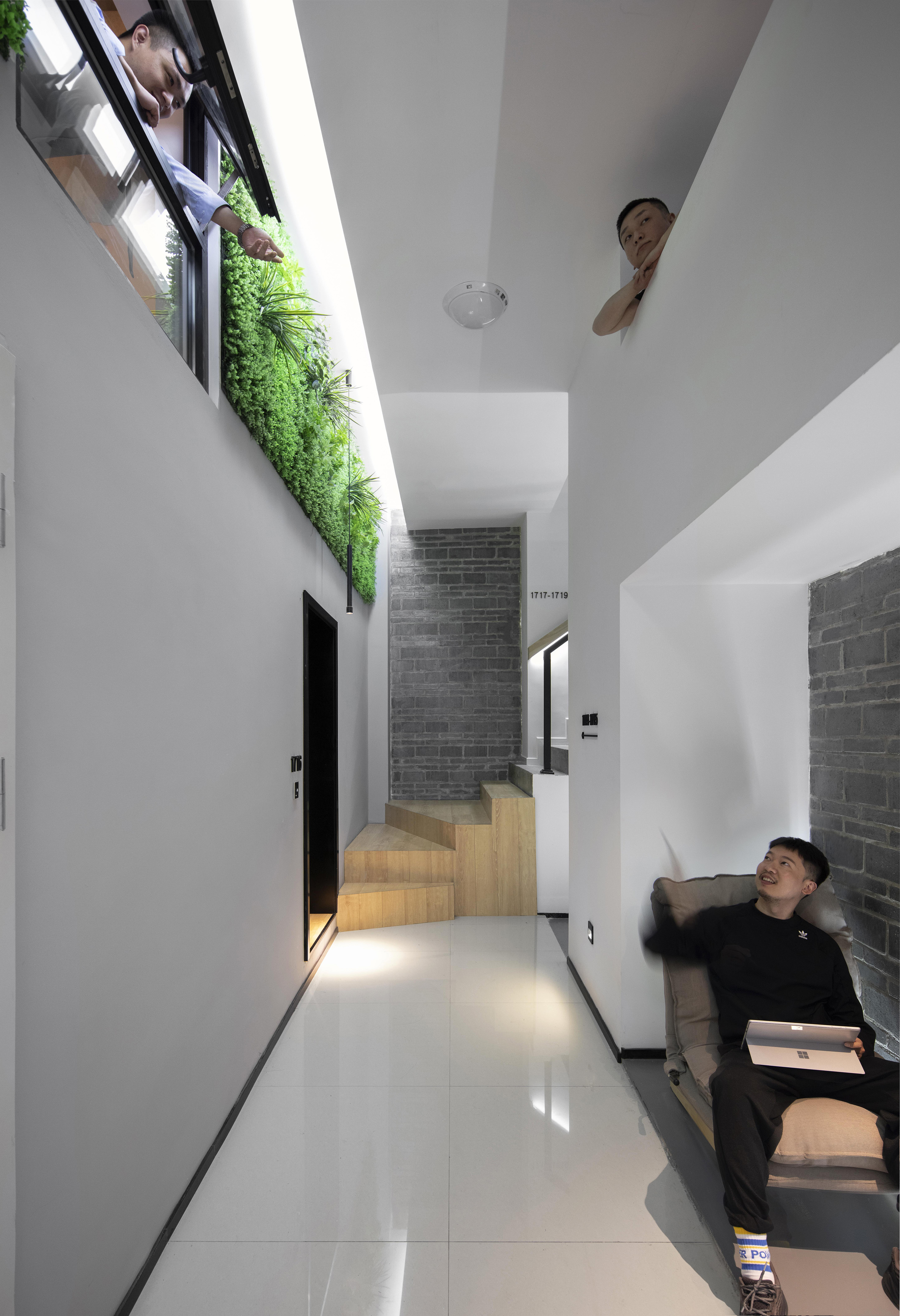 我们希望最大限度的使用自然光源,因此我们将公共区域的隔断做的更加的通透,并将酒店的主色调定为白色。可以更大限度的折射光源,使室内变得明亮。另外部分房间的门我们也改装成能够透光的形式,这样原本黑暗的走廊在白天自然光线照射下也变得更加的明亮。 -