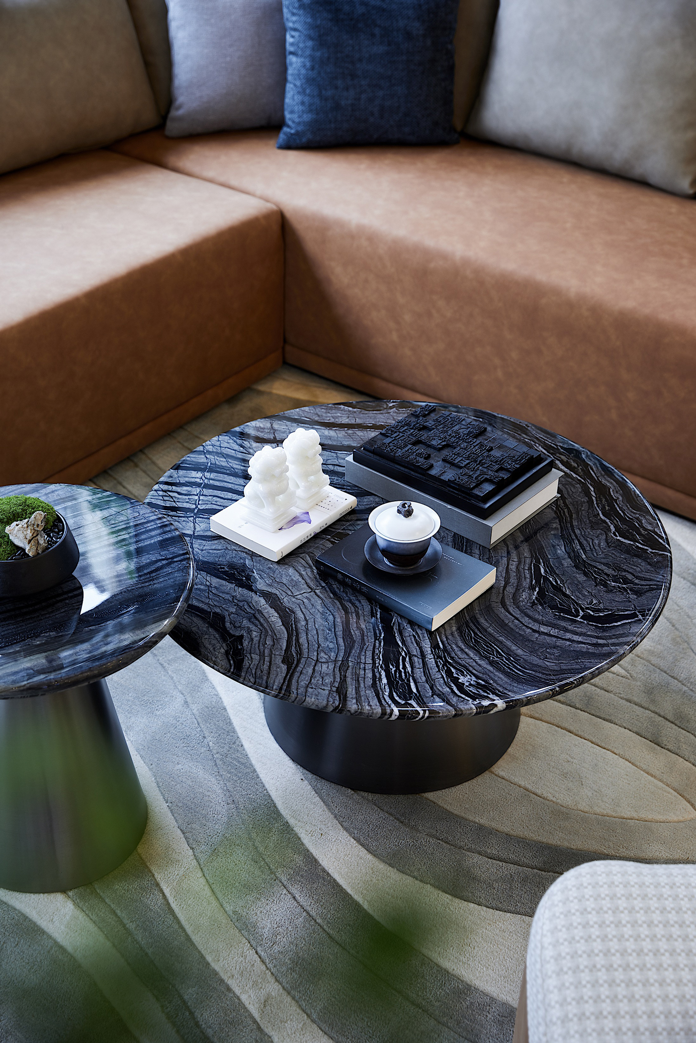 整体运用木饰面、石材、黑钢等材料,保证空间设计的低碳环保性,让整体氛围更贴近自然。