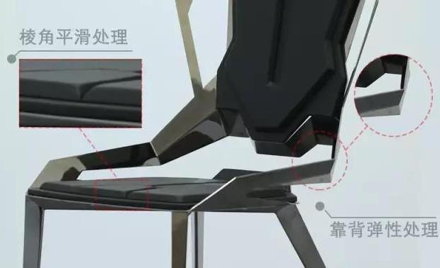 虽然都是直线造型,但在面与面的交合处却做了平滑处理,并且椅背弹性的设计使其能贴合人身体的移动,从而具体的使用中保证了舒适性。
