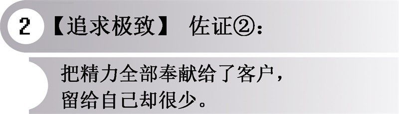 正是由于精益求精、竭尽全力的态度,所以把精力全部奉献给了客户,对自己却无心雕琢。