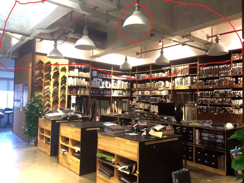 ▲顶面没有任何吊顶,消防及空调管线也未进行任何美化处理,灯光仅为照明使用。