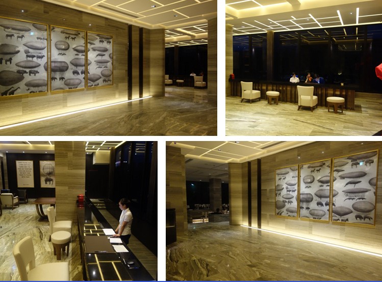 ▲有幸我们到了现场,得以一睹酒店真容。朱谦知与四位设计师的合影(很遗憾江欣宜设计师去了美国)。左起朱谦知先生、杨焕生先生、房元凯先生、唐忠汉先生、张祥镐先生。