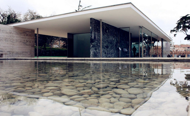▲看到密斯凡德罗设计的——巴塞罗国际博览会德国馆,你便知道这是现代主义建筑。