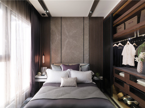 单观卧房的简约元素,锐利线条因木作而温柔、低沉色彩因窗照而优雅无比,床铺无须闪耀华丽,只要能让你无忧倾躺、哄你入眠。