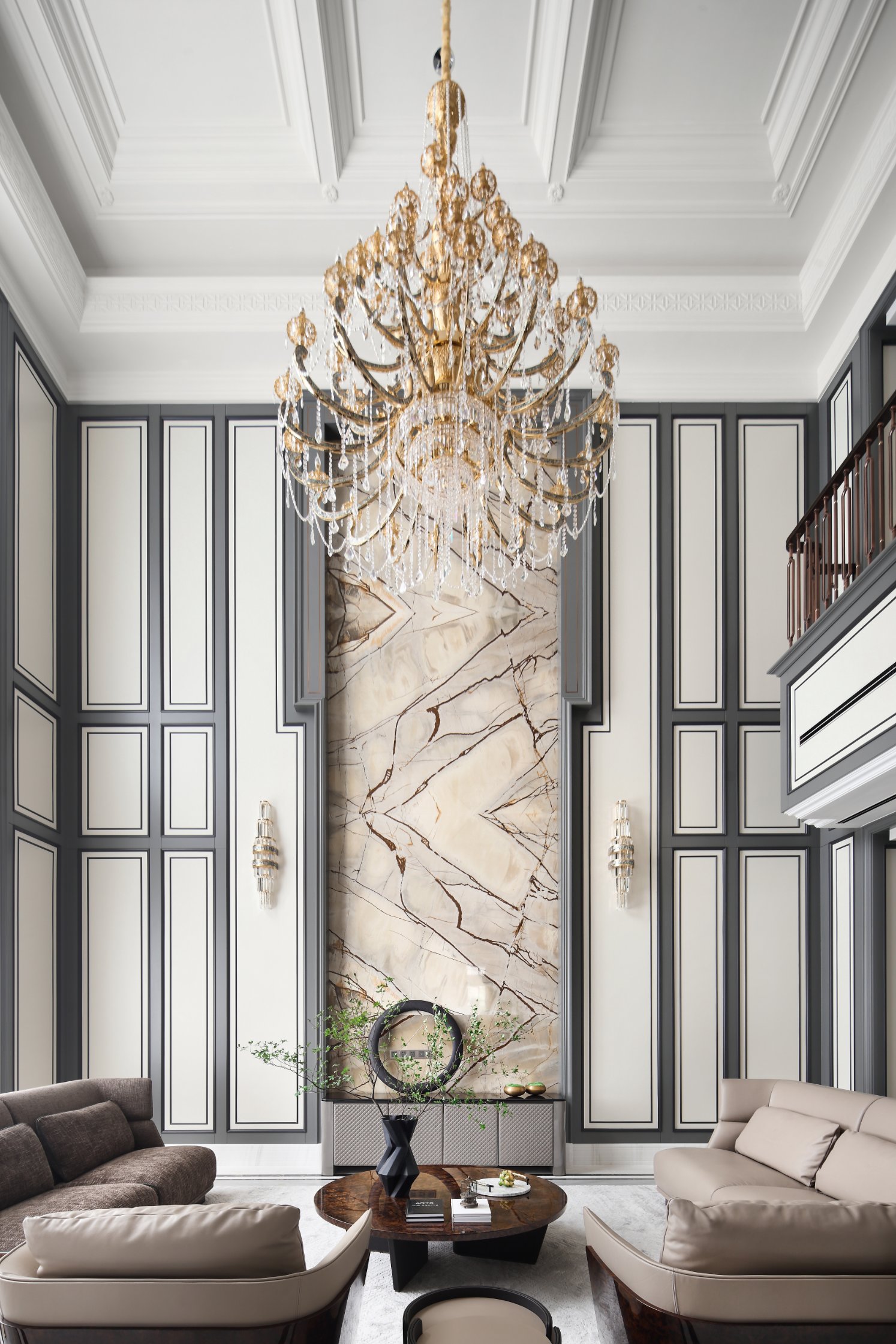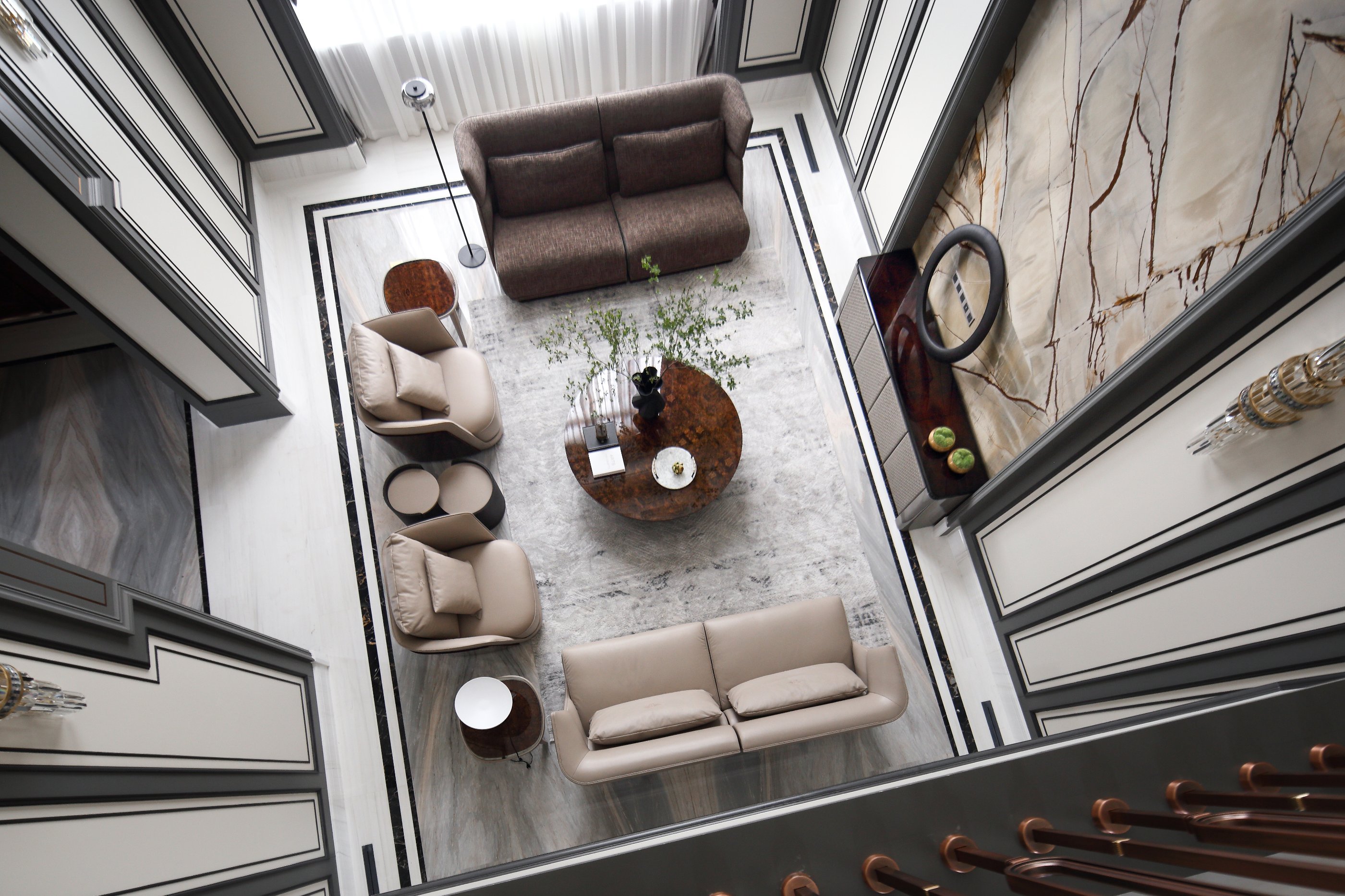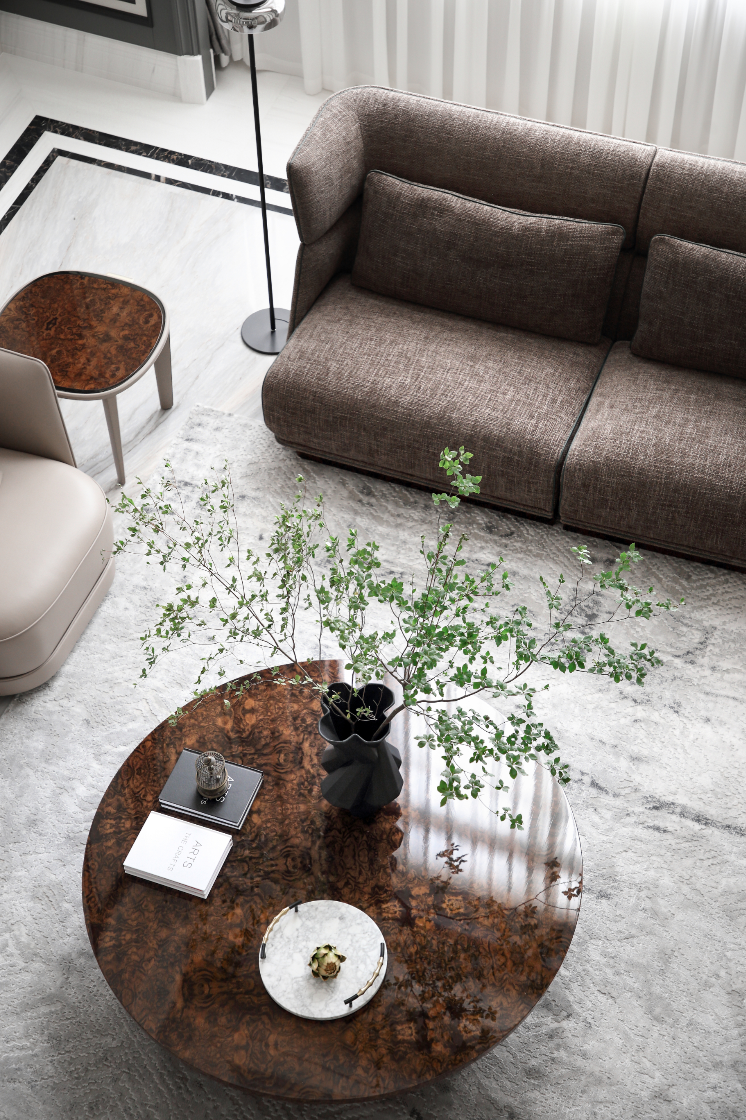 设计选材:本案以稳重的大地色为基调,木作构筑空间的调性。大理石、金属、木质、皮料、织物......不同材料汇集融合,让人以无限遐想去探寻。
