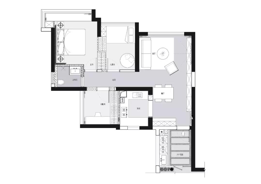 空间布局:1.入户花园不能封进室内,于是设计入户格栅门。不仅起到空间缓冲,还多出一个洗衣房。2.主卧和儿童房的墙体拆除,做成2个房间都可以用的交错衣柜,提升使用率和收纳能力。3.将其中一间改造成衣帽间兼书房。