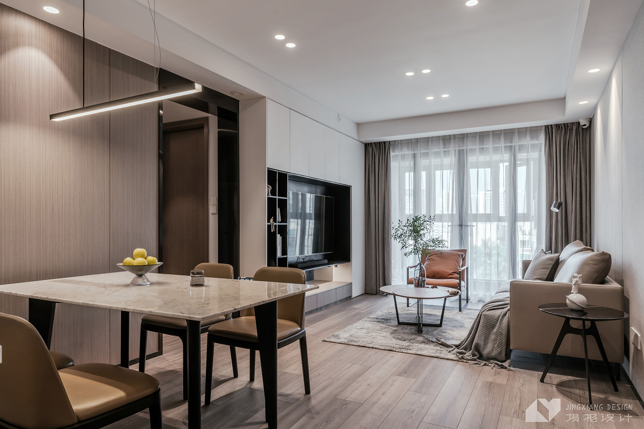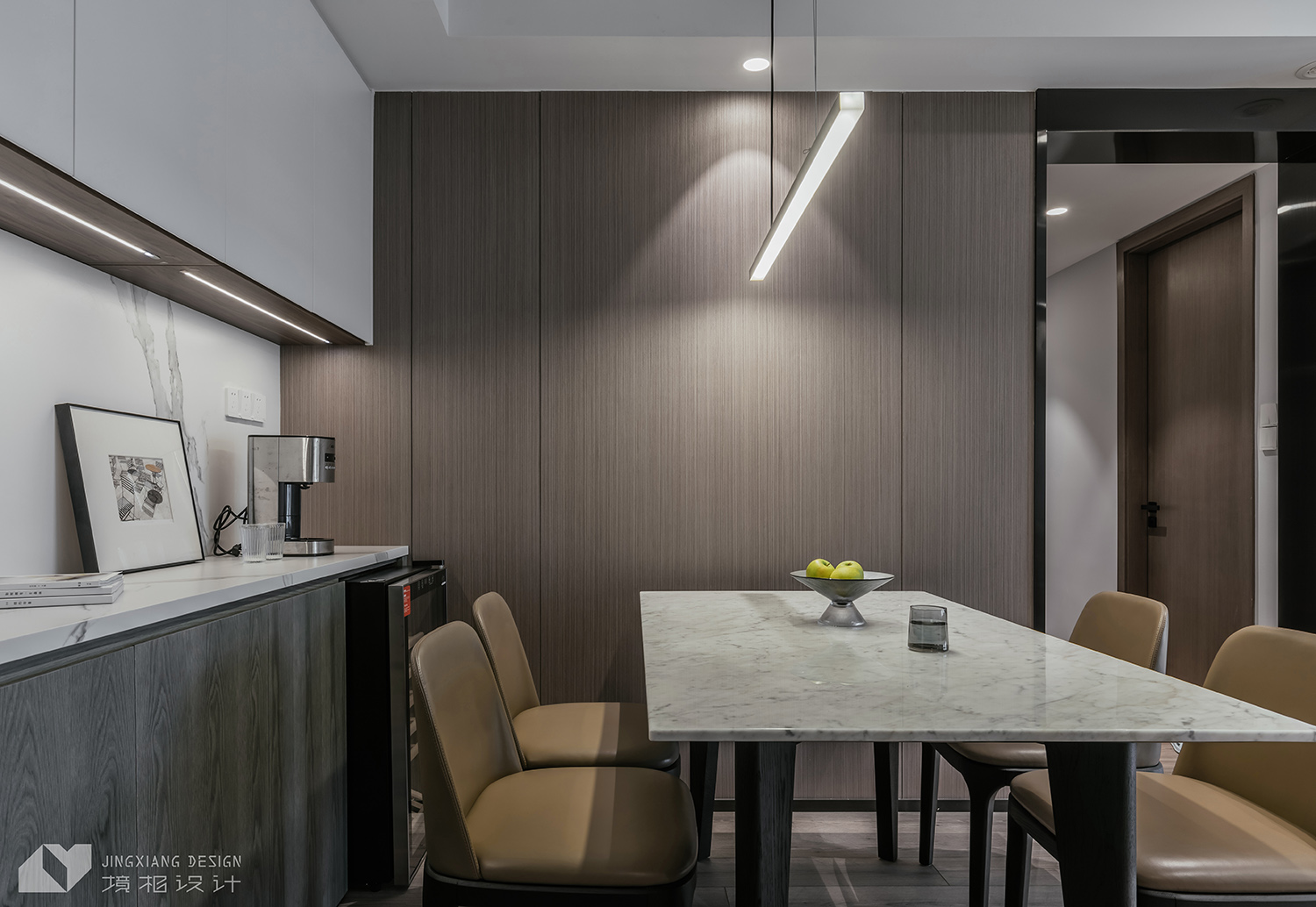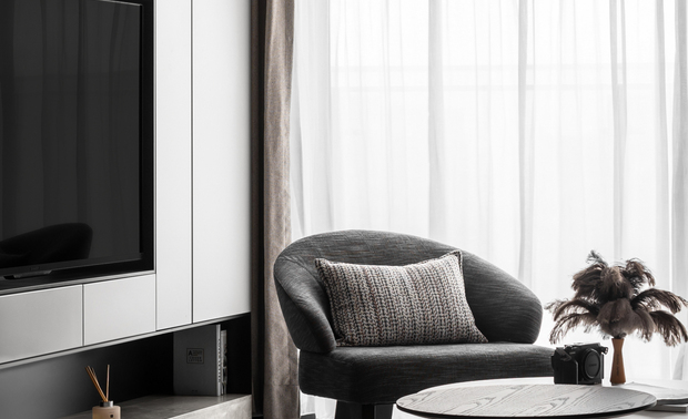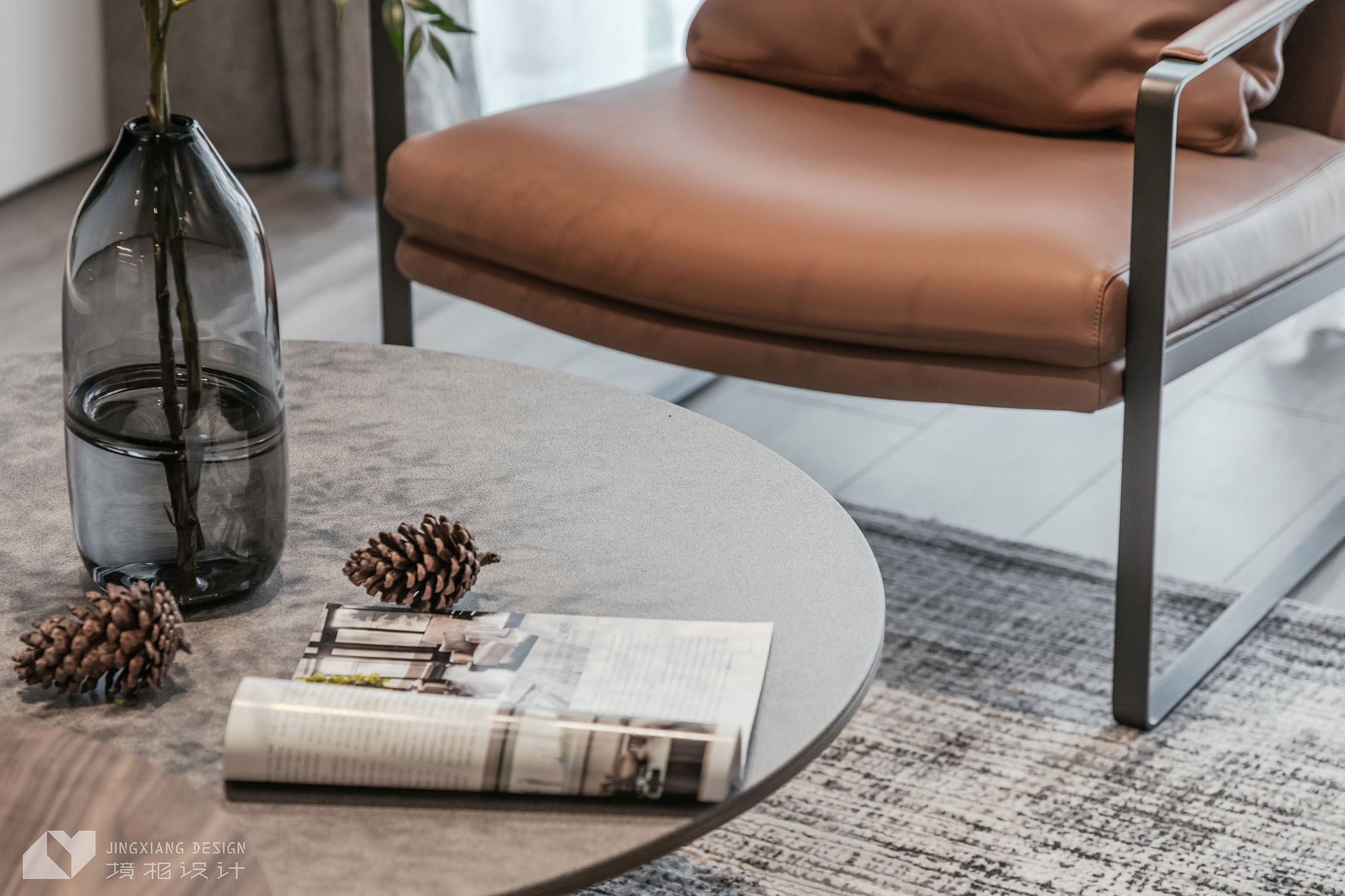 以简洁干净为主的空间基调,皮质、大理石、木质等材质的搭配经过精妙的设计,便于日常的打理,也能融入空间,成就空间。