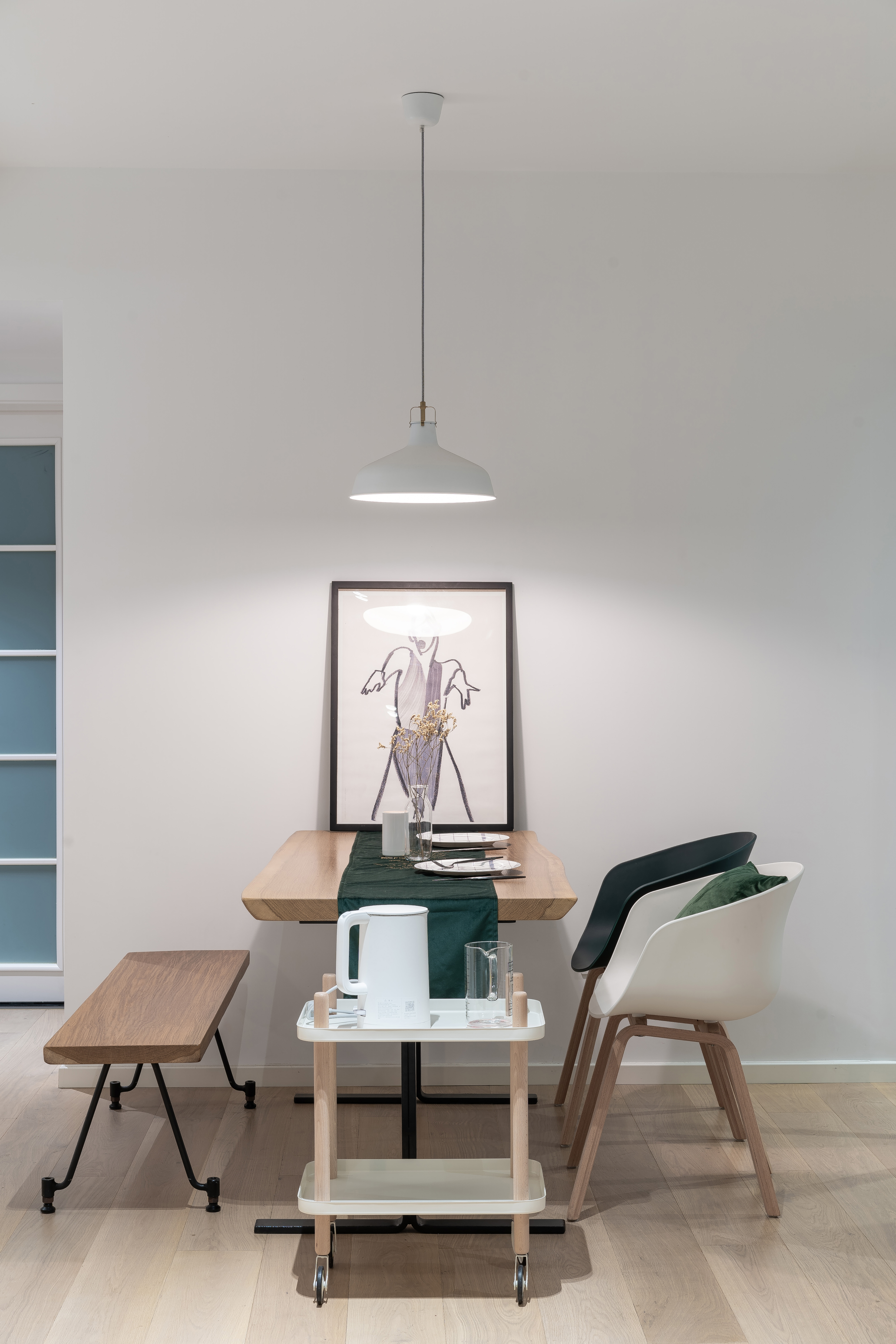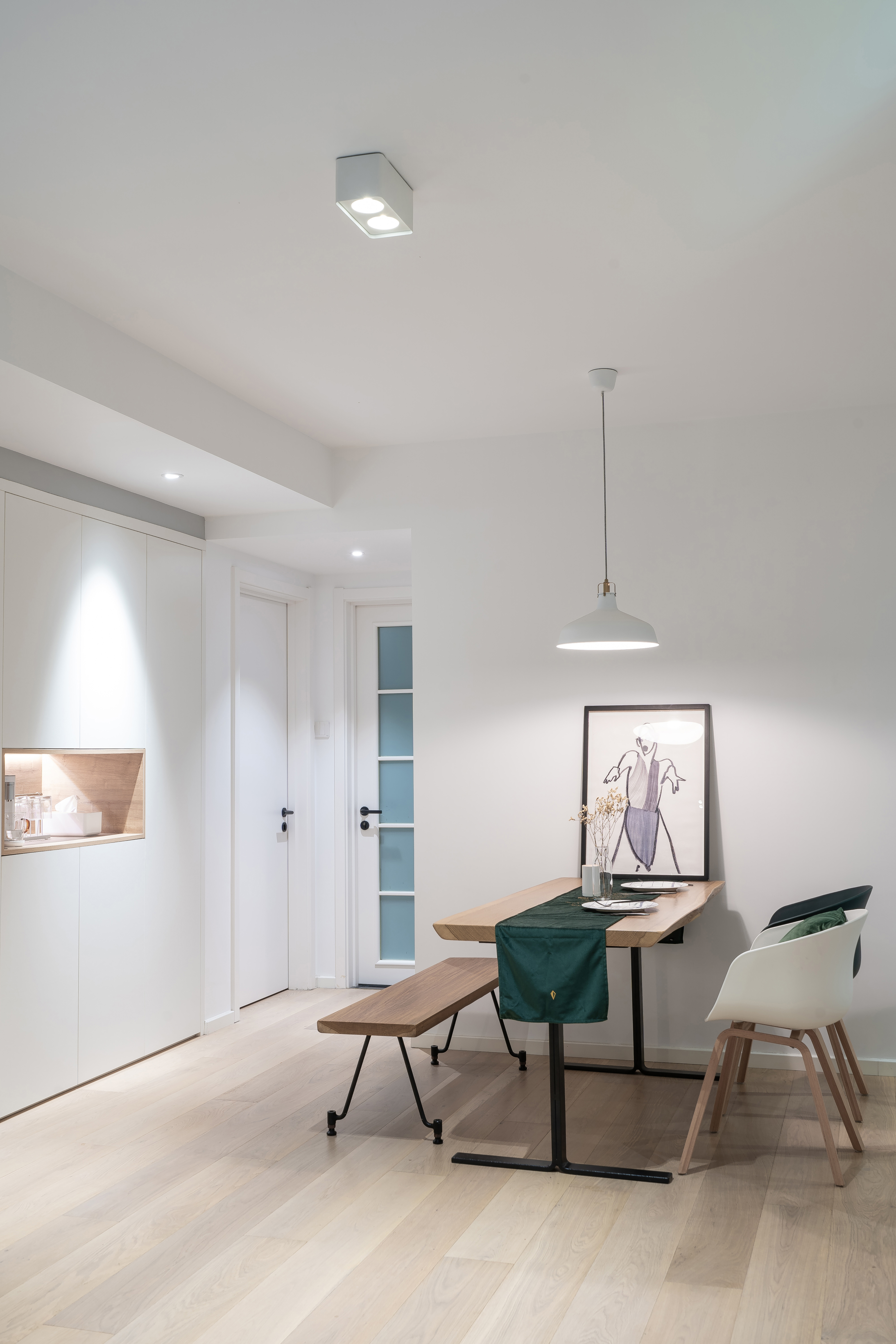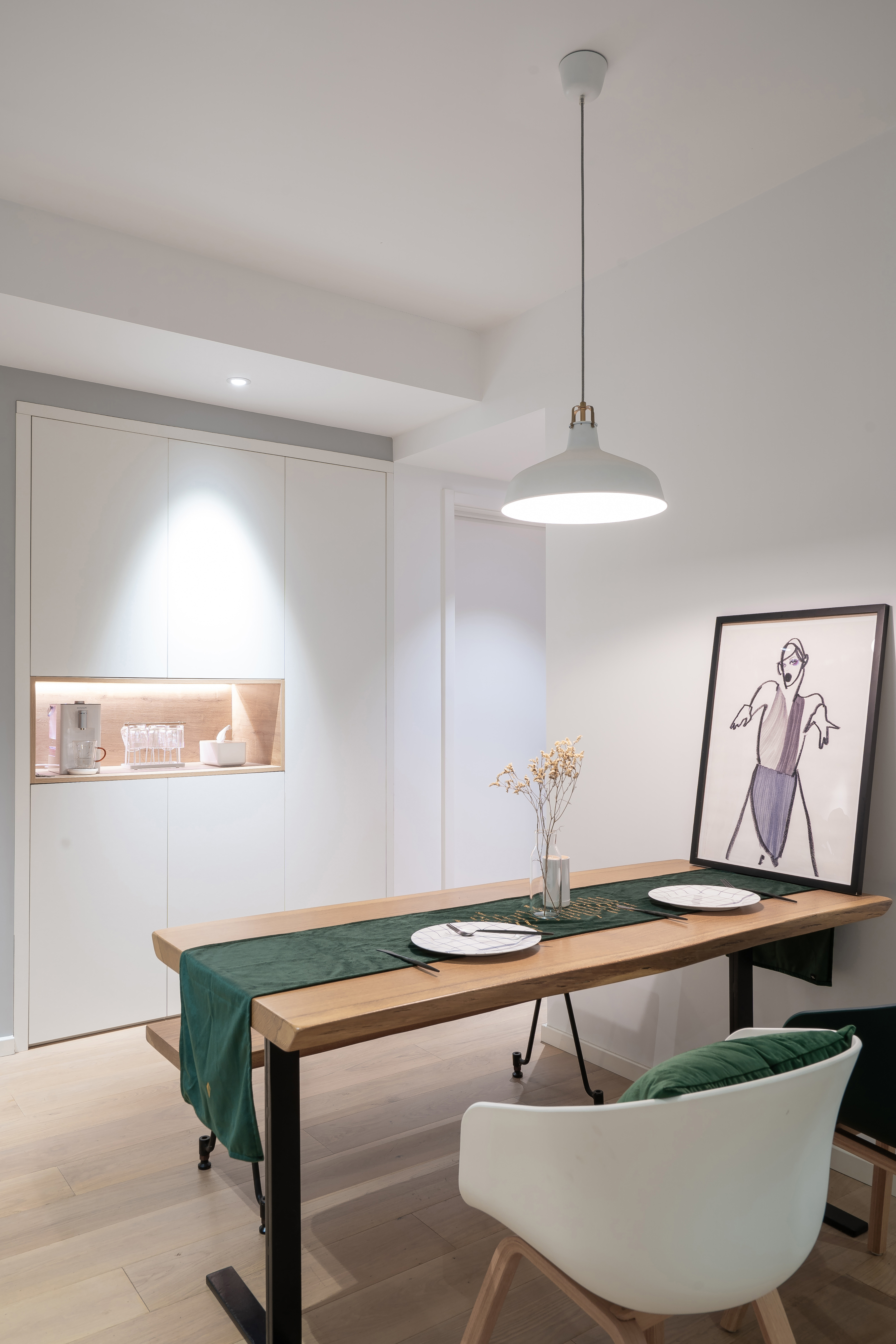 原户型餐厅对面是个小储物间,我们将储物间缩小,改为一个40公分深左右的餐边柜。