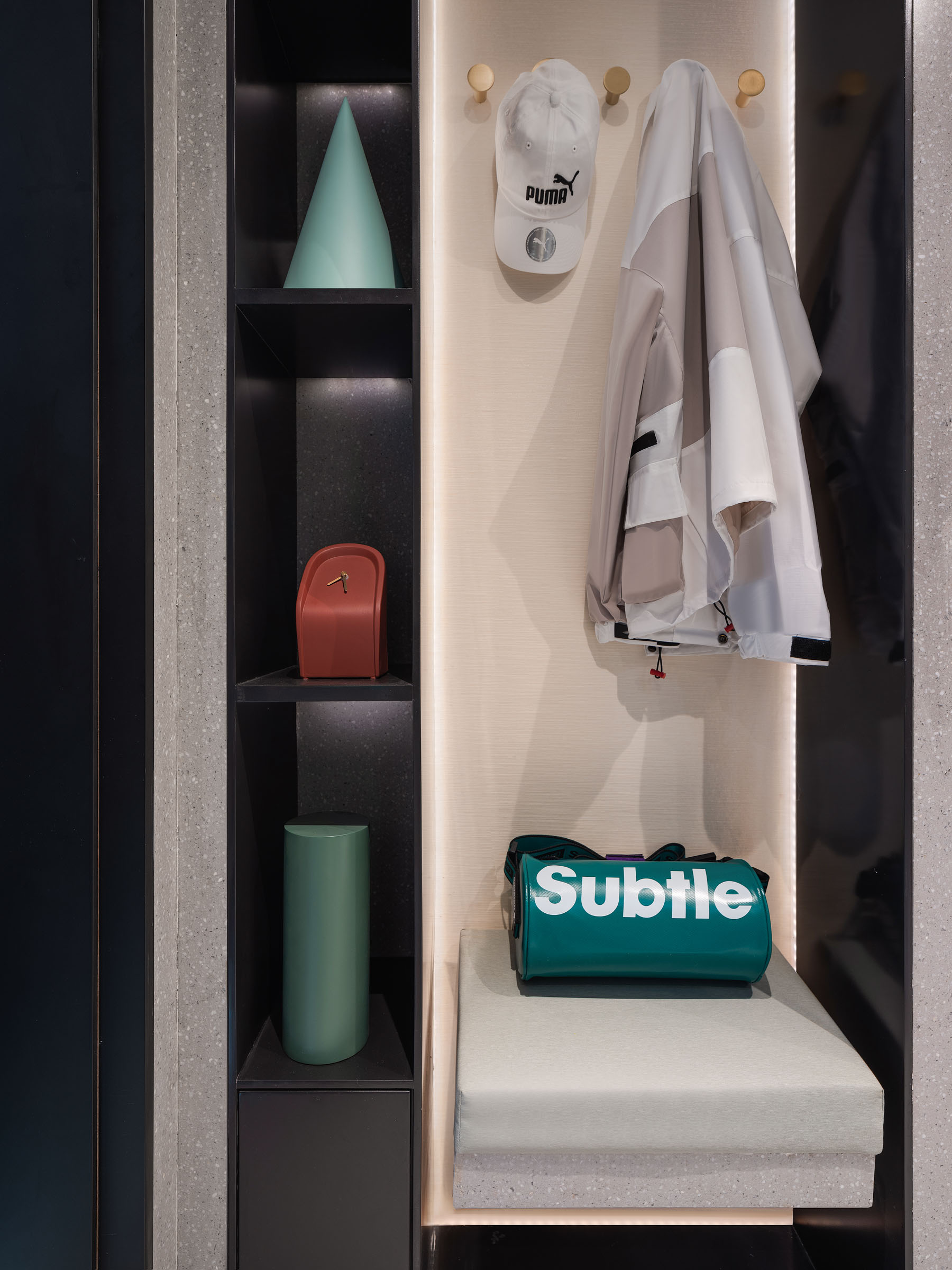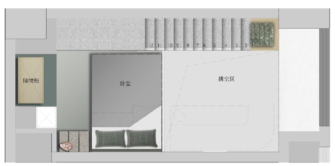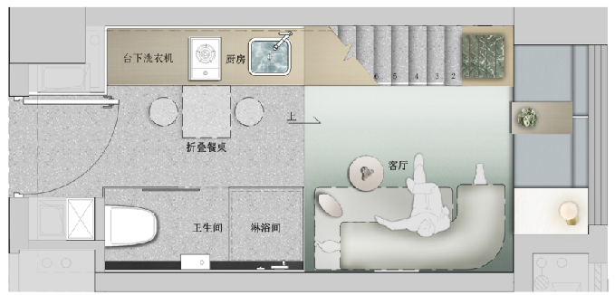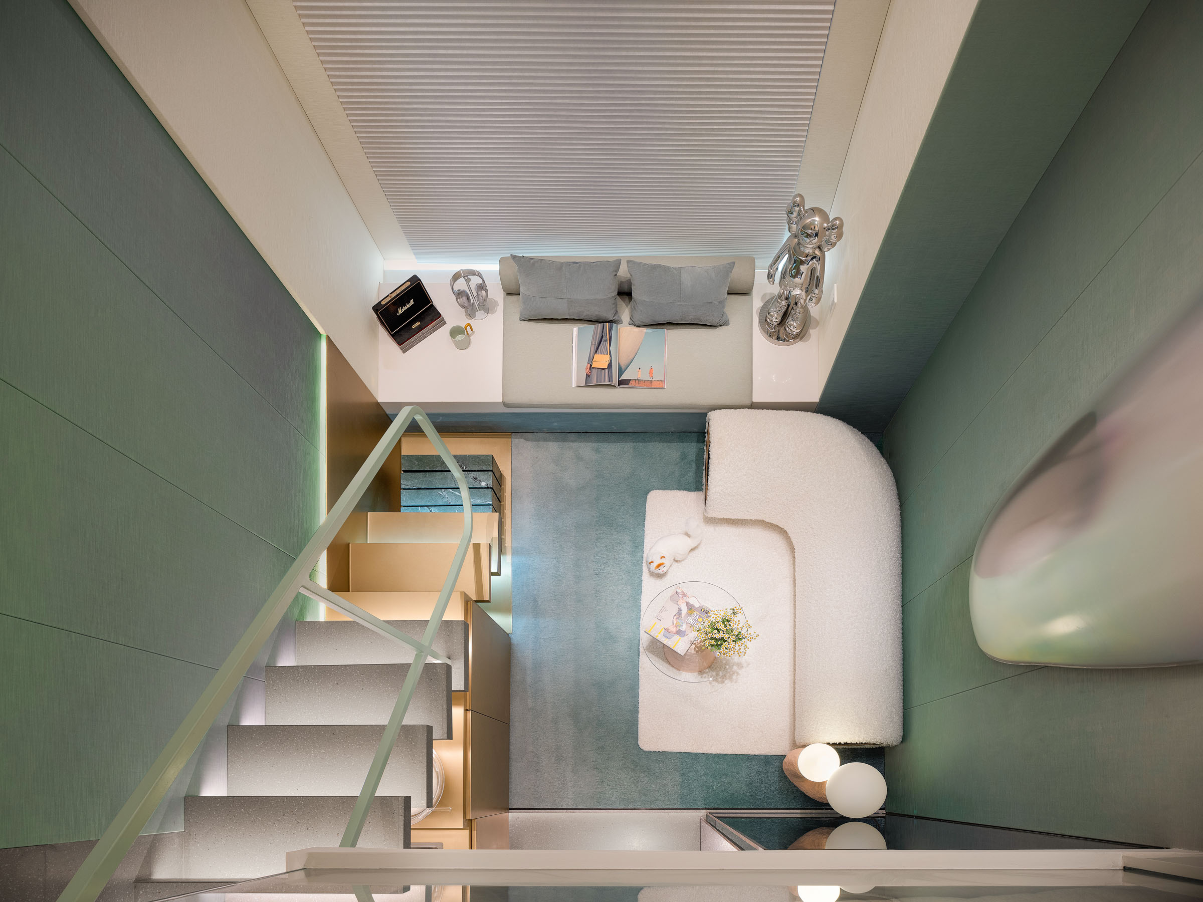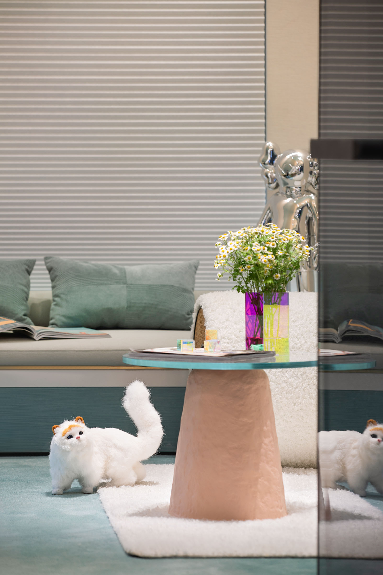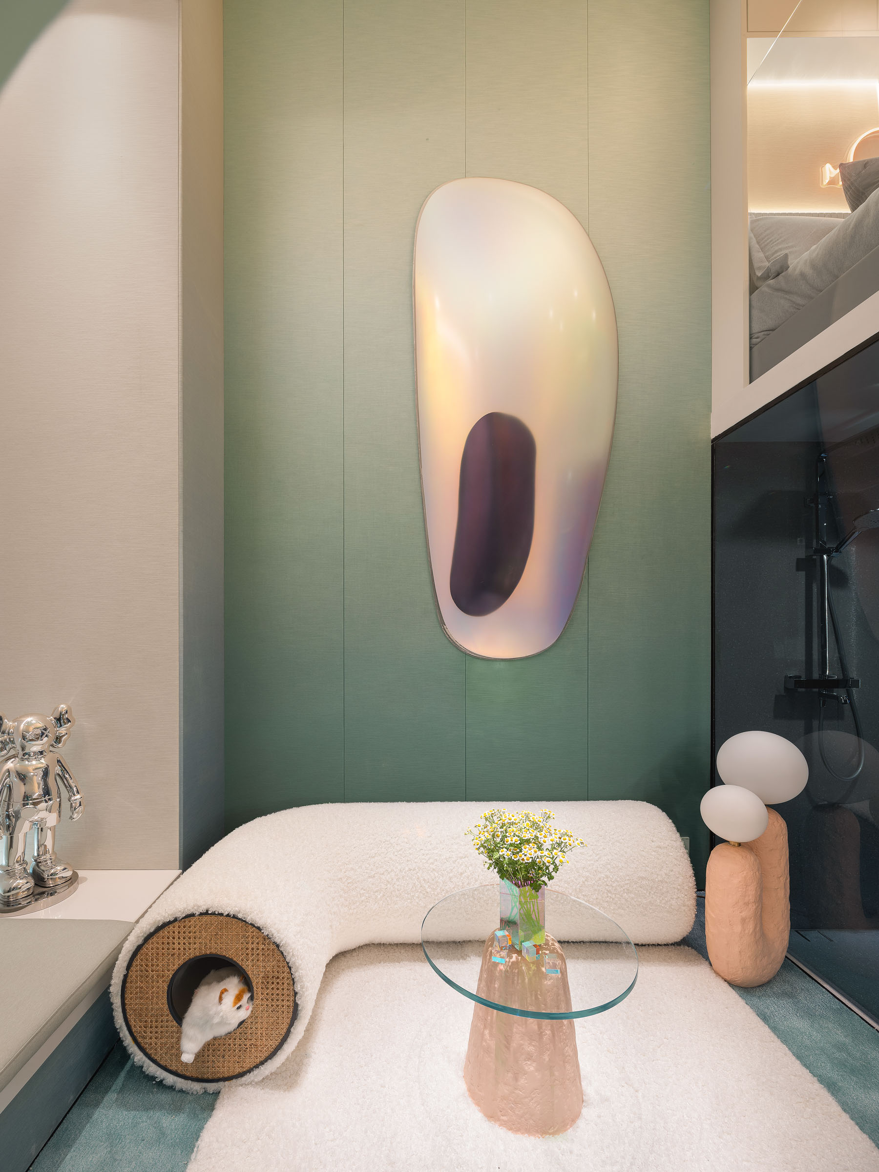 项目定位:设计师着眼青年人的需求——减轻焦虑,镇静人心。打造一种风平浪静般的浪漫。互联网激发出各类圈层文化和网红职业,因而他们的居住需求在很多时候也往往带有自身独特的个性与时代印迹。他们愿意专注于某些领域,如插花直播或任何可以进一步施展才华和丰富经历的事。