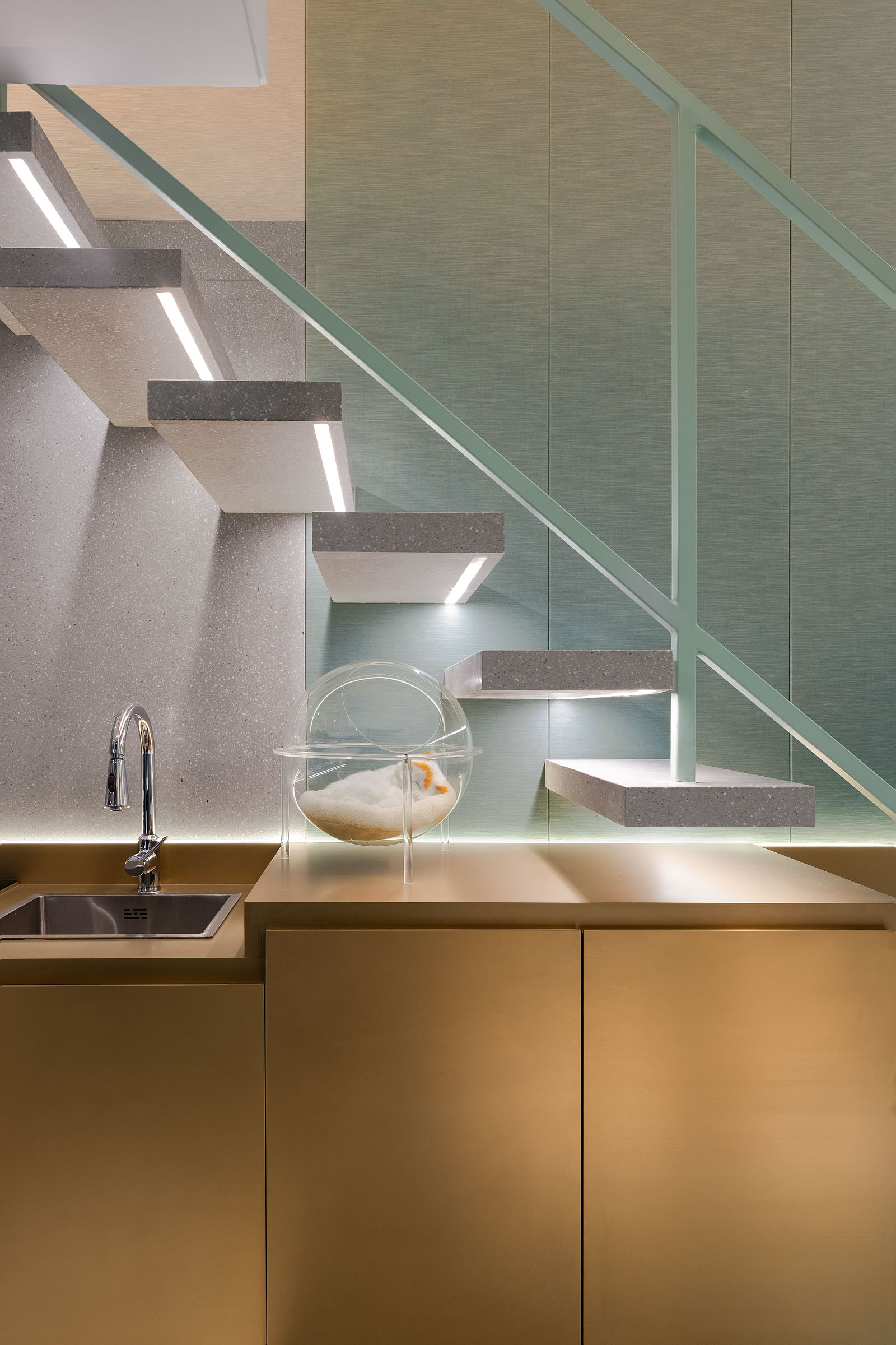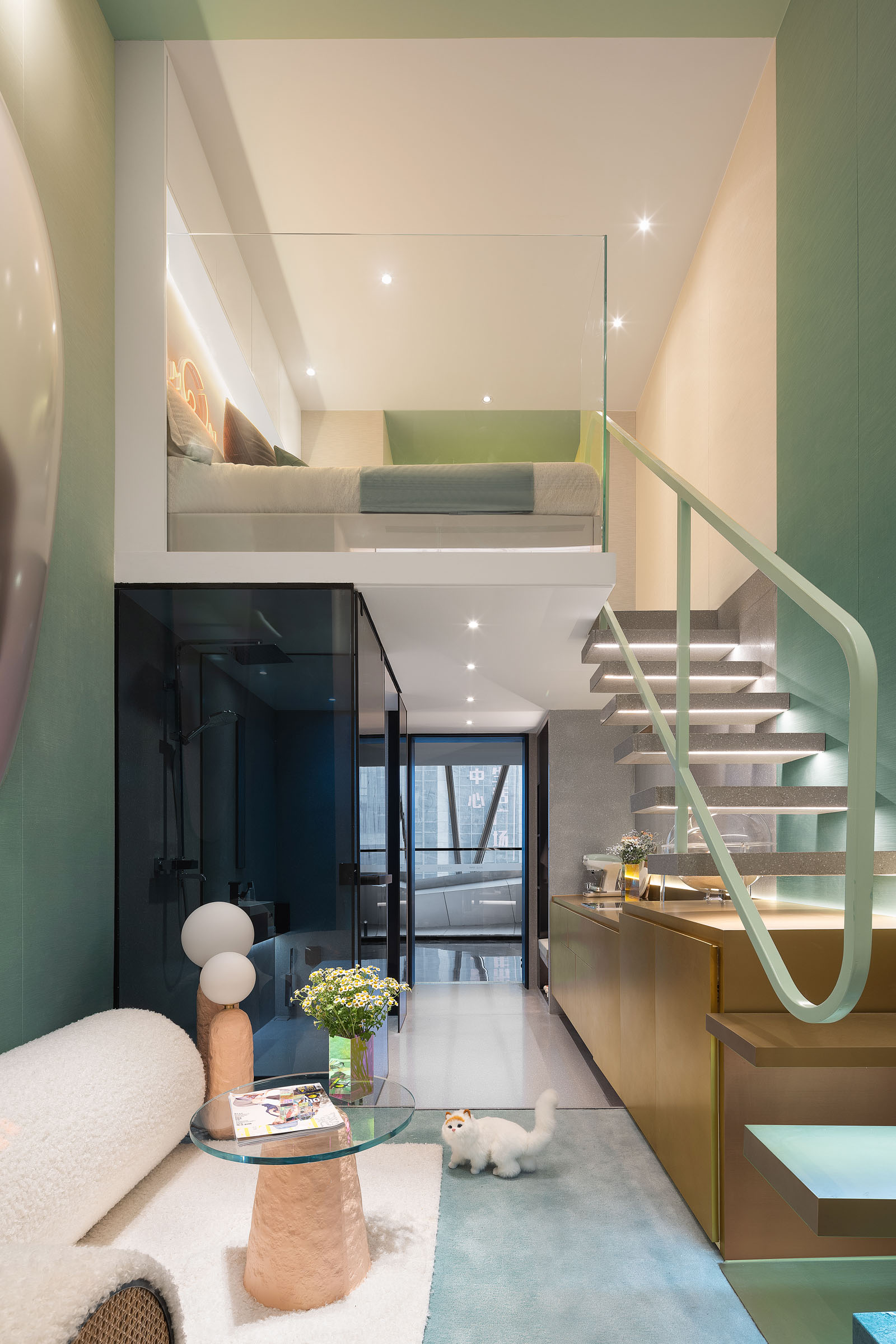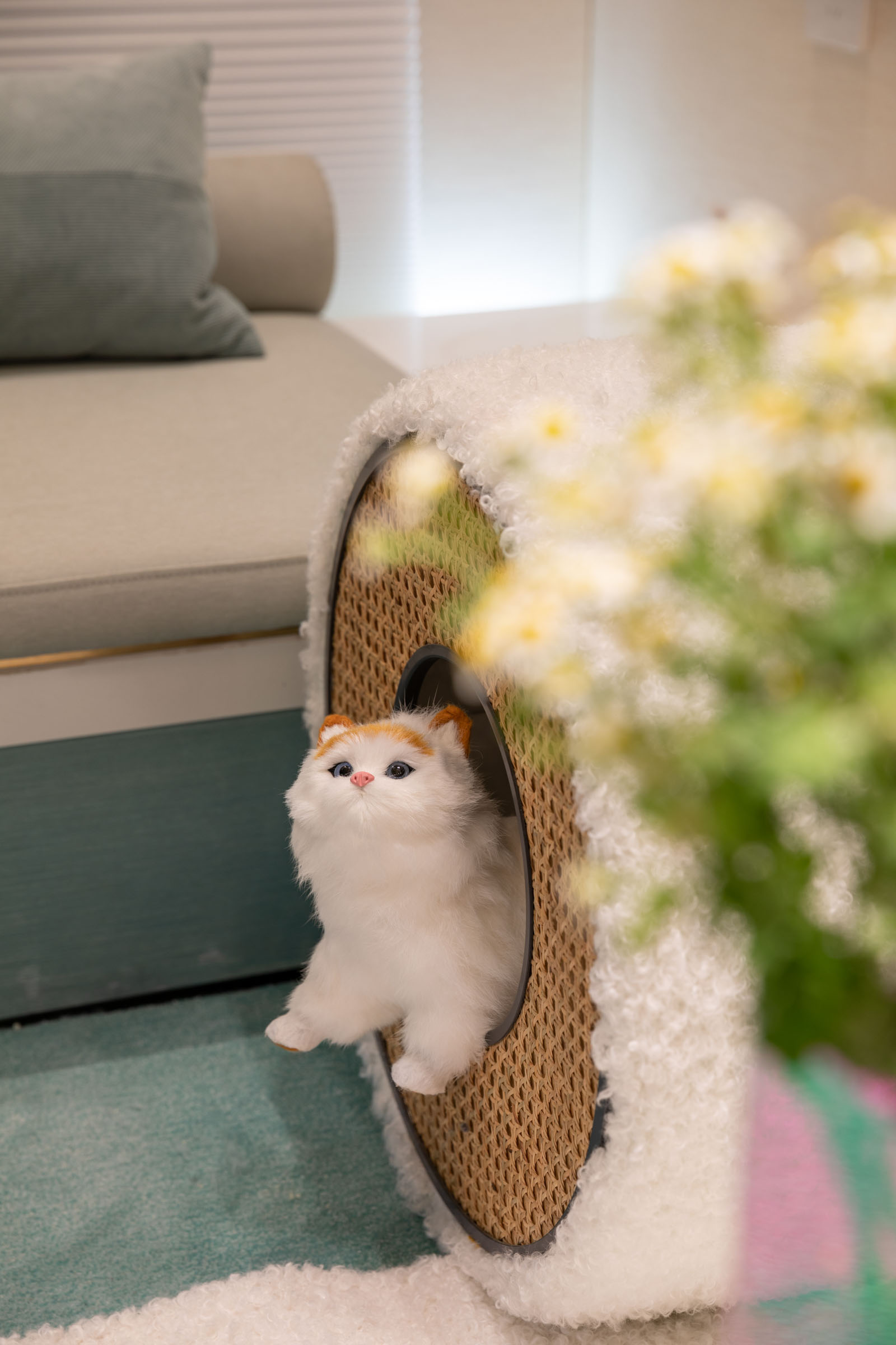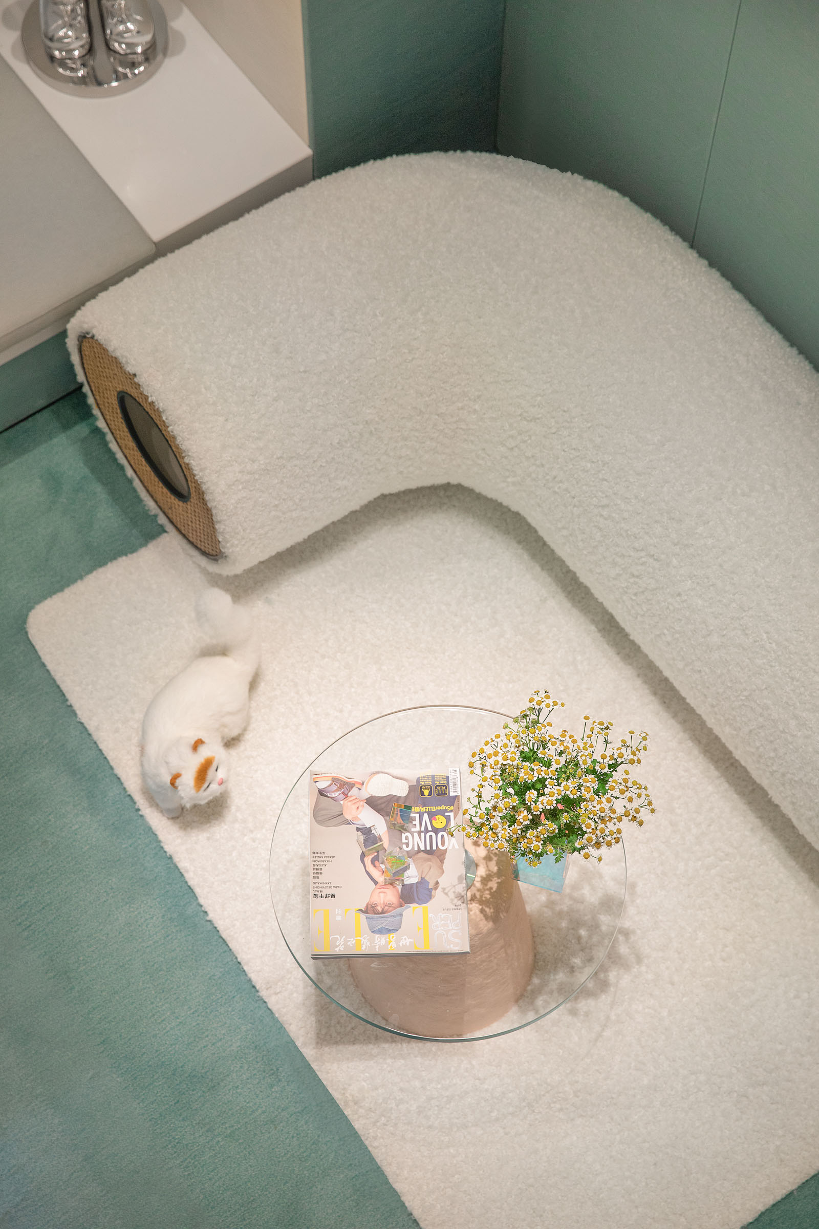 空间布局:功能兼备的猫家具的摆放位置,以“人”的生活动线空间集中在主人的视线范围内,增加人宠互动。客厅增加阅读功能,让主人在陪伴猫咪的同时可以享受安静的阅读时光。这套LOFT入口在阁楼的底层,那里有壁橱、浴室、卫生间和卧室。楼梯通向上层,与卧室相连。在众多的室内设计风格之中,线条走向还有颜色运用大概是极其容易让人忽略的存在,但其实它们却是空间风格的灵魂所源。
