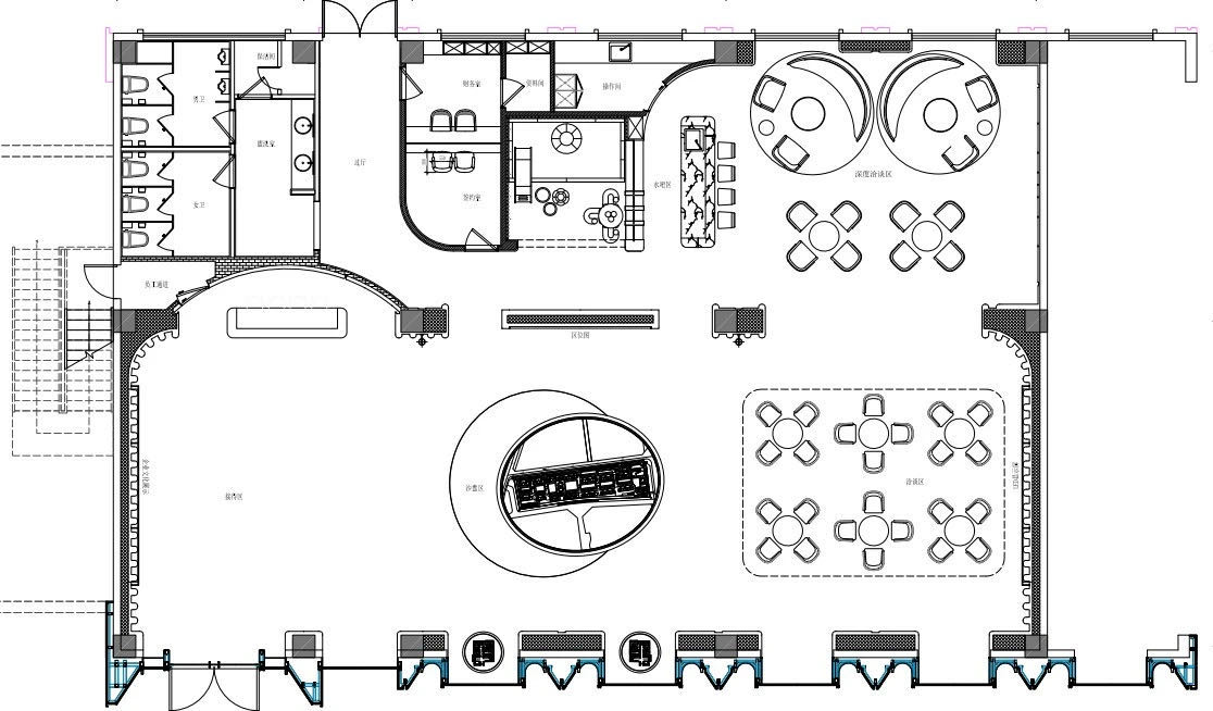 空间布局:“ 生命之光”---灵感来源于早晨的晨曦。晨间初生阳光带来生命的颤动,自然万物在晨曦里透出生机和活力。生命孕育于自然,人于自然天地间繁衍,文明也因自然万物而发祥。提取剪纸的可塑性以及绒花的柔美,在装置、装饰花艺中体现,为整个空间增加艺术感。整个空间是以自然为灵感提取的元素为线索贯穿始终。整个空间以低饱和度灰为主,搭配橘色、绿色为跳色,营造出轻松、活力的空间氛围。结合空间多元化属性,辅之以弧形或几何造型的家具,通过木、金属、皮革等不同材质,来引导人们动线和视觉点的游转,赋予空间趣味性。