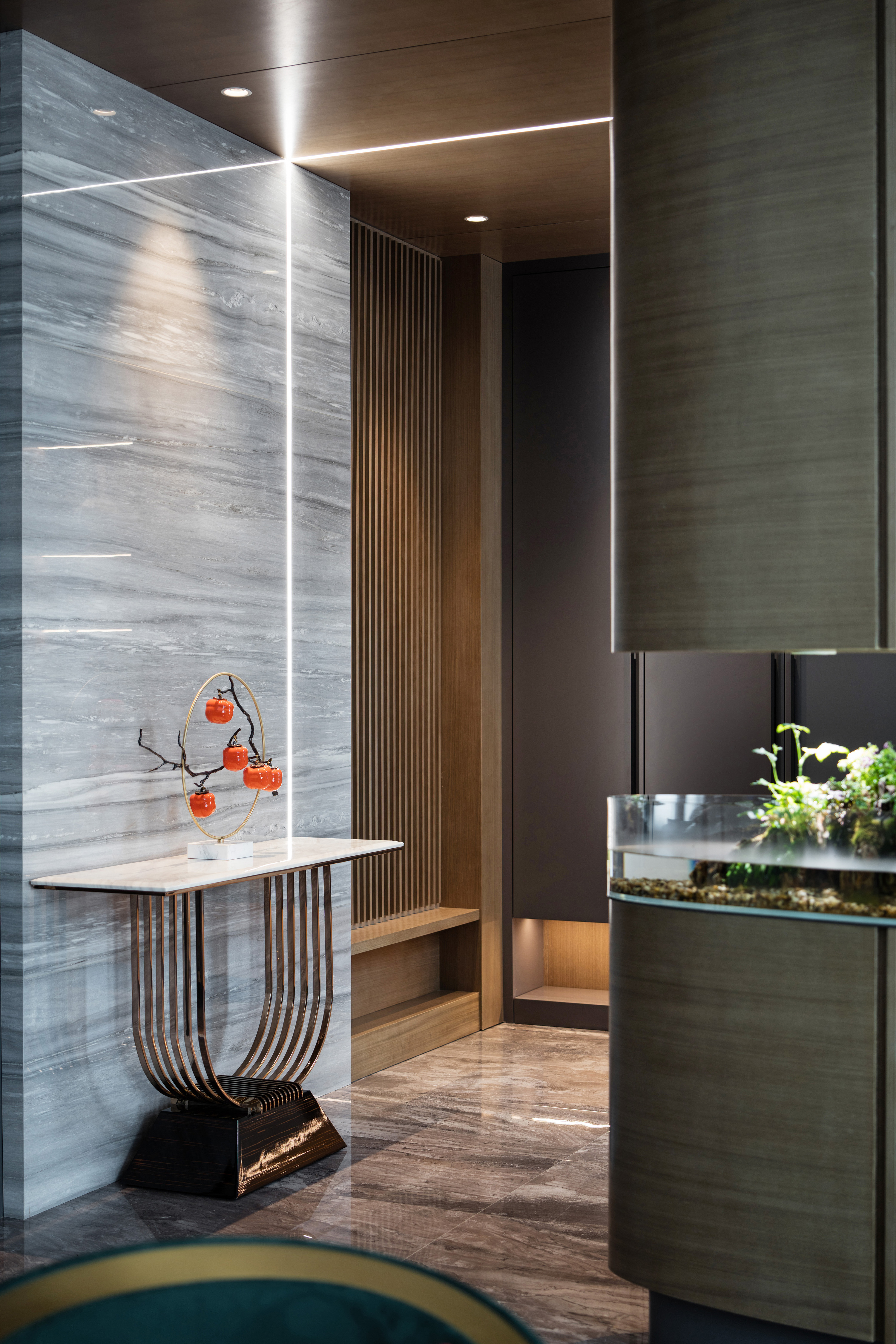 项目定位:空间令人感受到一种丰富的简约,有着豪奢的风骨,在传统与现代之间,折射出一种雅致。