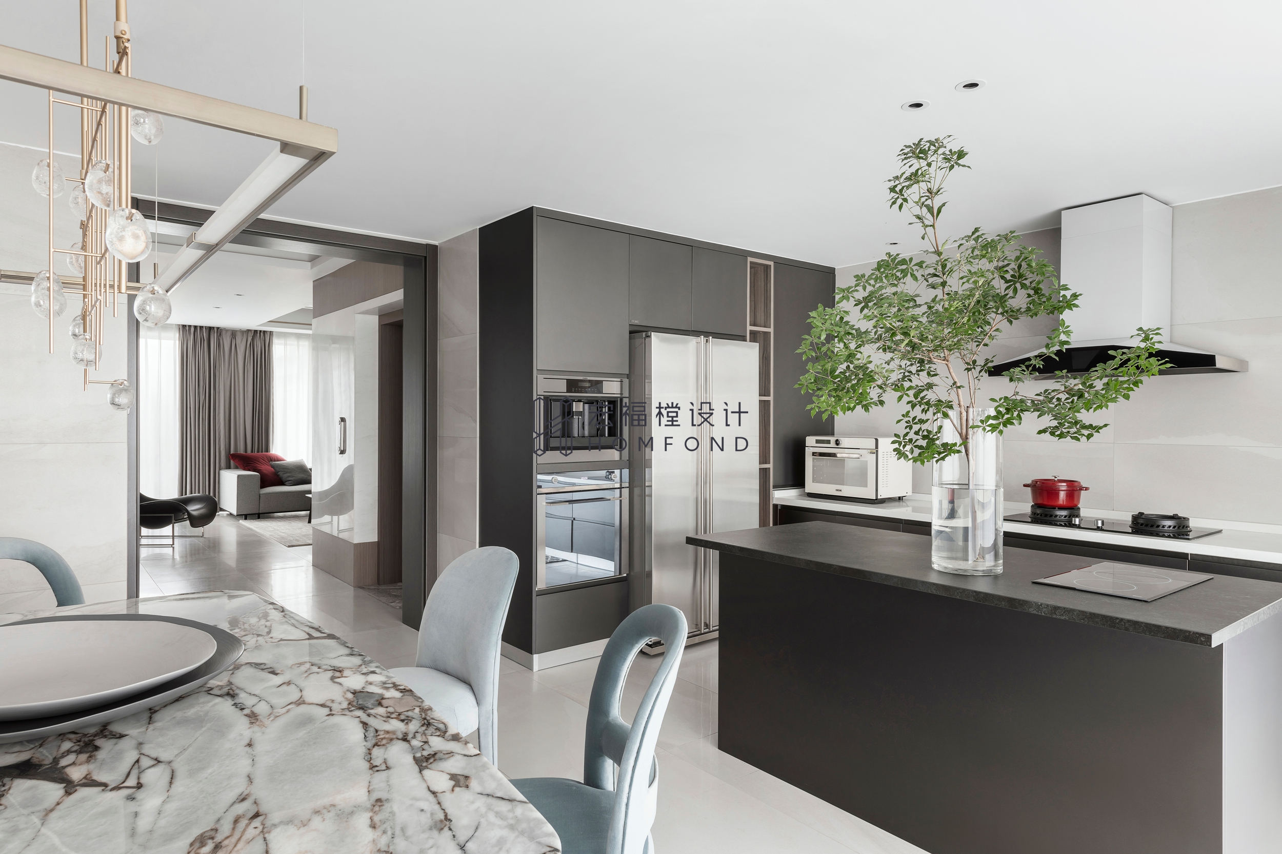 空间意境:平面布局进行重新解构充足,保留了原客厅私人客厅+书房,原餐厅改为主会客厅,原卫生间次卧改为厨房,让该案拥有两个客厅。