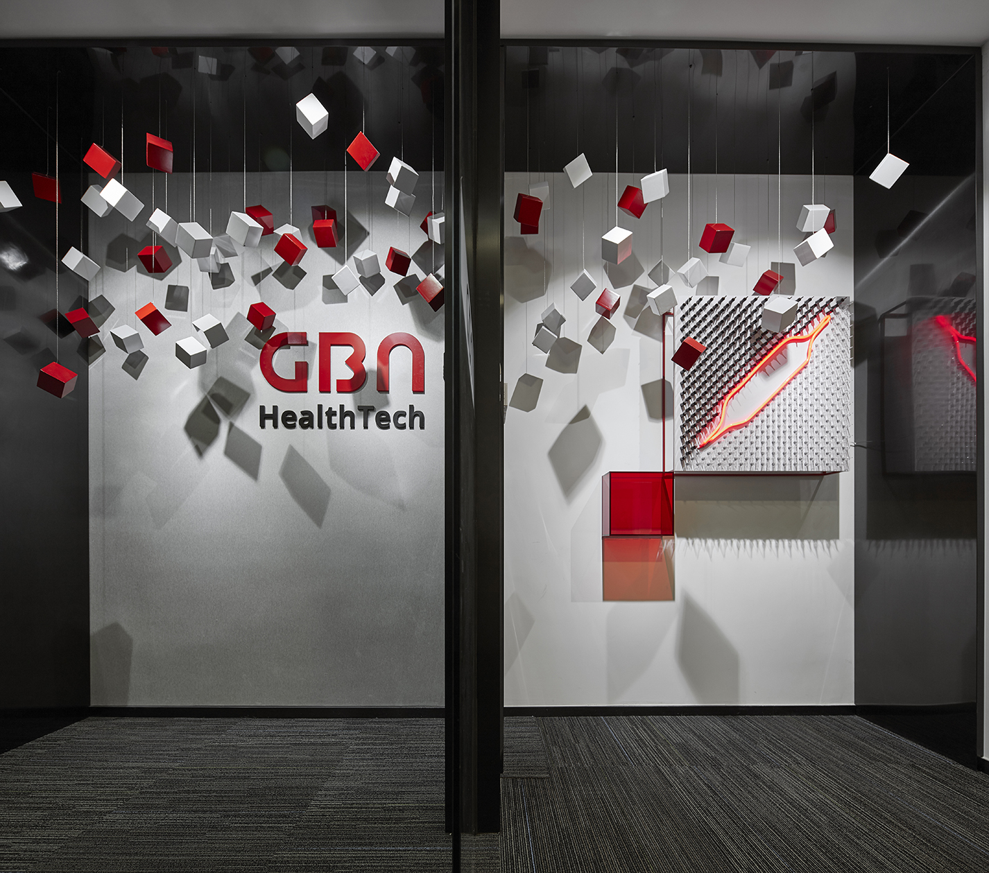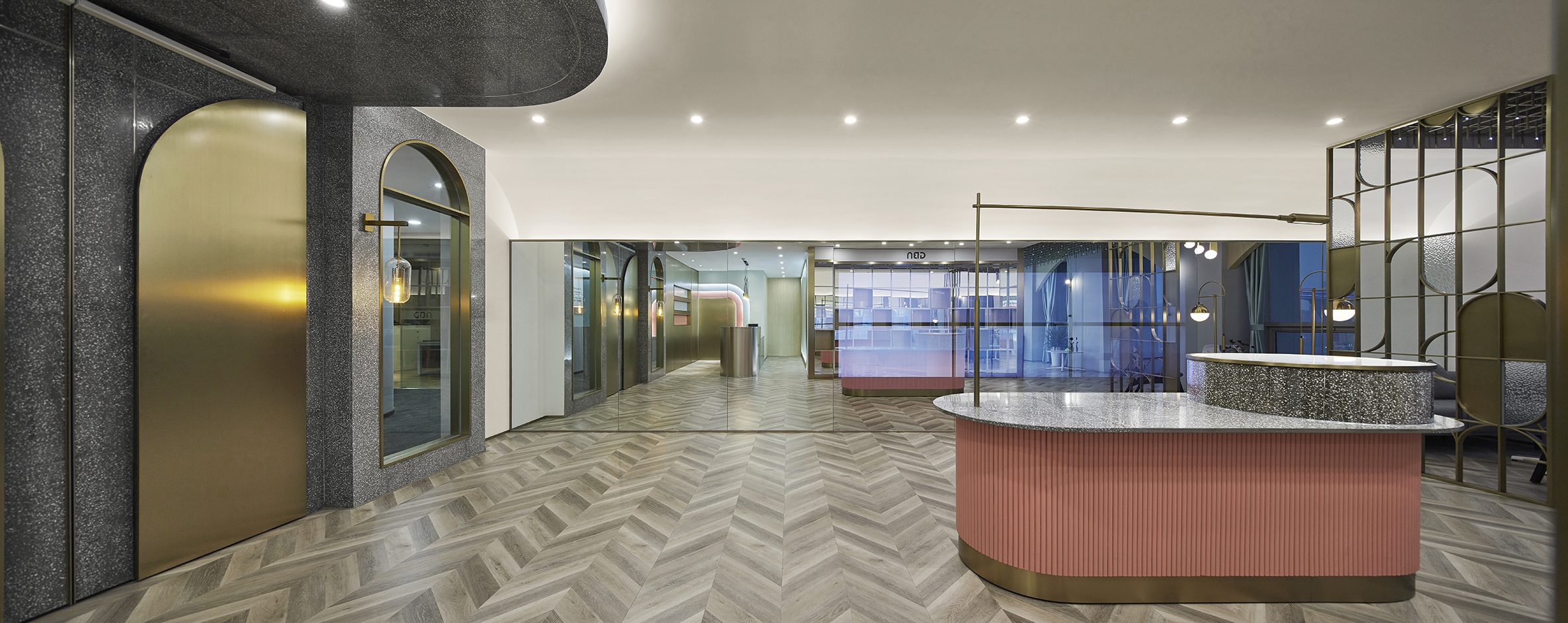 设计之初便是从企业LOGO出发,提取空间的设计元素,融入到本案中去,使整体空间既体现企业文化的符号又充满趣味性。