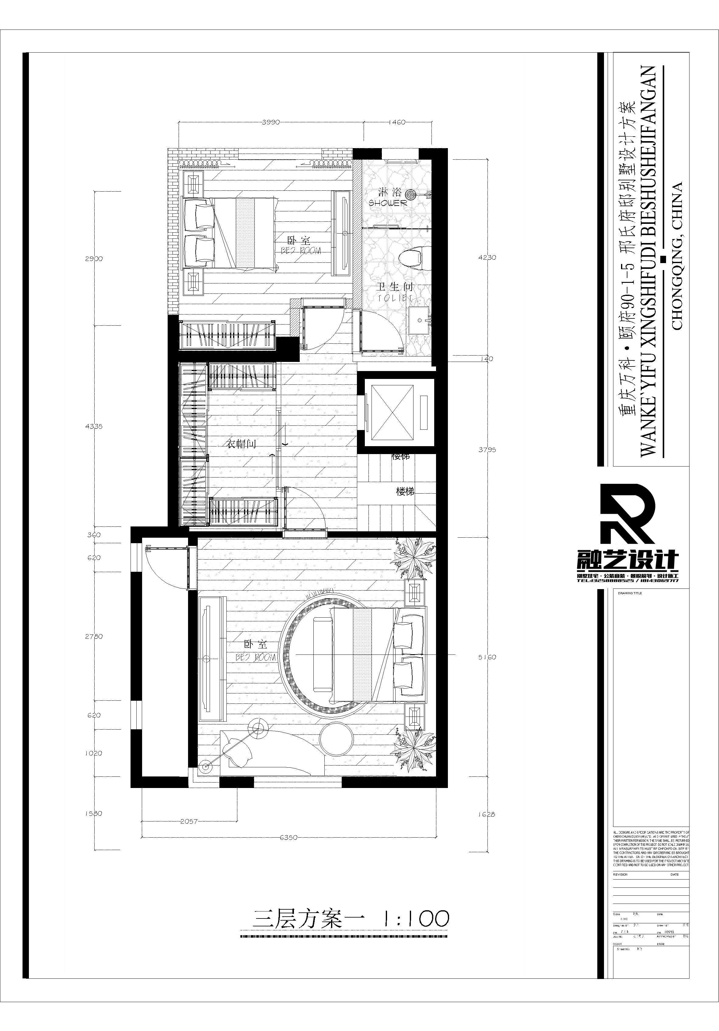 空间布局:设计上根据业主的工作属性及在国外的生活规律分析,将原有户型非承重墙部分全部打通重新规划,一层空间规划为起居及会客空间,开放式书房位于户型中心,打破传统客厅过于居家的生活状态;将二层空间规划为主卧室空间,衣帽间开放于本层空间中心,以满足业主对居住空间的要求并保证室内通风及存储便捷,避免山城潮湿的空气不能贯通。三层设计为孩子房间及客房(老人居所很近无常住需求)。