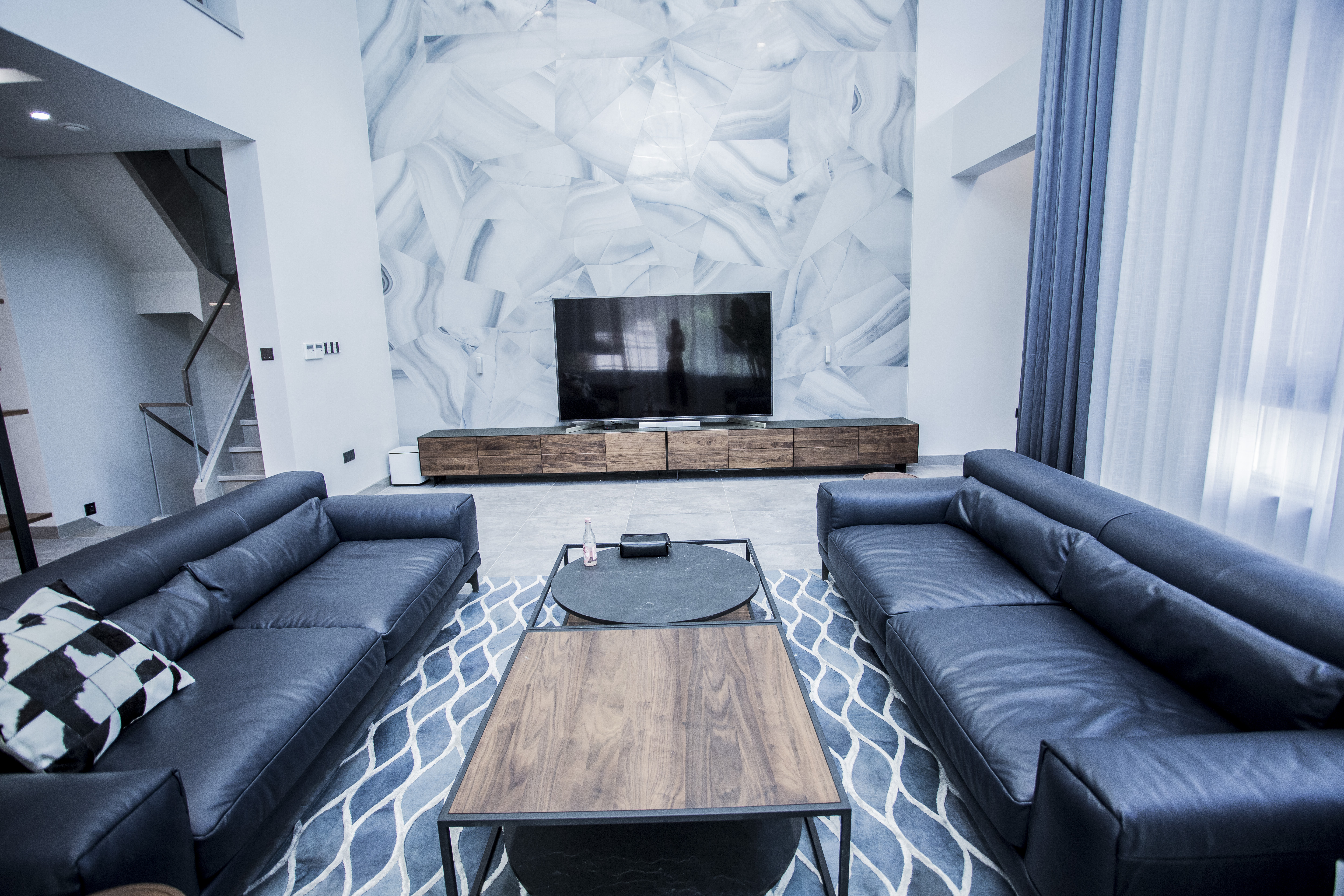 设计选材:进口天然大理石,道格拉斯瓷砖、REX瓷砖、进口艺术漆、Natuzzi家具等。
