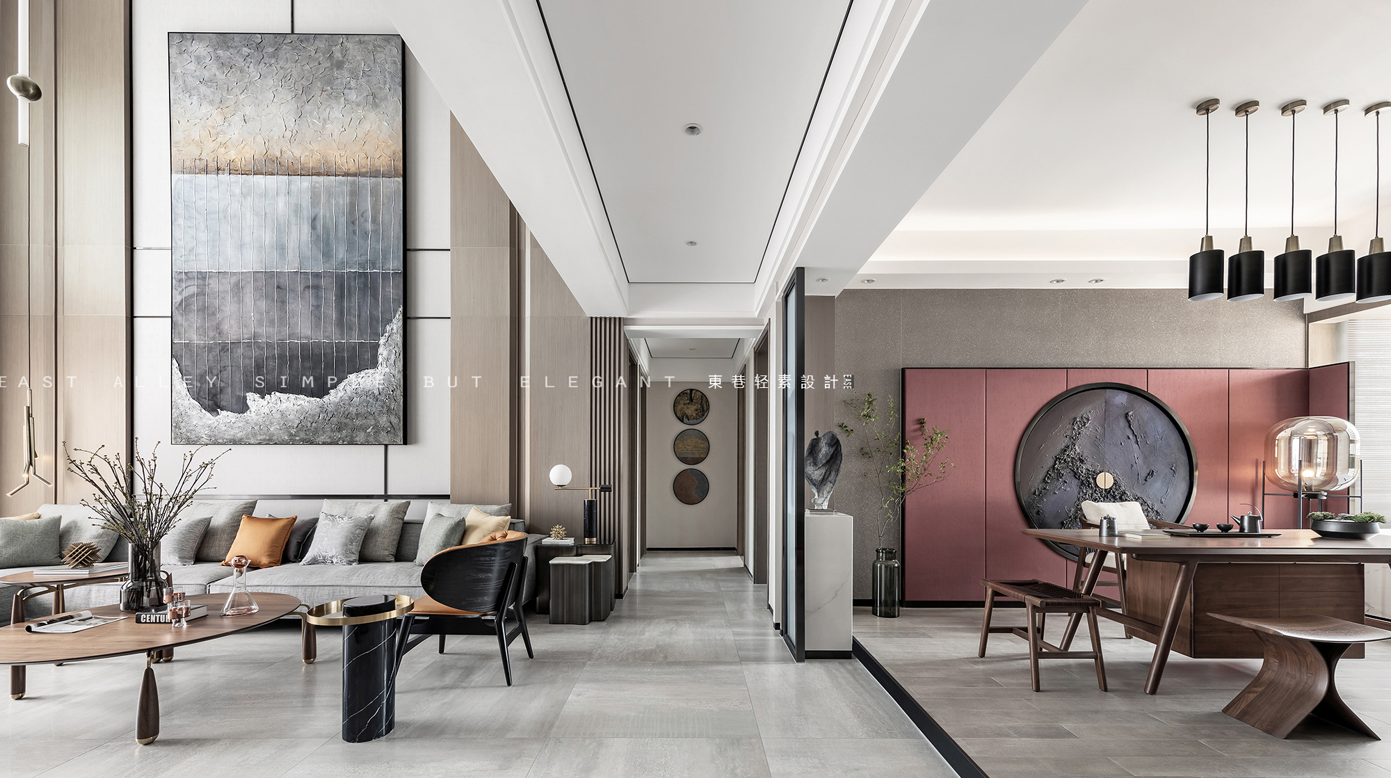 本项目位于灵山盛天名城,复式楼层错落有致,精致、淡雅的灵魂居所。在一江两岸旁,繁华的都市丛林里氛围以及对品质生活的追求。提炼东方元素“取其神而忘其形”,从而打造出更适合现代人的中式风格。它们在彰显浓浓的古典韵味之余,又摒弃了繁复而多余的设计,加入一丝精致的轻奢元素进行调和,身处其中尽享优雅。置身其中仿佛远离了都市尘嚣,宁静悠闲。