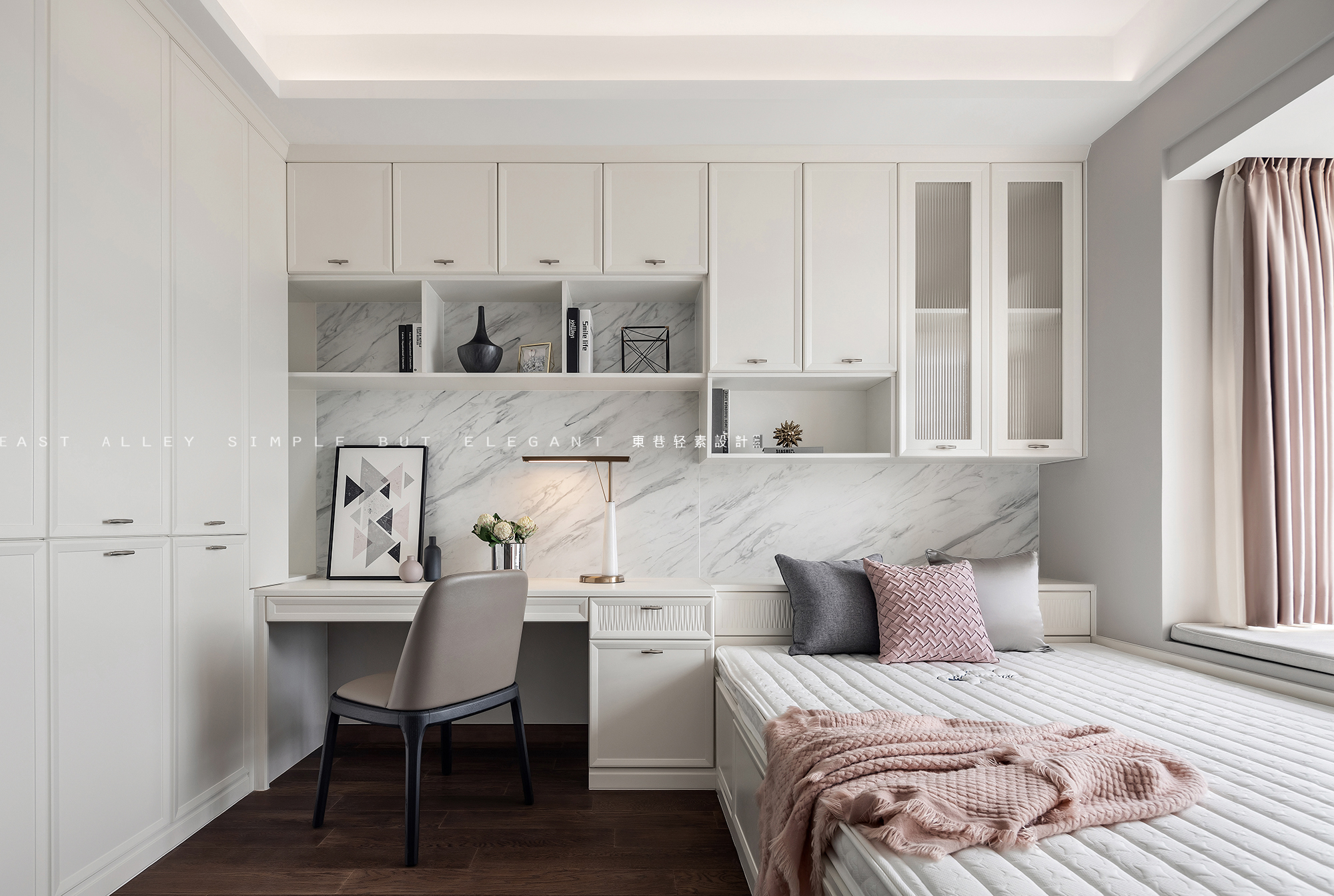 女孩房追求粉嫩、欢快、活泼的氛围,清新的粉色和鸽子灰打造出一个温柔恬静的空间。小巧别致的台灯和摆饰在房间内错落地摆放着,带着唯美的梦幻和浪漫,守护着女孩儿最初的童真。各自成趣,给孩童打造一方小天地。