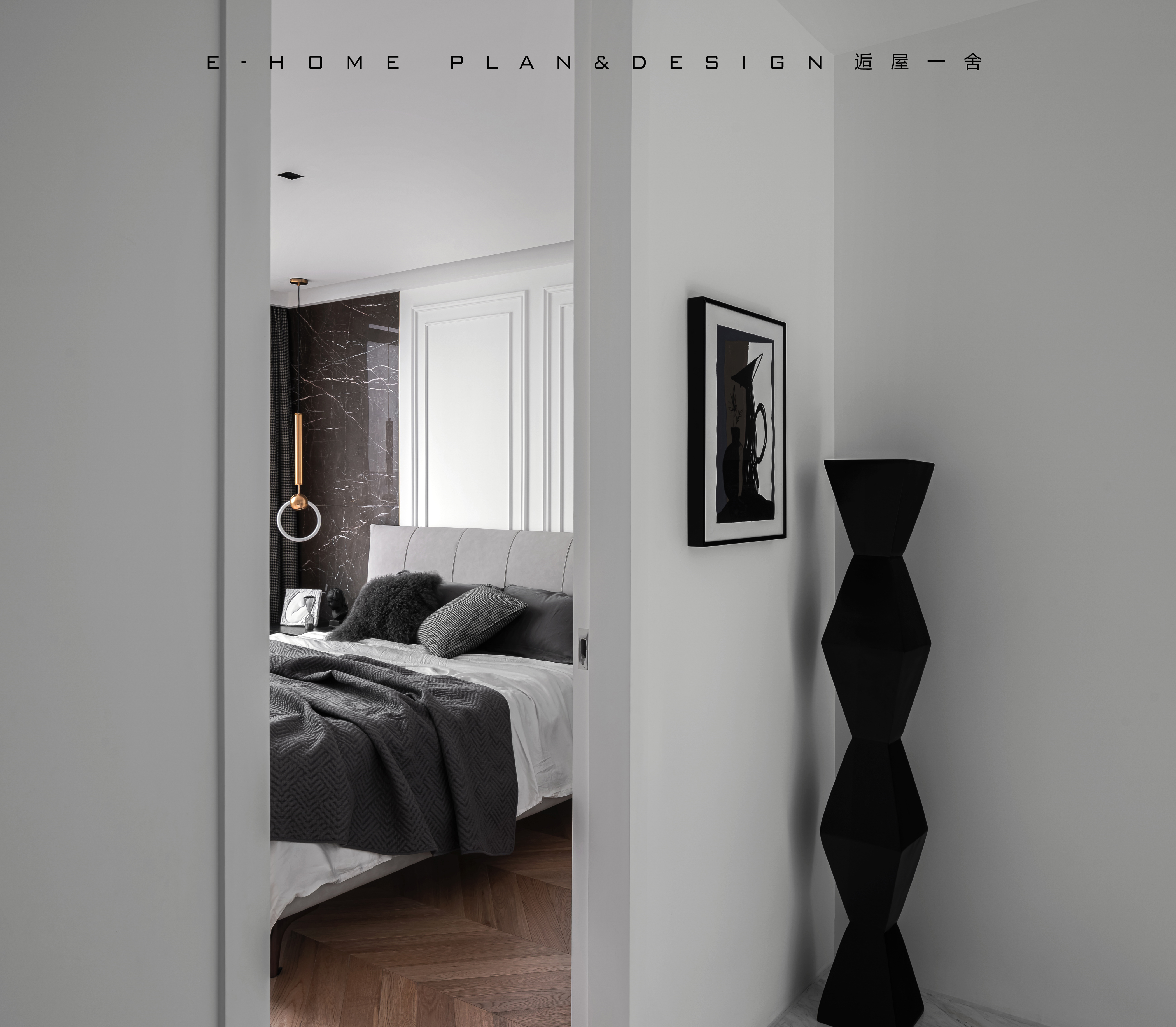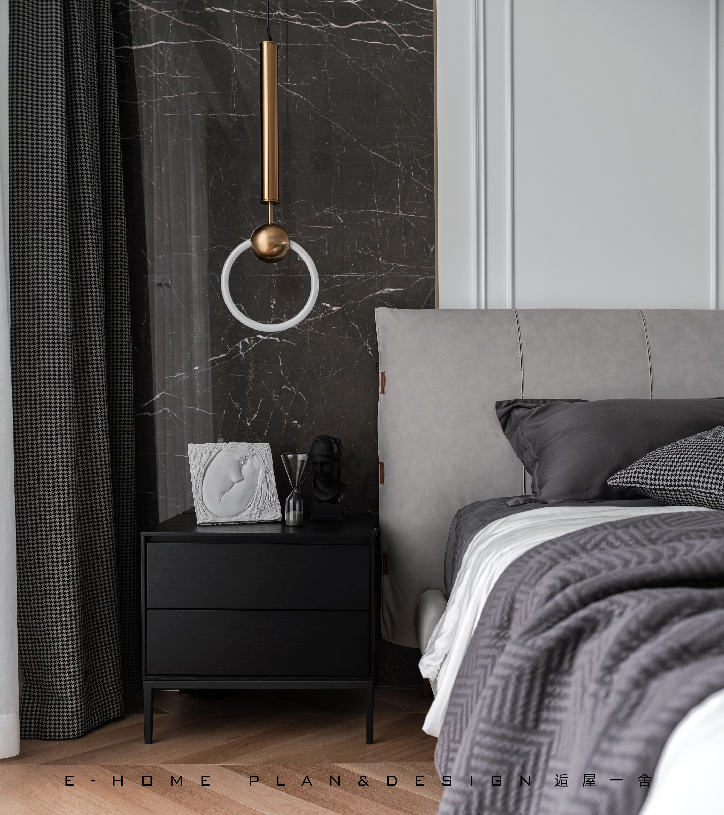 走廊的大白墙上,竖着极简风格的壁灯,现代潮流把目光引向卧室。