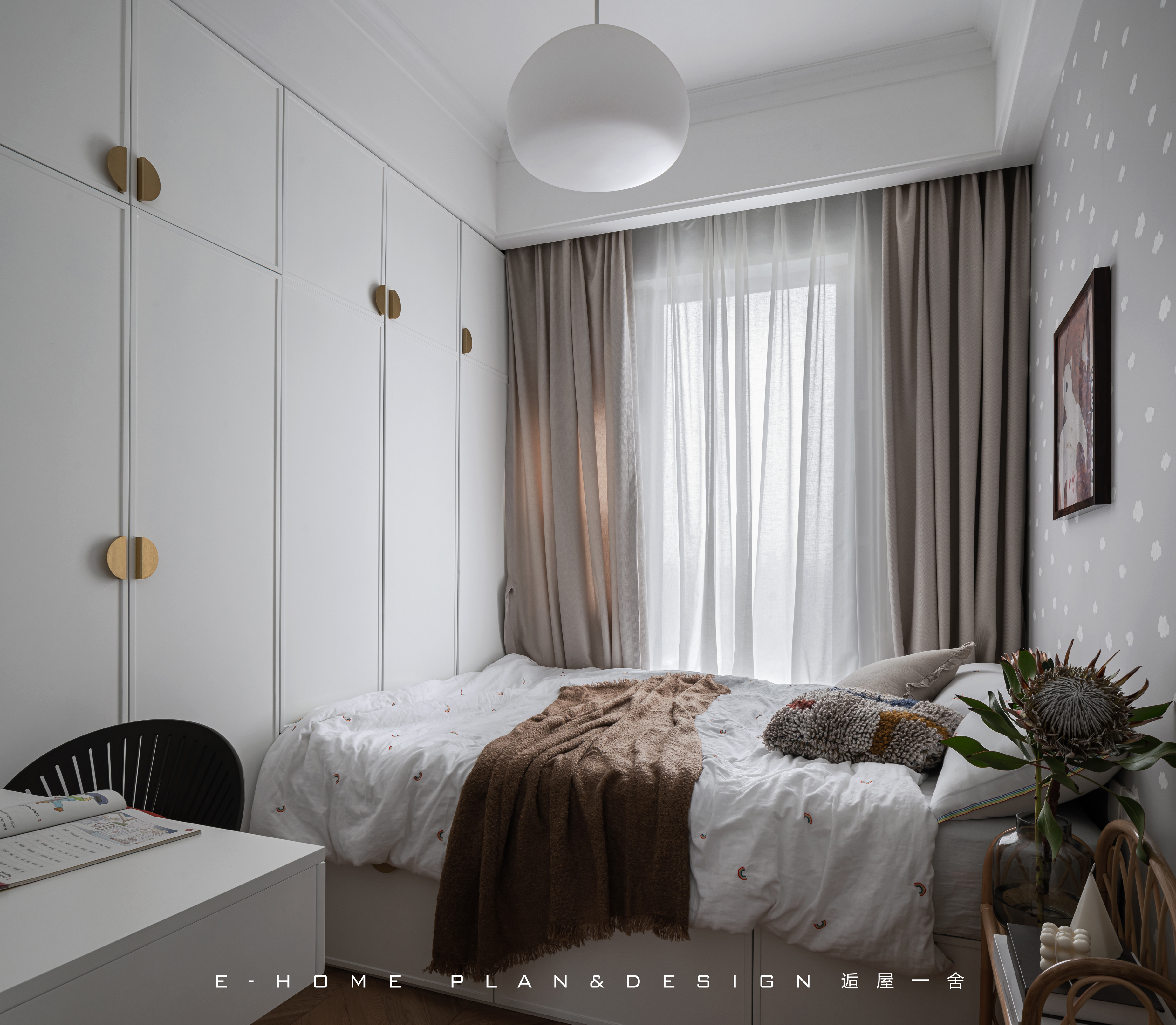 床尾的一排储物柜,满足小姑娘长大成人的衣物收纳。