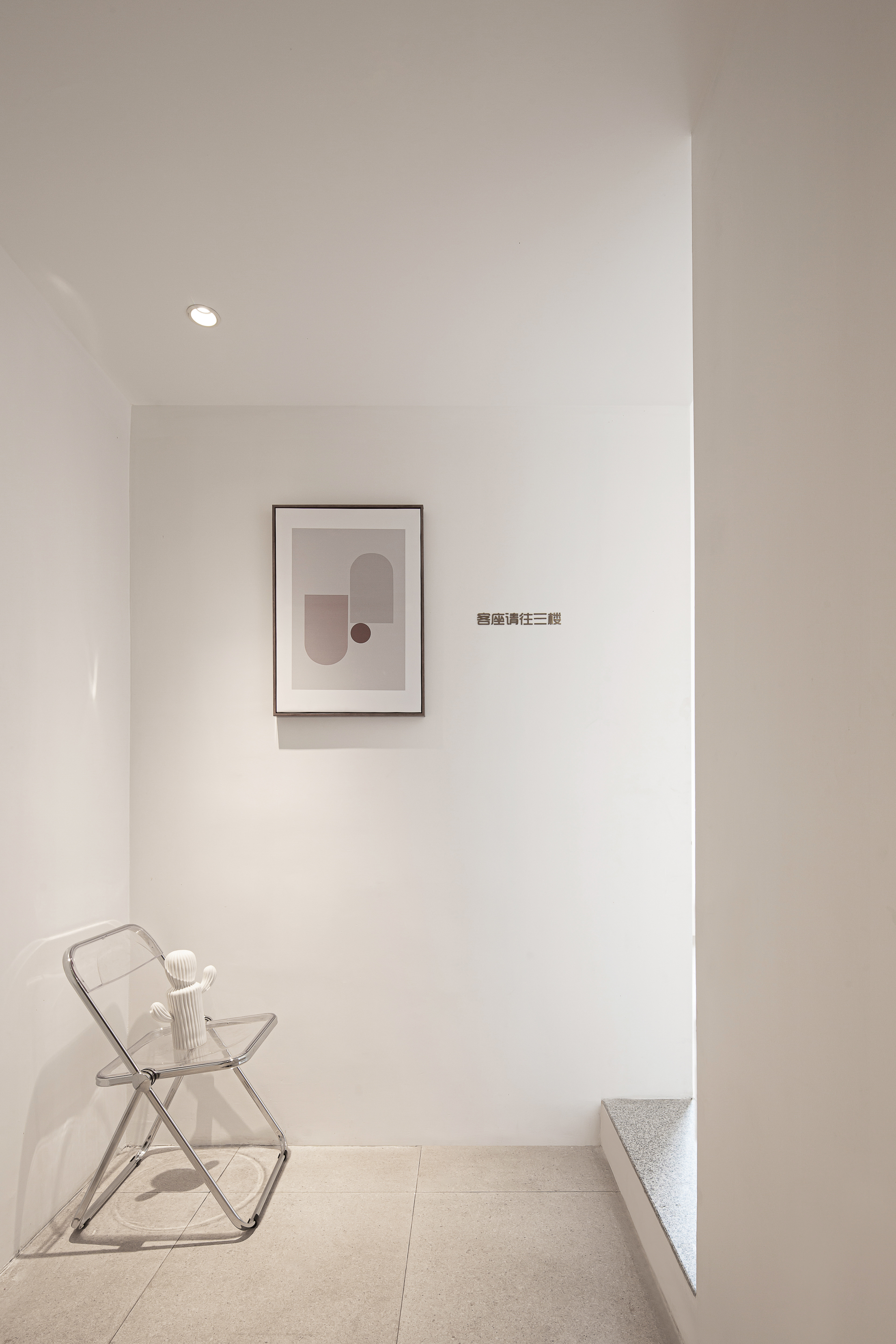 蛋糕屋的外立面改造成蛋糕盒的形式,将室内的楼梯核心筒塑造成铺满白色奶油的蛋糕胚,空间里的人和物件,象征着蛋糕的果粒,人和空间交融在一起,赋予空间新的表情。