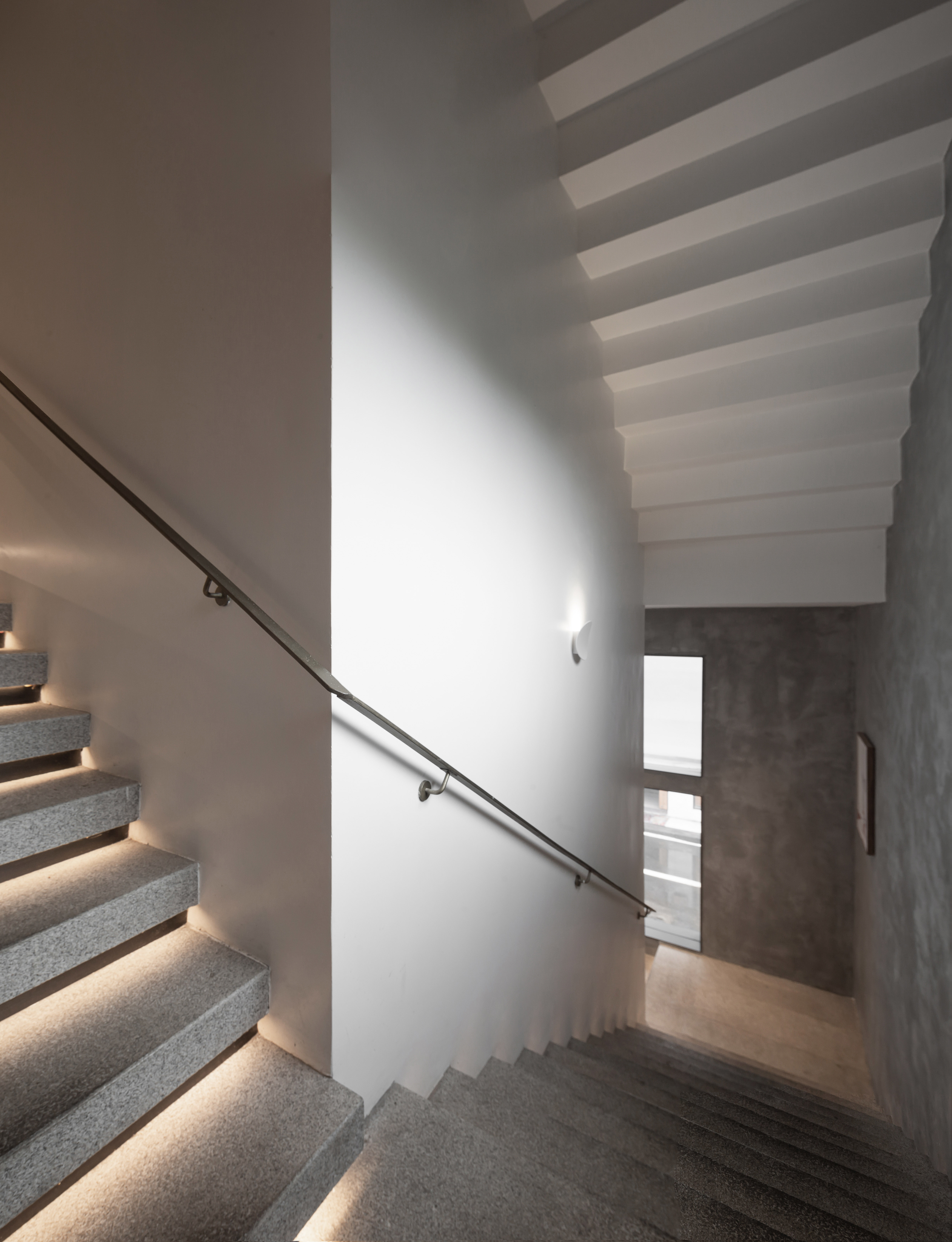 我们认为建筑无论外空间或内空间都有它的情感。空间的使用者理解感受空间历经岁月而积淀的情感,重新赋予空间新的表情。开始设计的时候,我们发现楼梯核心筒不能拆,承重墙和外立面墙体形成一种像蛋糕盒子的体量感。