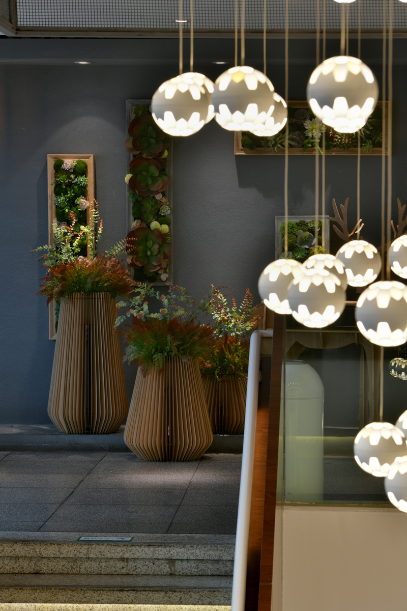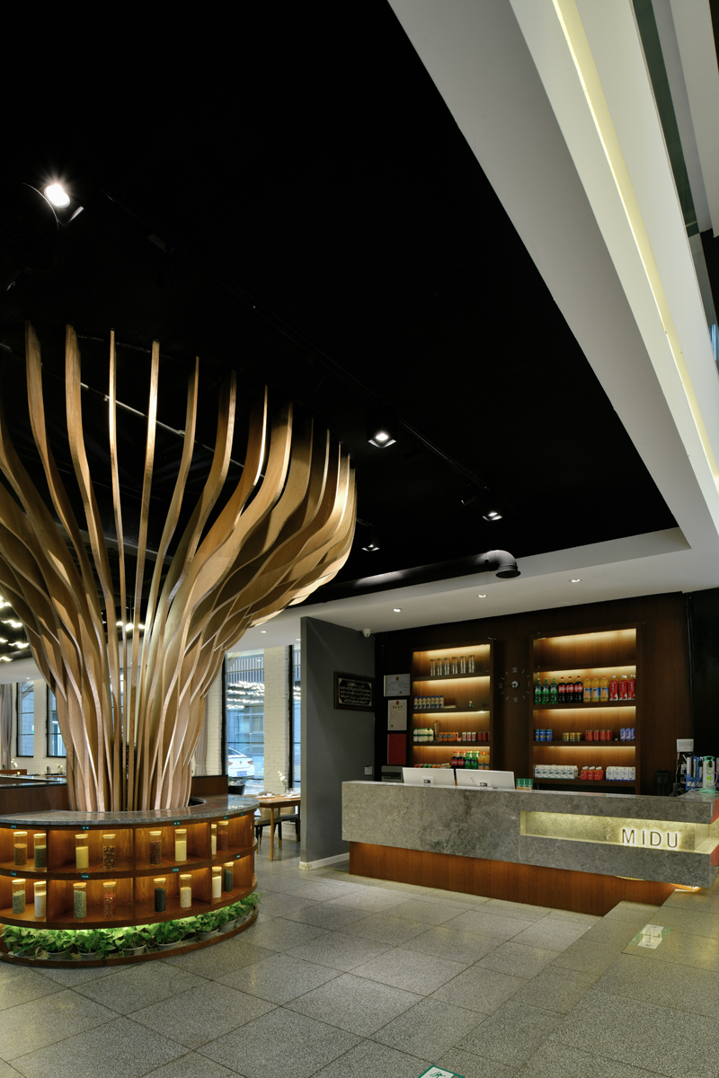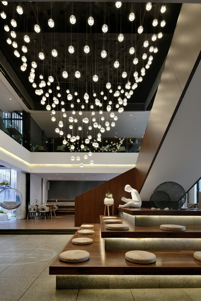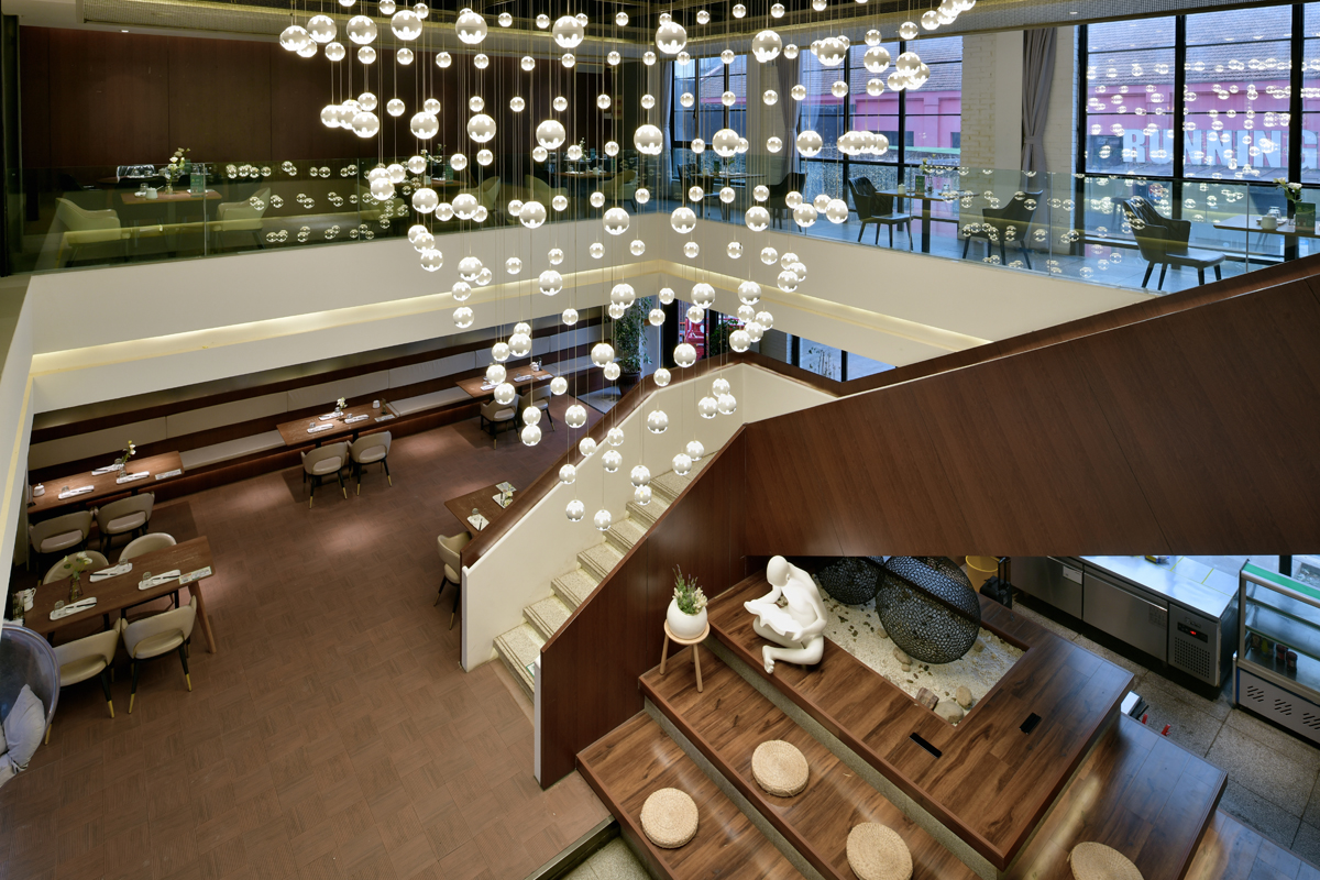 对原有空间上的不足加以修改,挑空的大堂空间使一楼与二楼有了很好的交互,楼梯采用大块面的形式表现,让楼梯在空间中更加出彩。