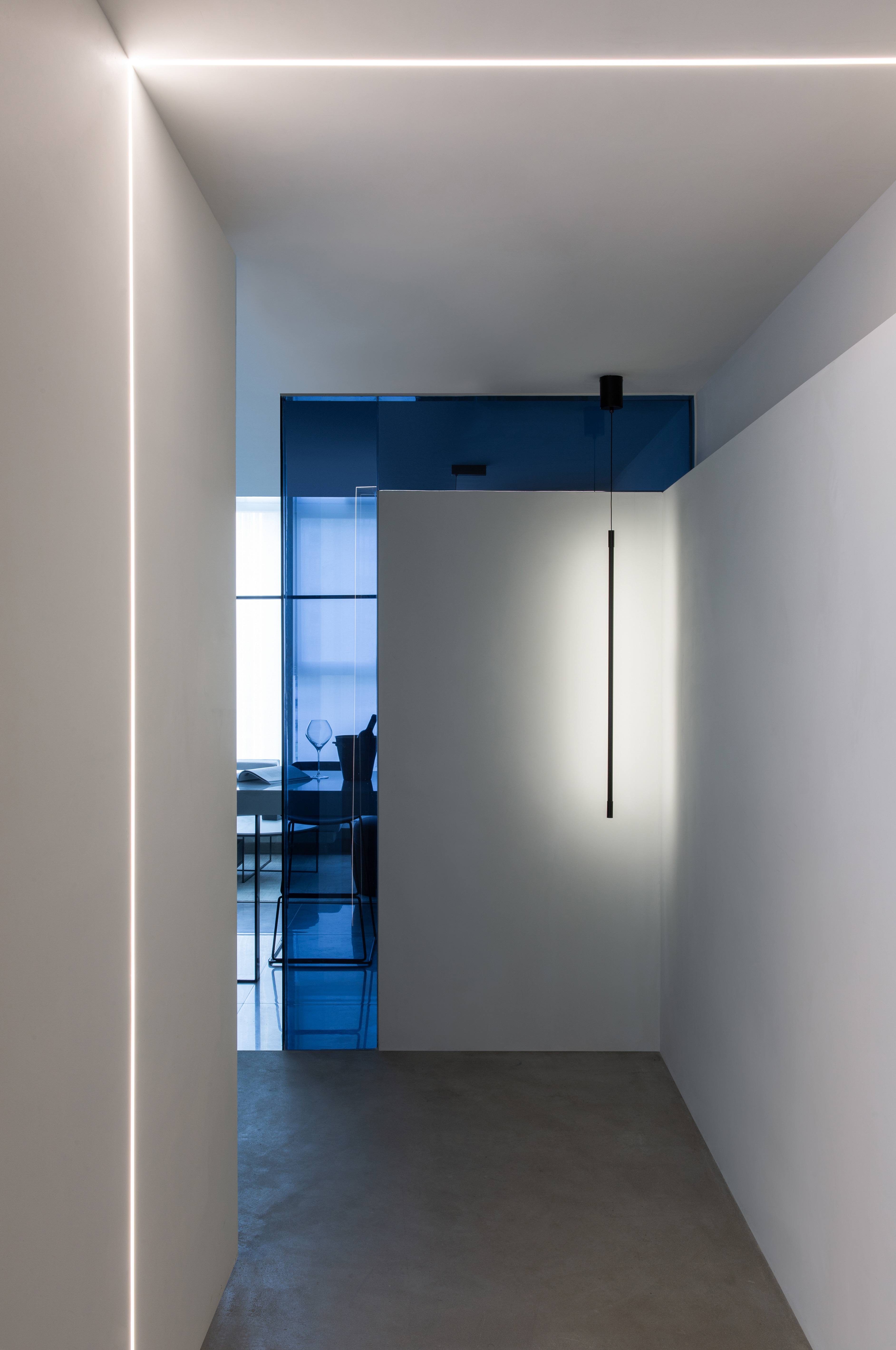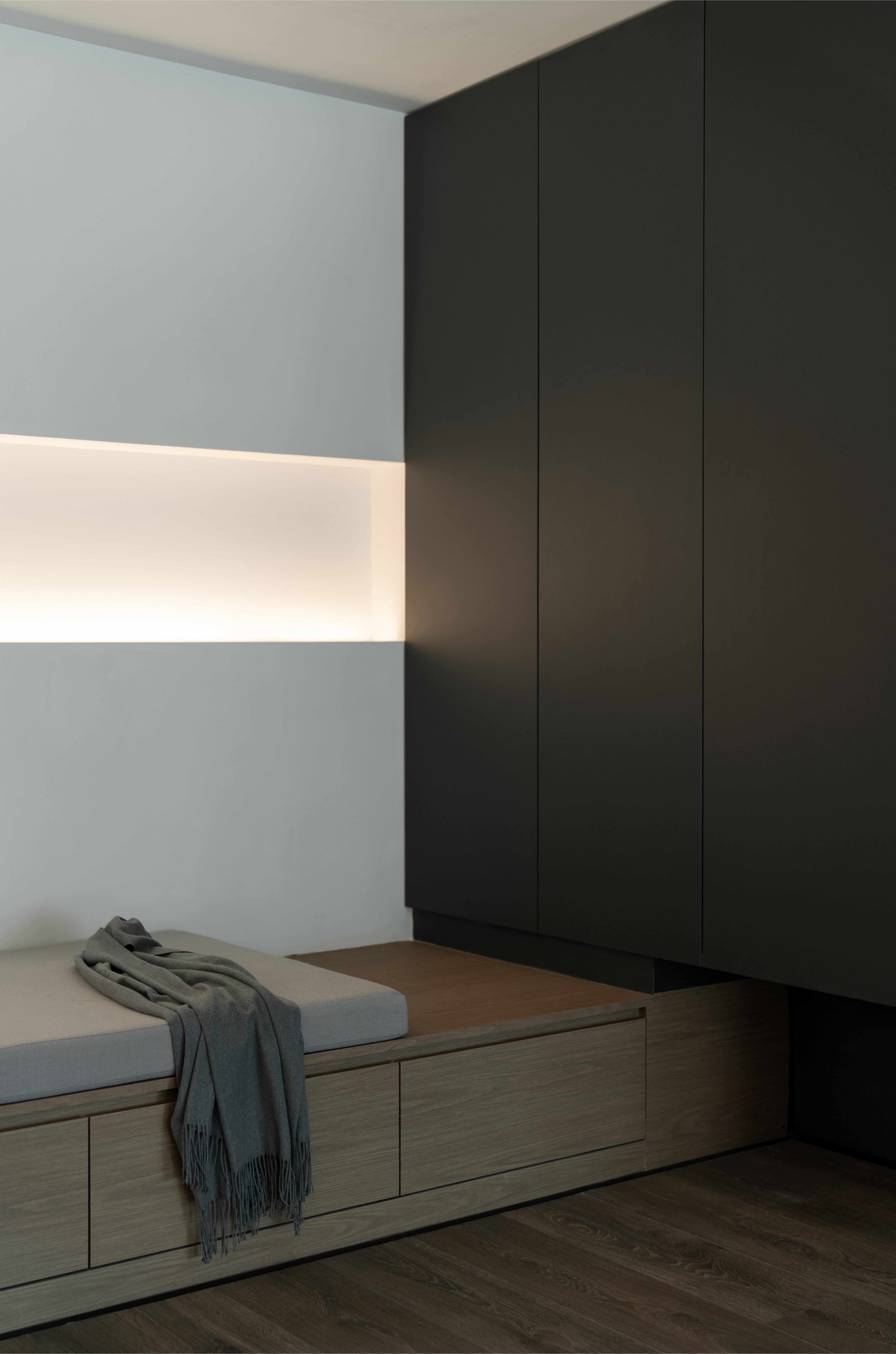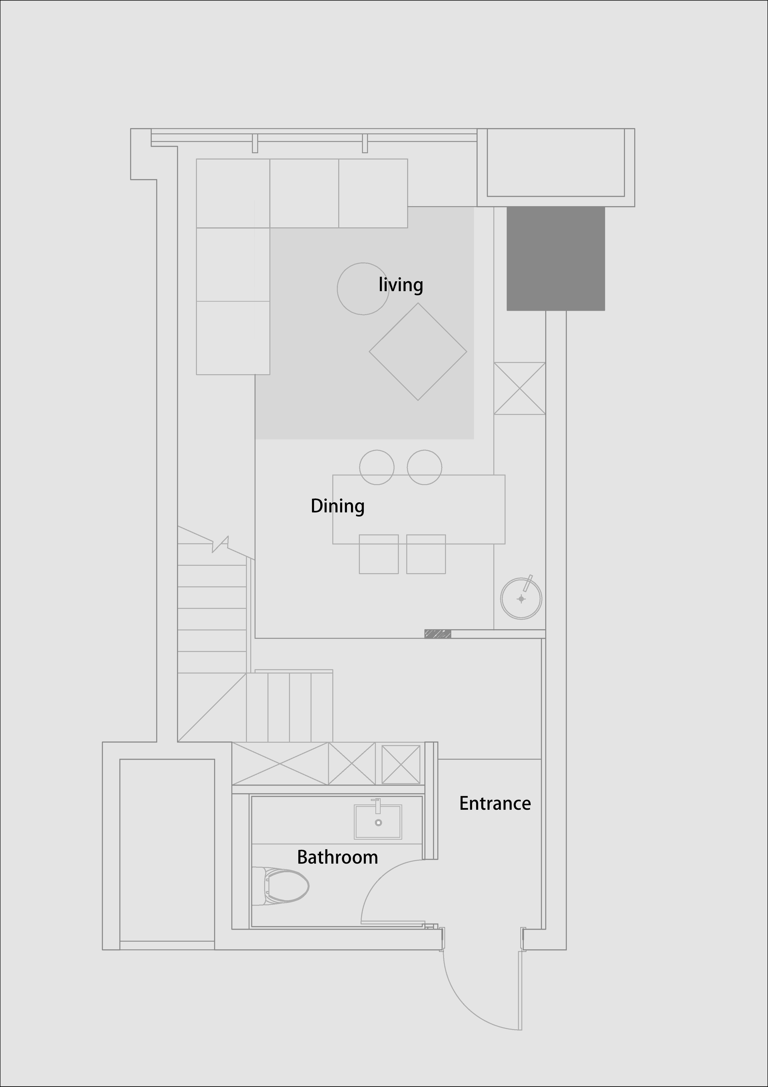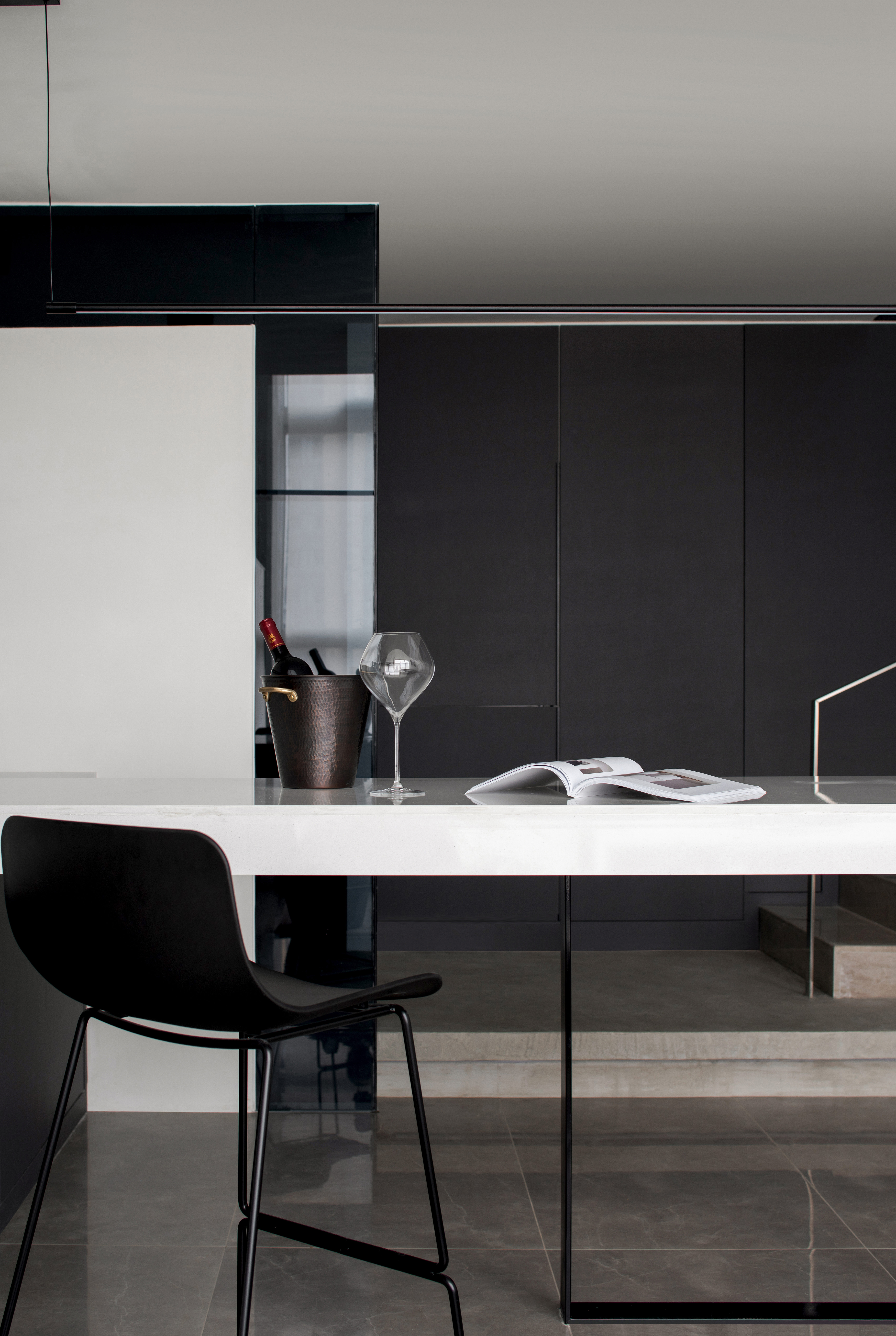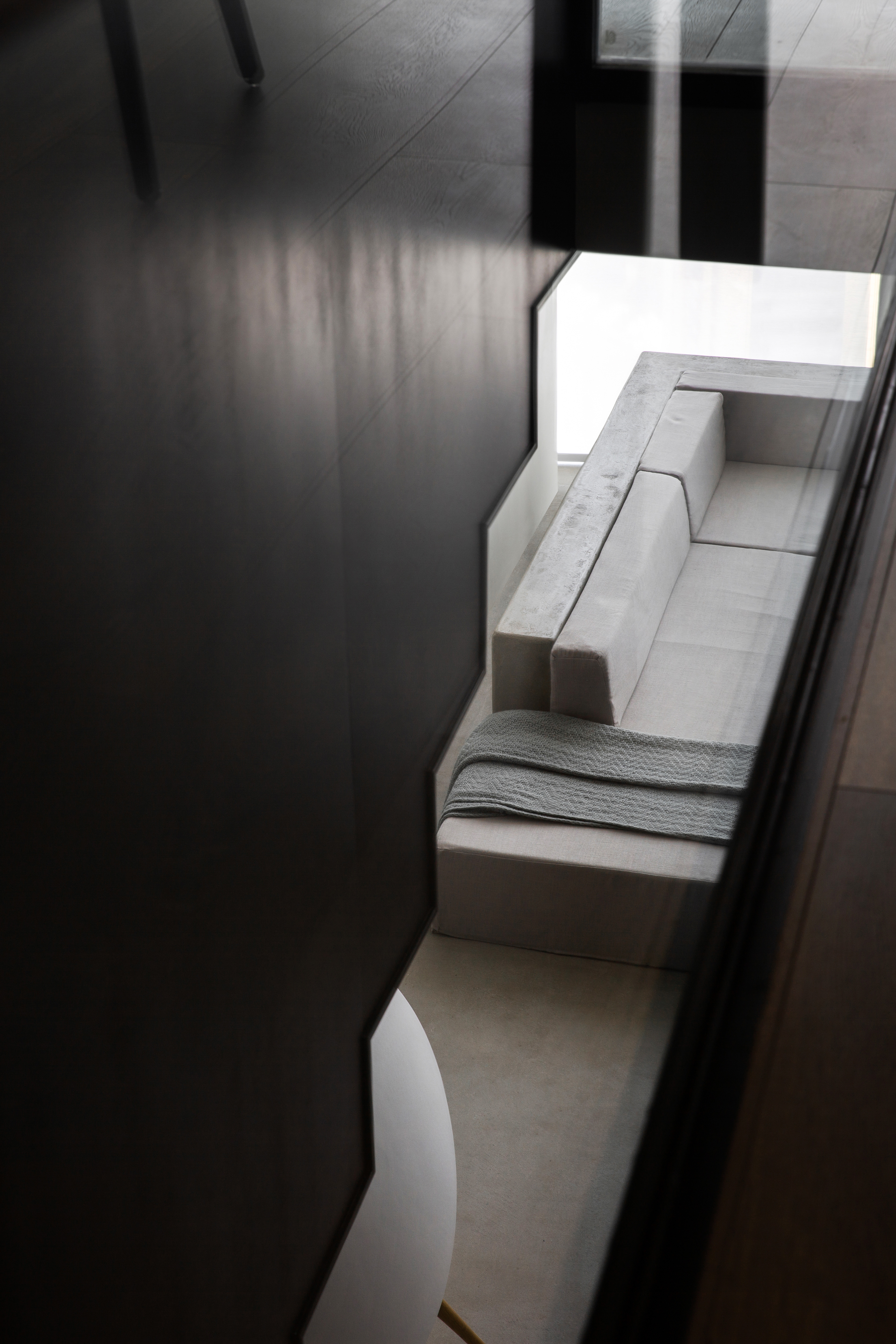 黑色的钢板、深灰色的玻璃、质朴的楼梯,把清冷的刚性、温暖的质朴两种不同的材质结合,碰撞出别样的美感、微妙的氛围……